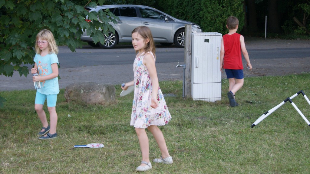 Der Nachtorientierungsmarsch stand um 21:30 Uhr auf dem Programm. 6 Gruppen, je 8 Kinder, ausgerüstet mit Karten und Taschenlampen, machten sich auf den Weg in Richtung Moorstraße und Baggersee. Unterwegs mussten Fragen beantwortet werden, unter anderen Spielen, fand auch ein "Flaschenkegeln" statt. Weit nach Mitternacht hatten alle 6 Gruppen ihre Aufgaben erfüllt. Die "Nachtruhe" trat zum Teil doch eher ein, als es sich die Kinder gedacht hatten, der heisse Tag mit fast 30° machte es möglich. Am Samstagmorgen um 7:30 Uhr war Wecken, und bis 9:00 Uhr hatten alle ausgiebig gefrühstückt. Der Staffellauf für alle, dauerte bis Mittag. Mittagessen und Mittagspause war dann bis 14.00 Uhr angesagt.Das Freibad war dann das "Highlight" des Tages, einige Kinder waren "Minigolfen". Nach dem Abendesssen (Grillen) von 18:00 bis 20:00 Uhr fand die Siegerehrung des Staffellaufes und der Nachtwanderung statt.