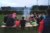 Vor Trinken und Futtern waren aber erstmal Gruppenspiele angesagt, die sich Tobias Winkelmann-Bünte ausgedacht hatte. Insgesamt wurden acht Teams gebildet, die sich mit Namen wie „Blondies“, „Ninjas“ oder „Mondlichter“ mit Begeisterung in verschiedene Aktionen stürzten wie auf dem Balkenbalancieren oder Kisten stapeln.