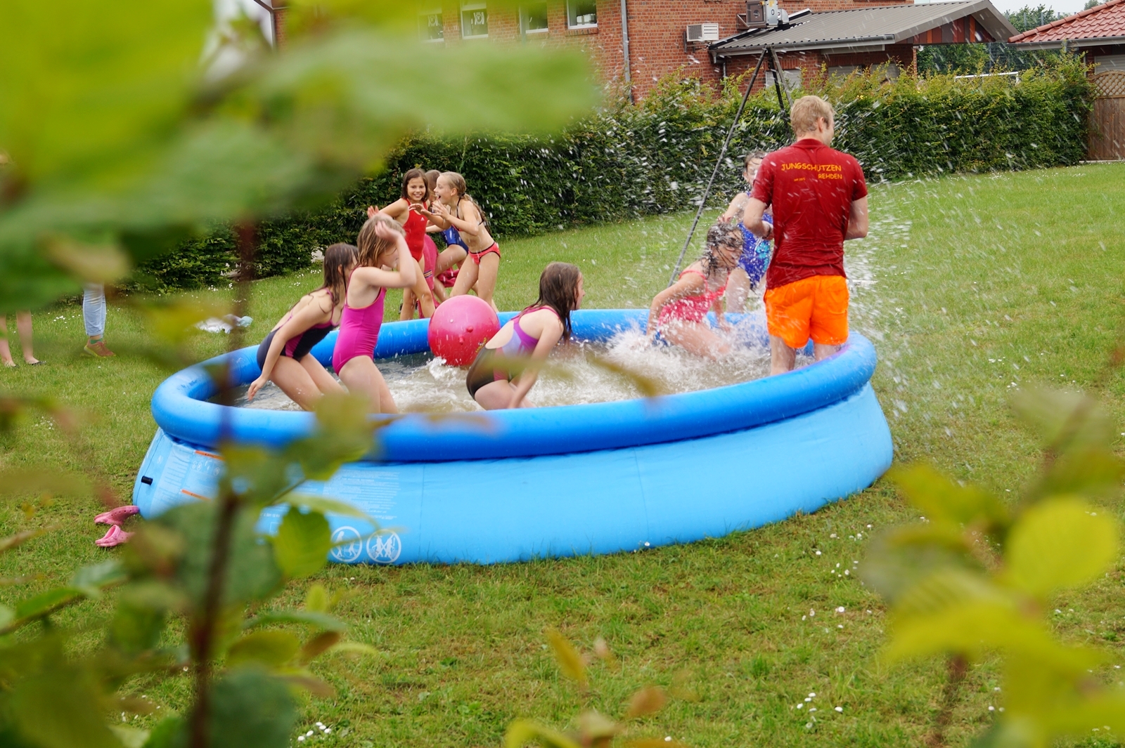 Auch der Staffellauf am nächsten Tag hatte es in sich, da im Rund des Stadions an sechs Stationen verschiedene Aufgaben bewältigt werden mussten wie Sackhüpfen oder Hindernisse. Die Siegerehrung am Abend ergab, dass „Die Großen“ in der Besetzung Ronja Finkenstädt, Johanna Grewe, Erik Wehrmann, Alexa Thrien und Lisa Reuter gewonnen hatten, aber es wurde nicht bierernst genommen, da für alle Teilnehmer Preise bereitstanden. Zwischendurch konnte aber auch eine Auszeit genommen werden, wobei das Spielmobil des Landkreises Diepholz wertvolle Dienste leistete. Hatte Petrus sich bis dahin von seiner guten Seite gezeigt, so ließ er in der Nacht auf Sonntag einen heftigen Regenschauer runtergehen, der einige Zelte unter Wasser setzte und die Bewohner veranlasste, ihre Schlafsäcke in der Sporthalle aufzuschlagen.