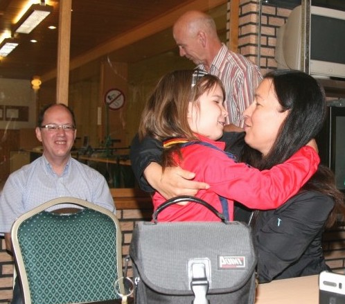 Leonie mit Betreuerin Britta Löhmann, Papa u. Mama Bolte warten geduldig u. drücken die Daumen....