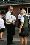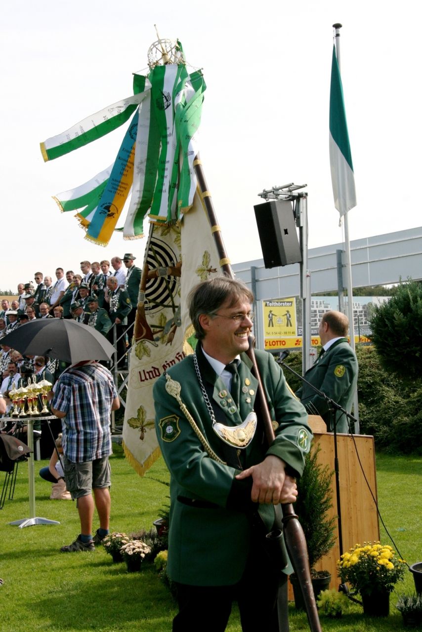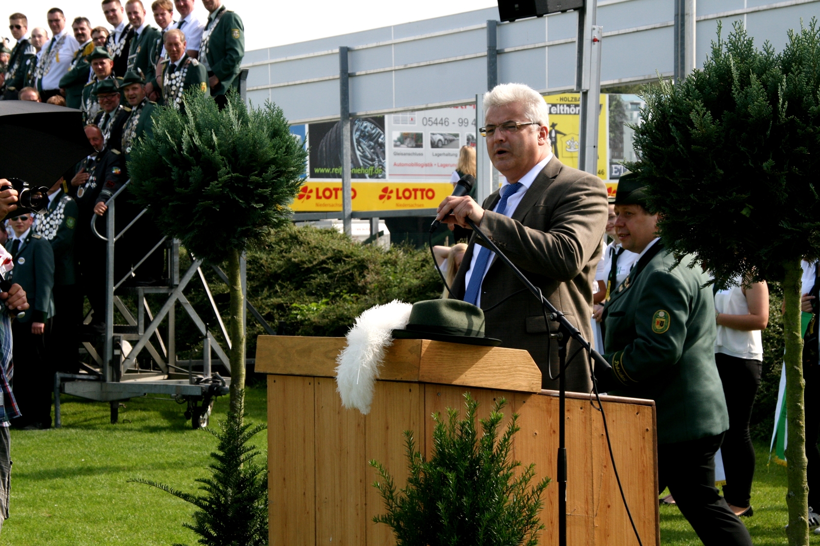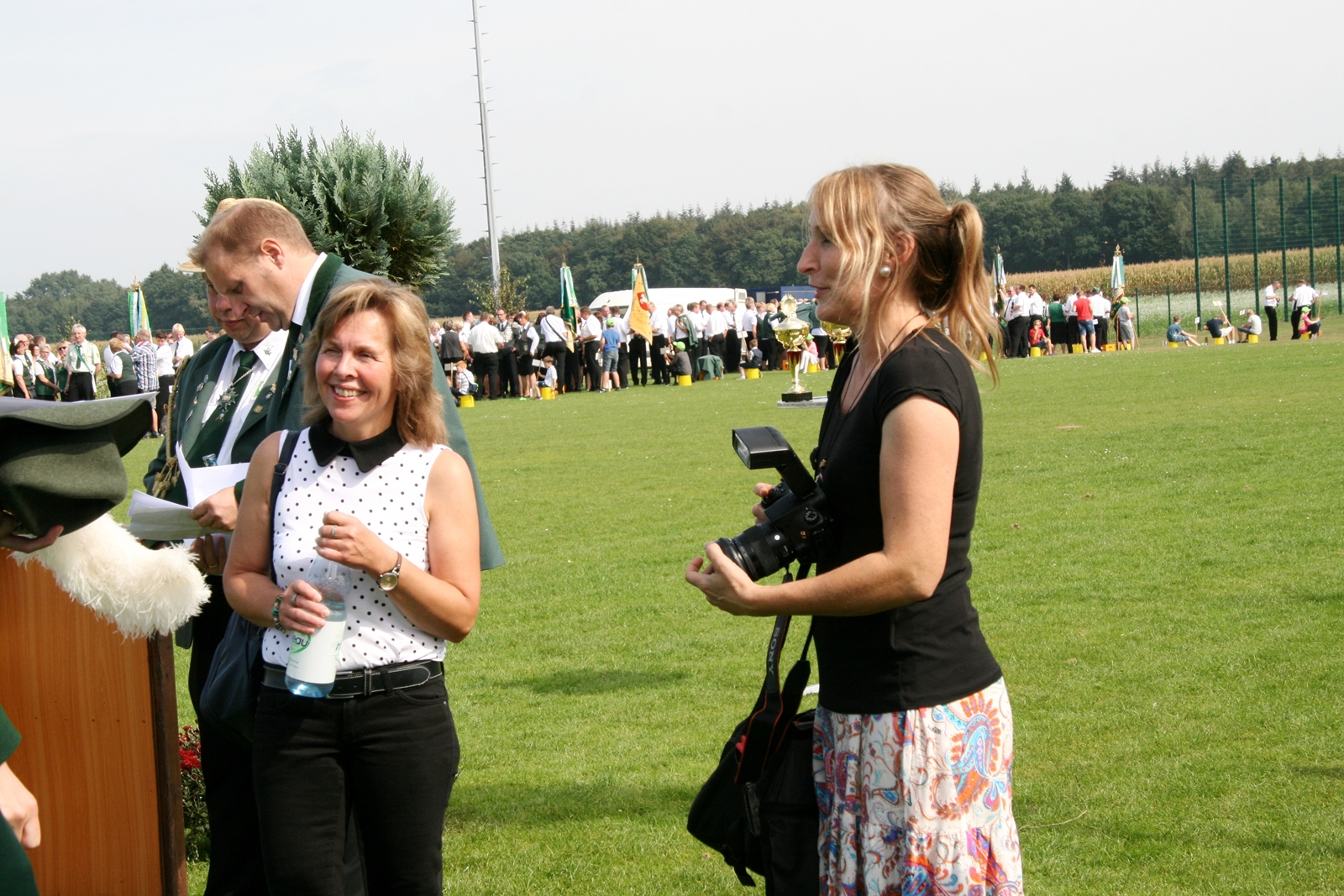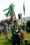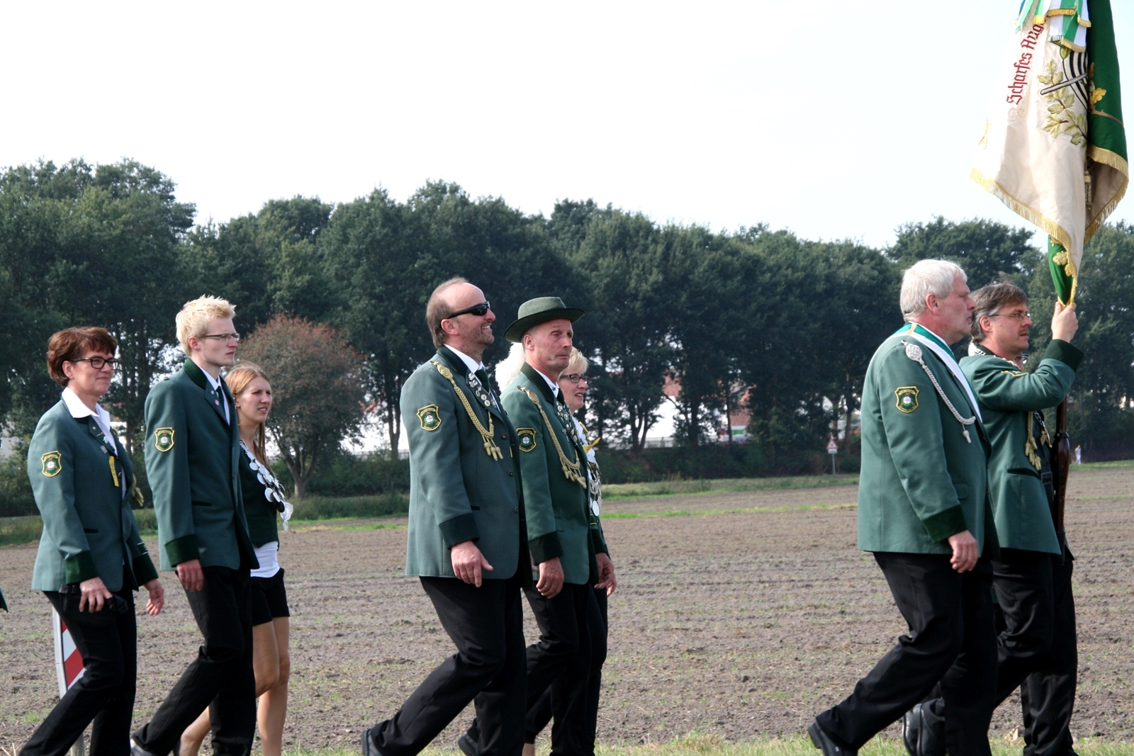 Dann waren die Fahnenträger gefragt, schnellen Schrittes kamen sie heran und erhielten von den jungen Schützendamen des Vereins Rehden die Fahnenbänder...