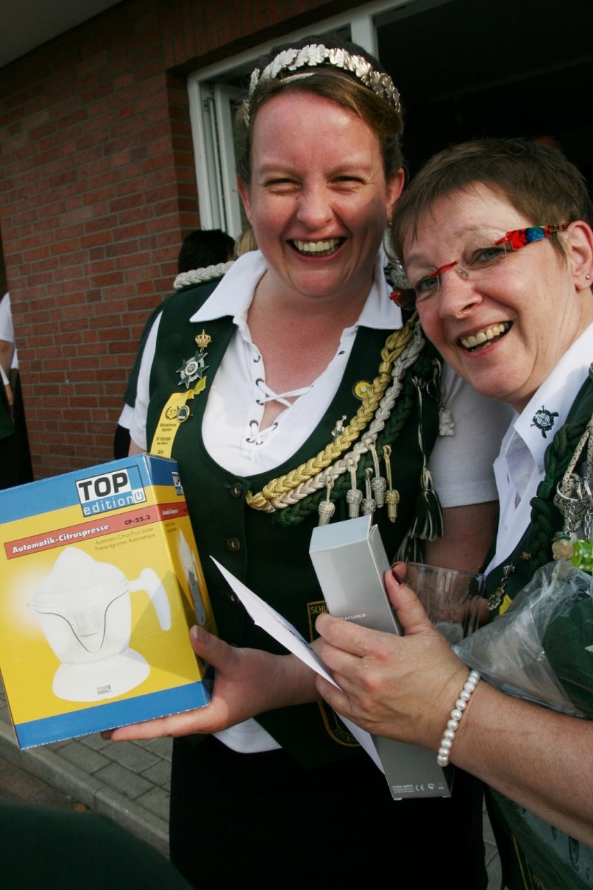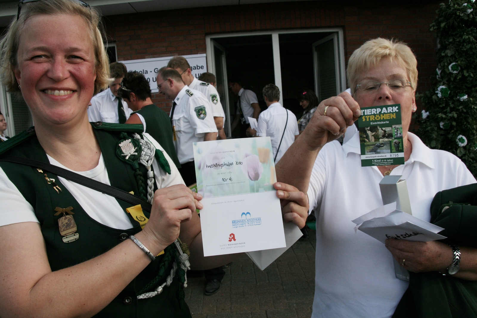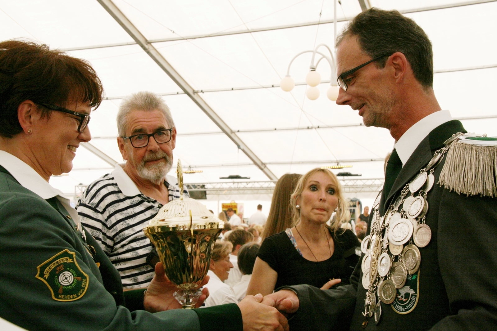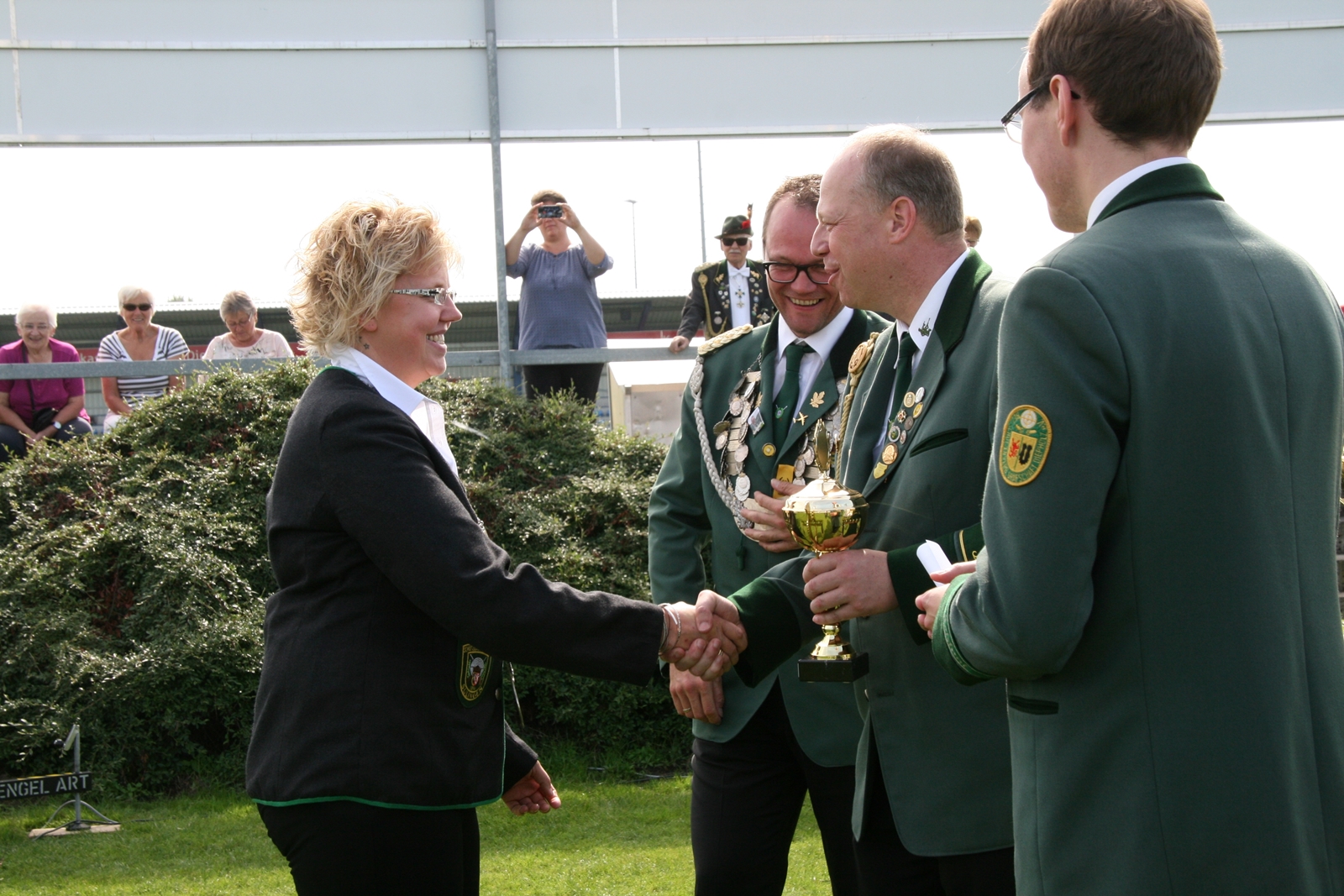 Freude pur bei den Damen vom SV Hemsloh mit ihrer Königin Jutta Bruns, sie halten die Daumen natürlich zurecht stolz nach oben. Solch einen großen Wanderpokal gewinnt man ja nicht alle Tage, 36 Damen-Mannschaften waren angetreten diesen "Pott" zu gewinnen, um ihn für ein Jahr bei sich im Vereinsheim zur "Schau" zu stellen.