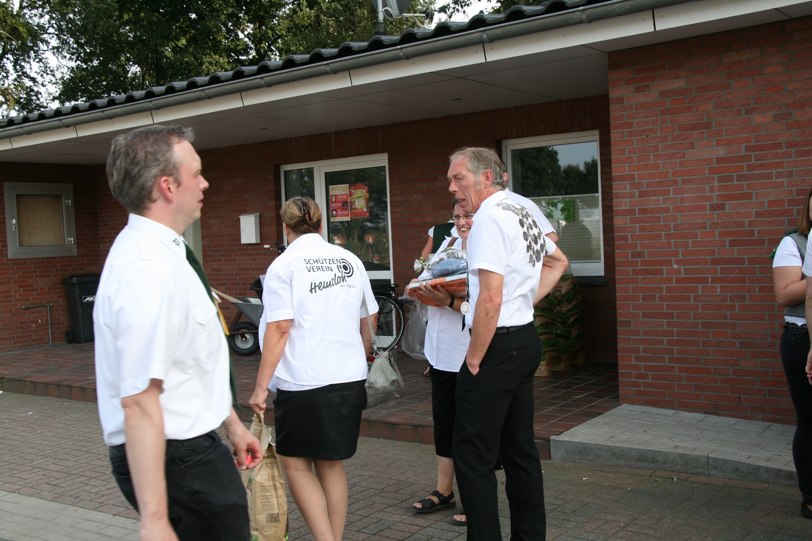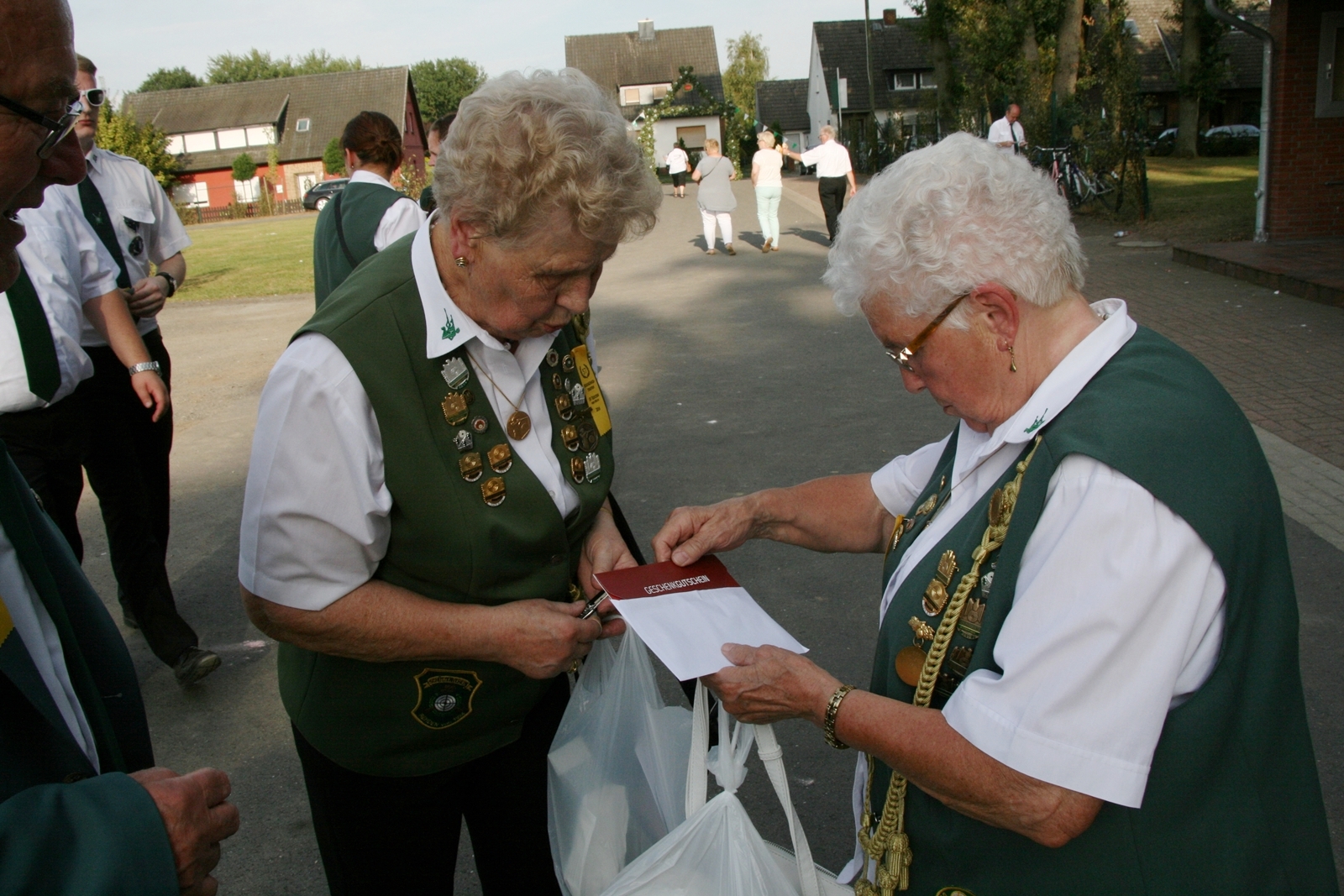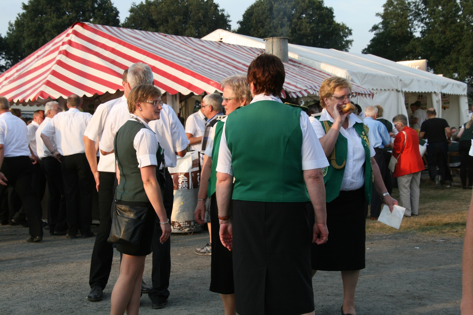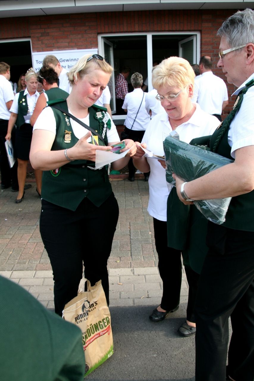 Freude pur bei den Damen vom SV Hemsloh mit ihrer Königin Jutta Bruns, sie halten die Daumen natürlich zurecht stolz nach oben. Solch einen großen Wanderpokal gewinnt man ja nicht alle Tage, 36 Damen-Mannschaften waren angetreten diesen "Pott" zu gewinnen, um ihn für ein Jahr bei sich im Vereinsheim zur "Schau" zu stellen.
