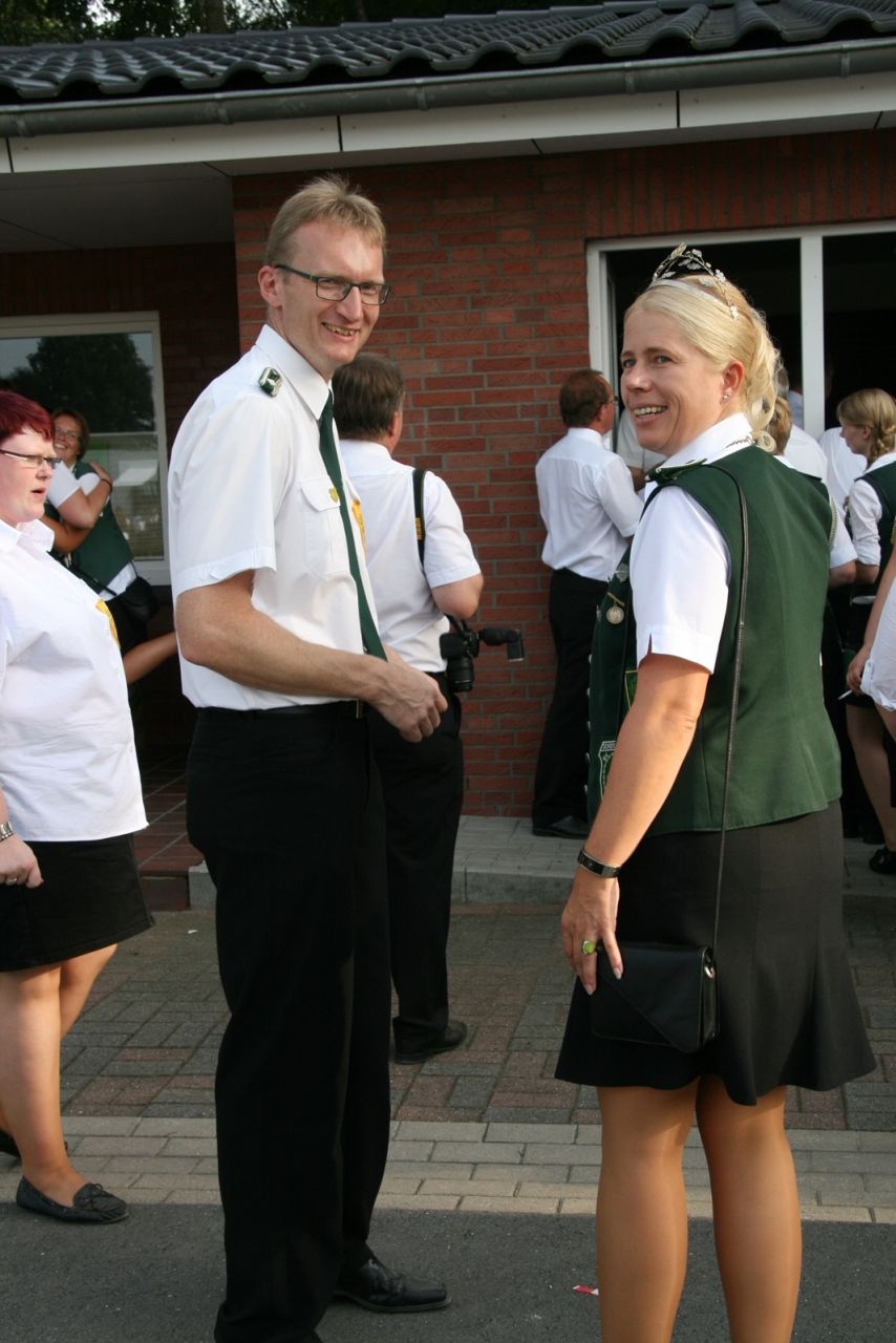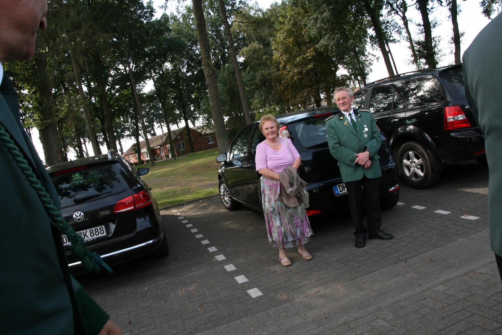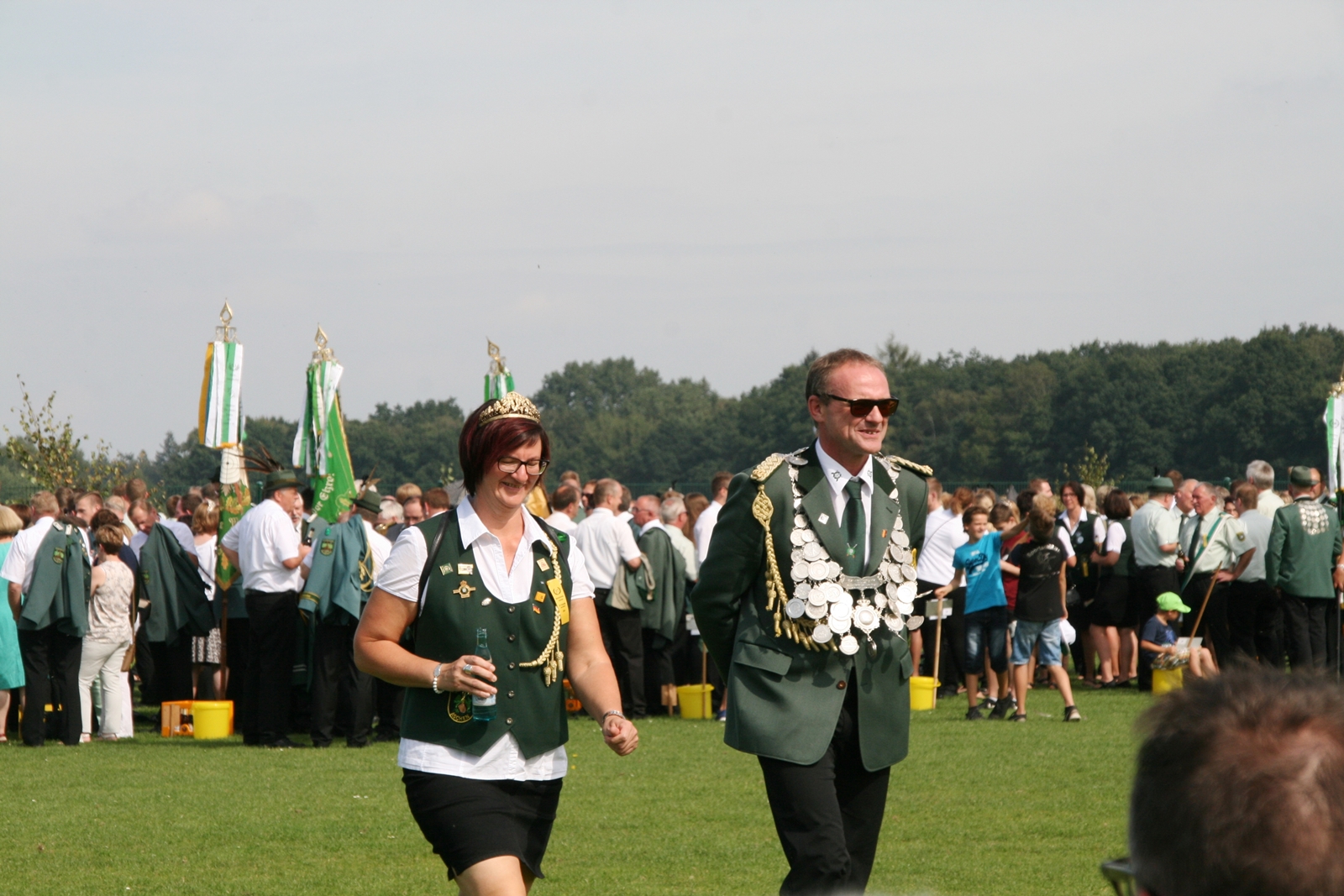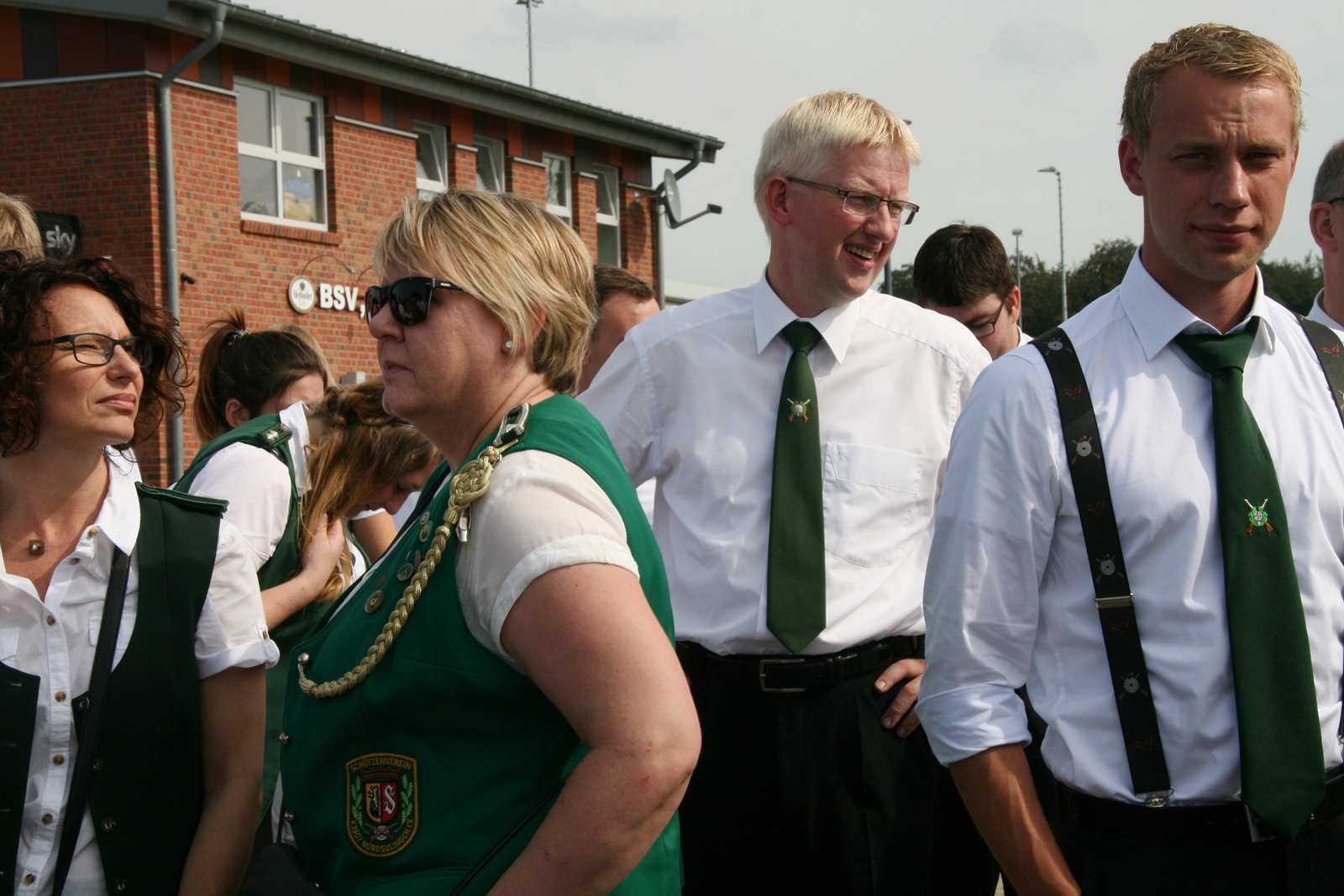 Dann "durfte" die noch amtierende Kreis-Majestät Andreas Albers mit der amtierenden Schützenkönigin des SV Rehden, Marion Bollhorst im Cabrio Platz nehmen. So nahmen sie gemeinsam mit den jugendlichen Majestäten unter großem Jubel die Front ab.