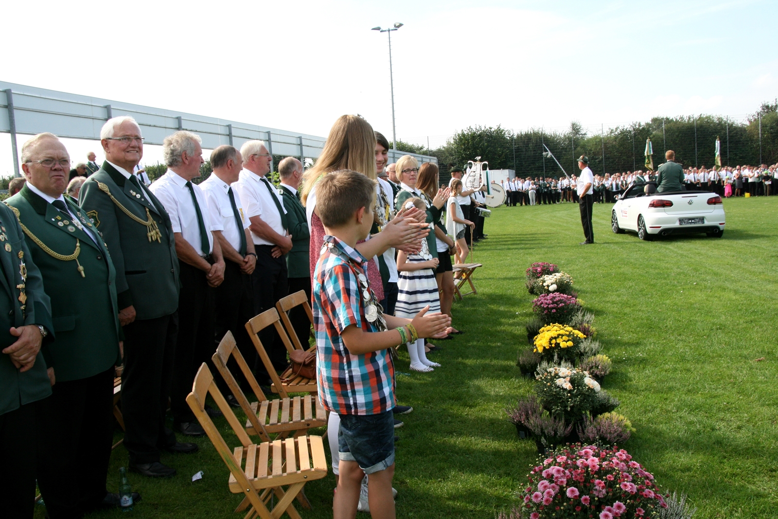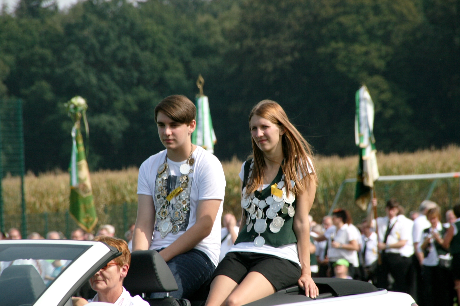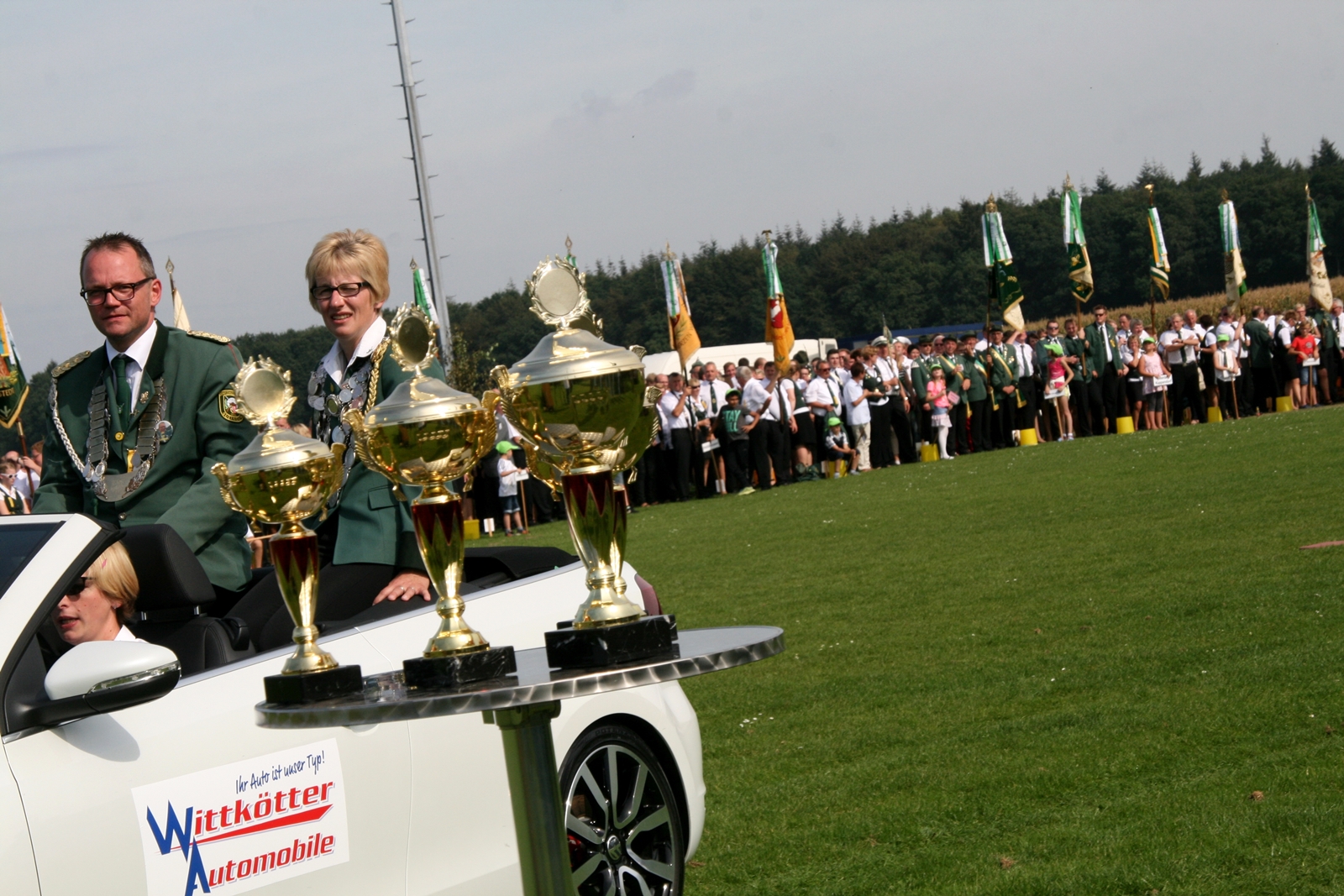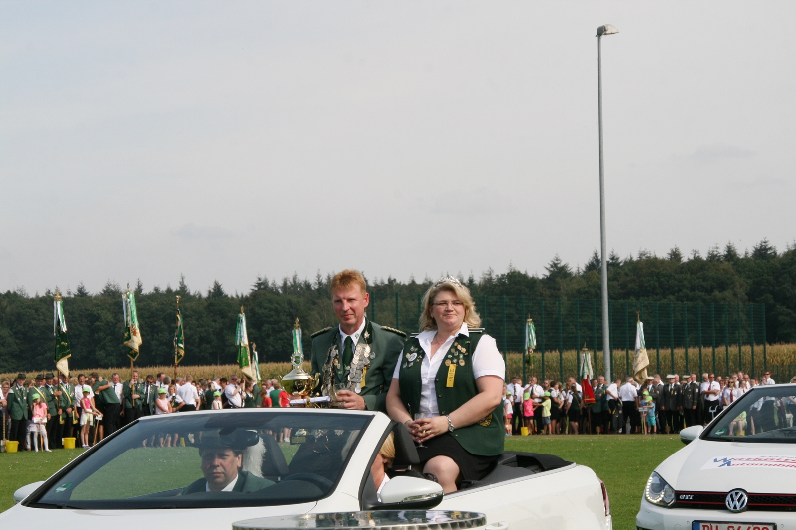 ..anschließend nahm der neue Kreiskönig mit dem Jugendkönig und der Schülerkönigin die lange Front ab, unterwegs stieg seine Frau Marina mit in den Wagen ein...