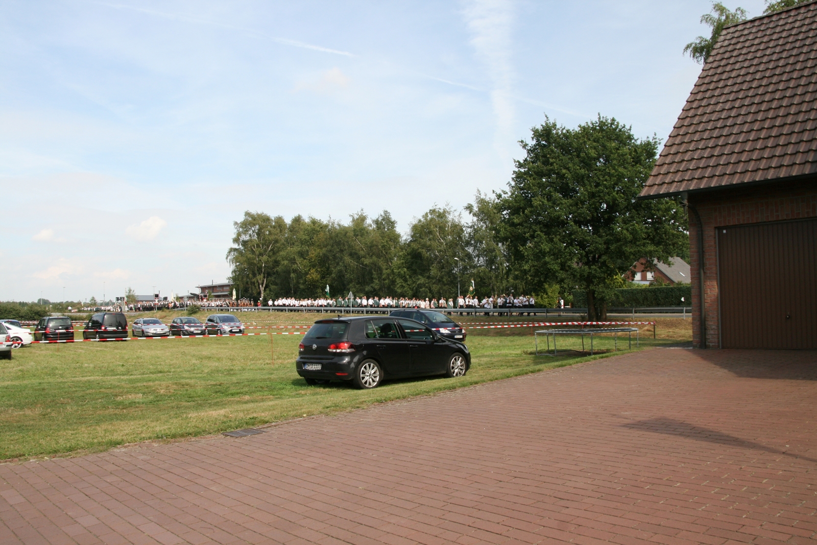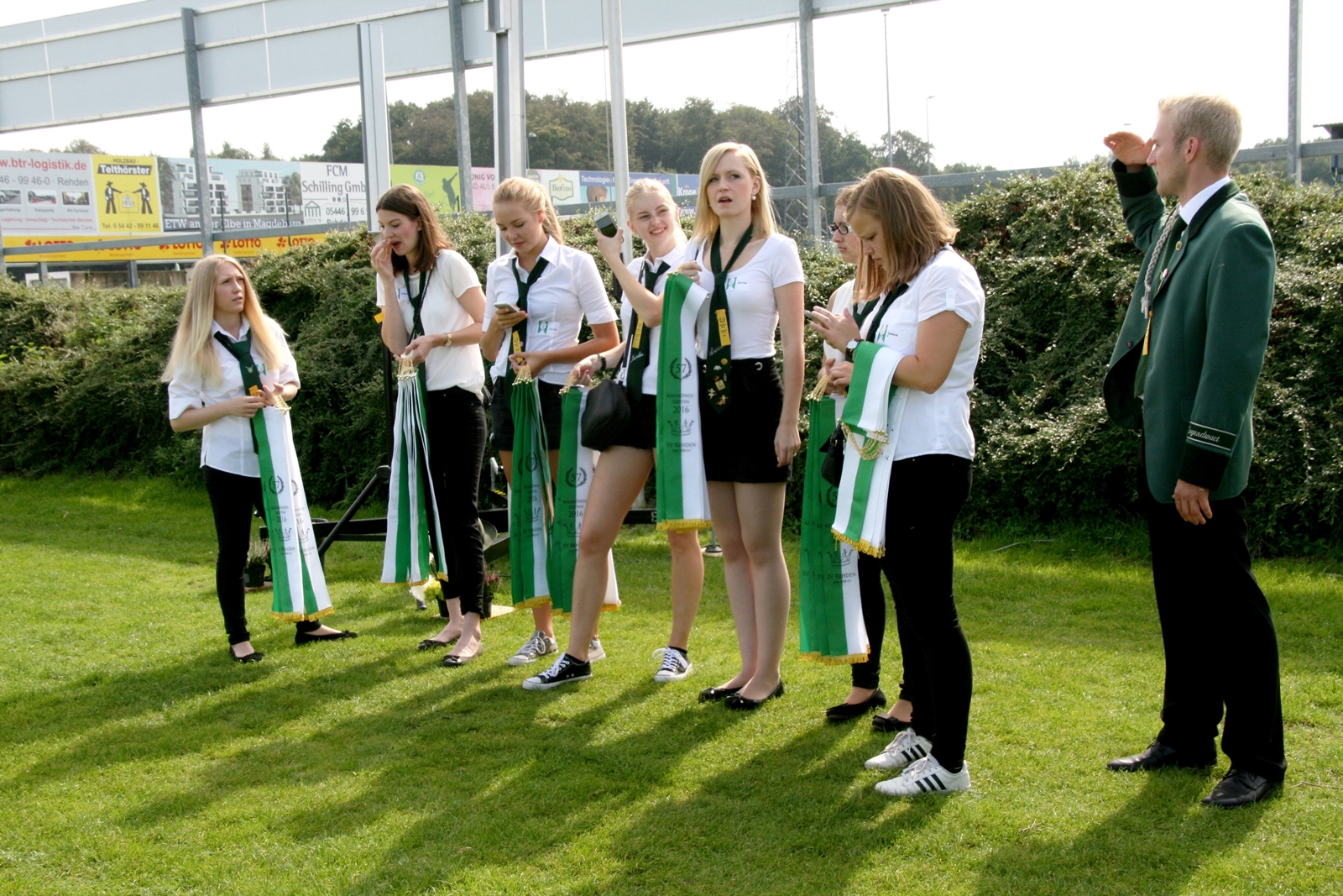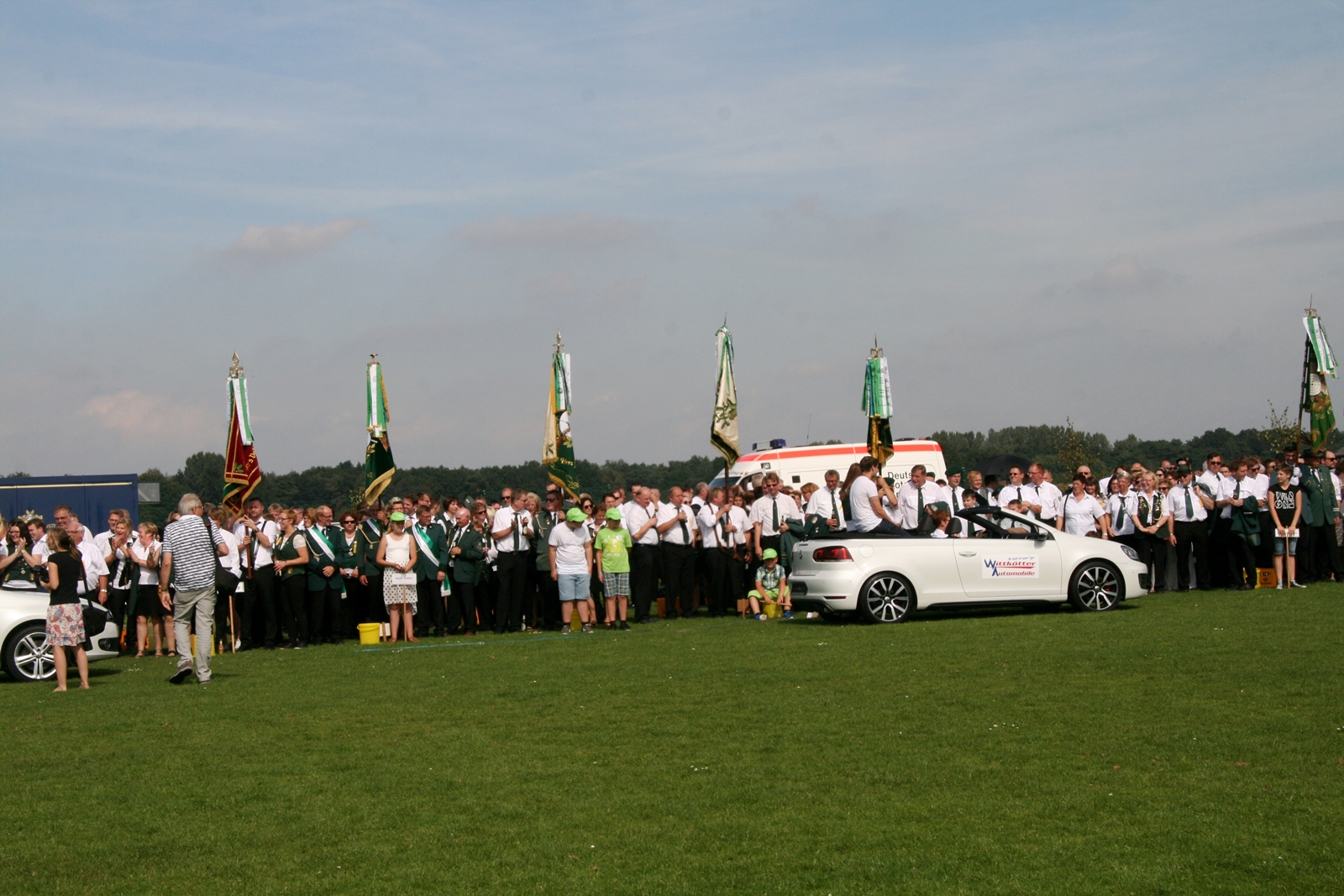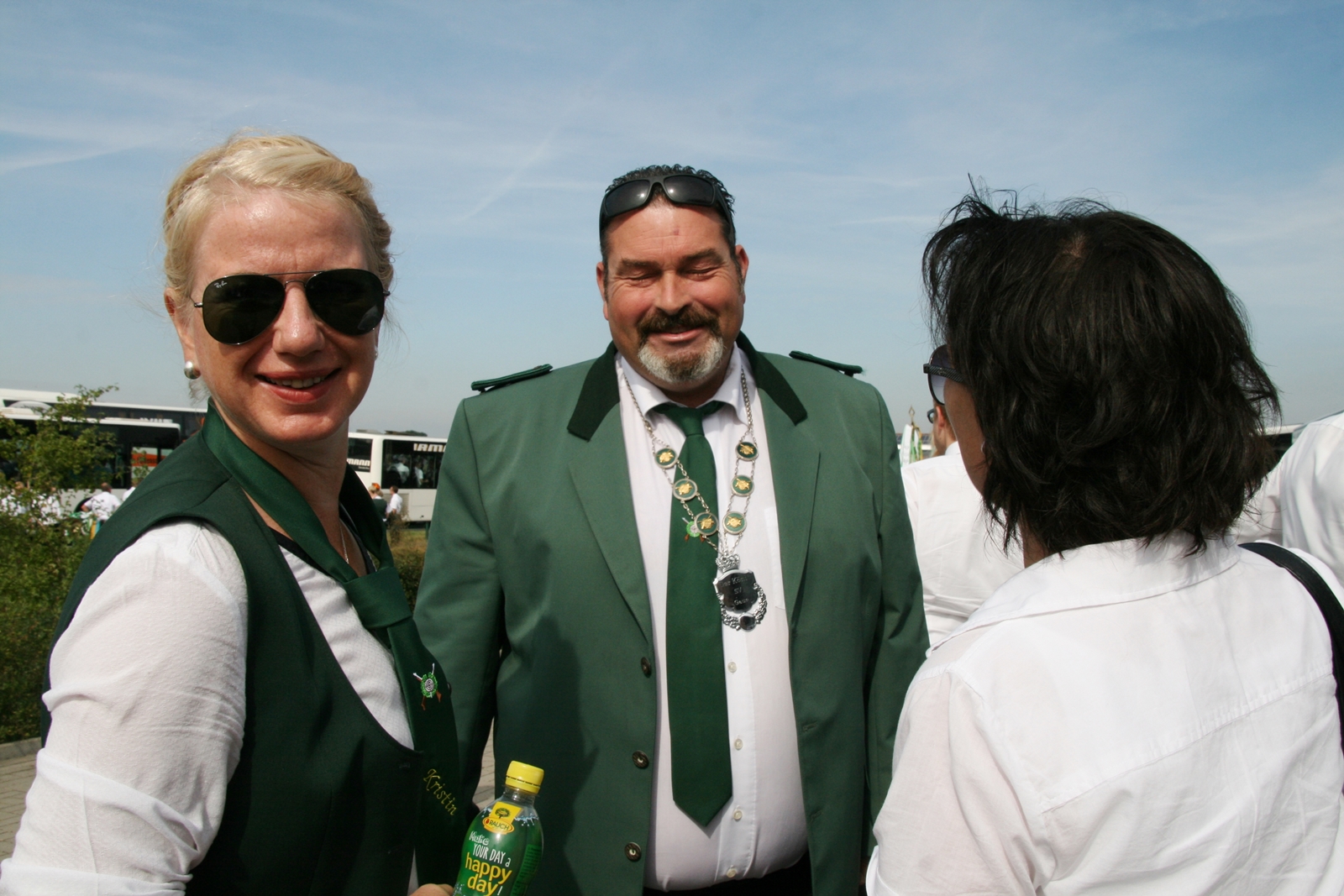 ..anschließend nahm der neue Kreiskönig mit dem Jugendkönig und der Schülerkönigin die lange Front ab, unterwegs stieg seine Frau Marina mit in den Wagen ein...