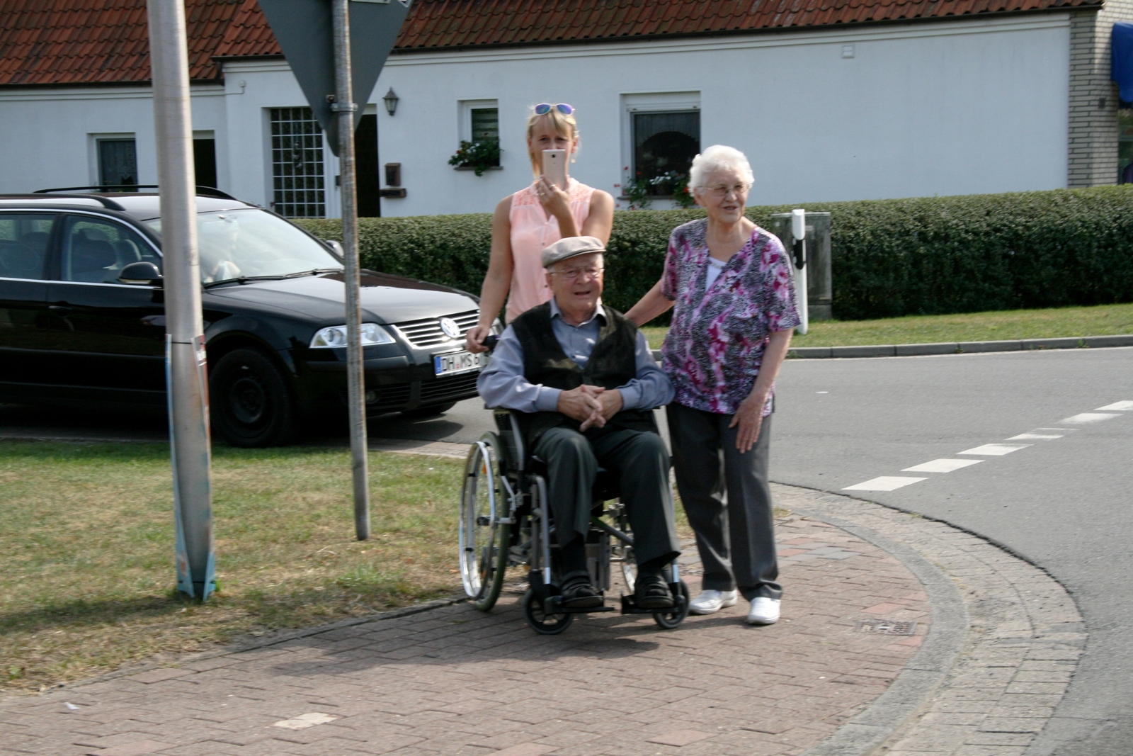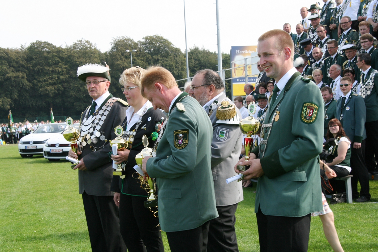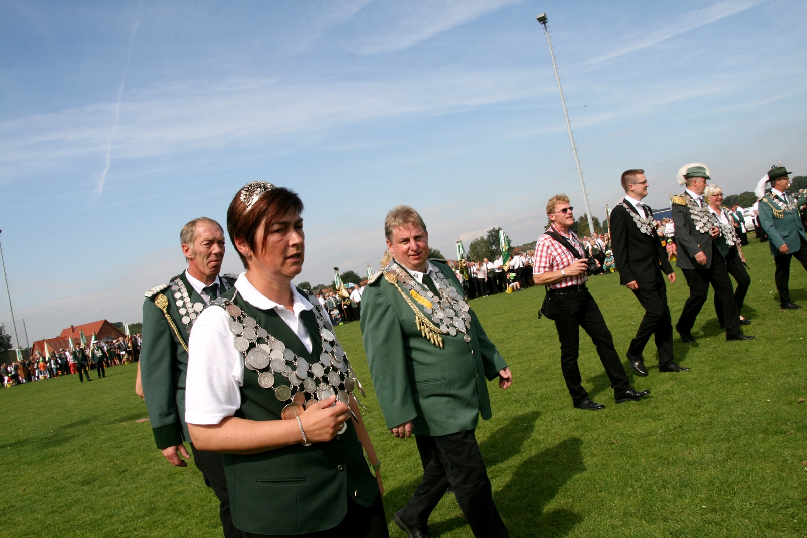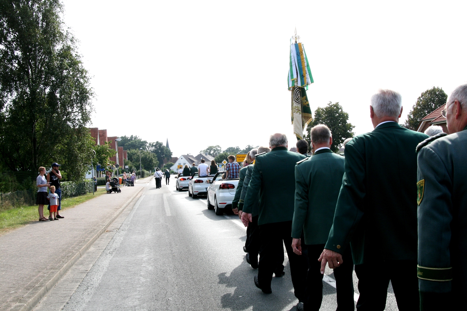 ..anschließend nahm der neue Kreiskönig mit dem Jugendkönig und der Schülerkönigin die lange Front ab, unterwegs stieg seine Frau Marina mit in den Wagen ein...