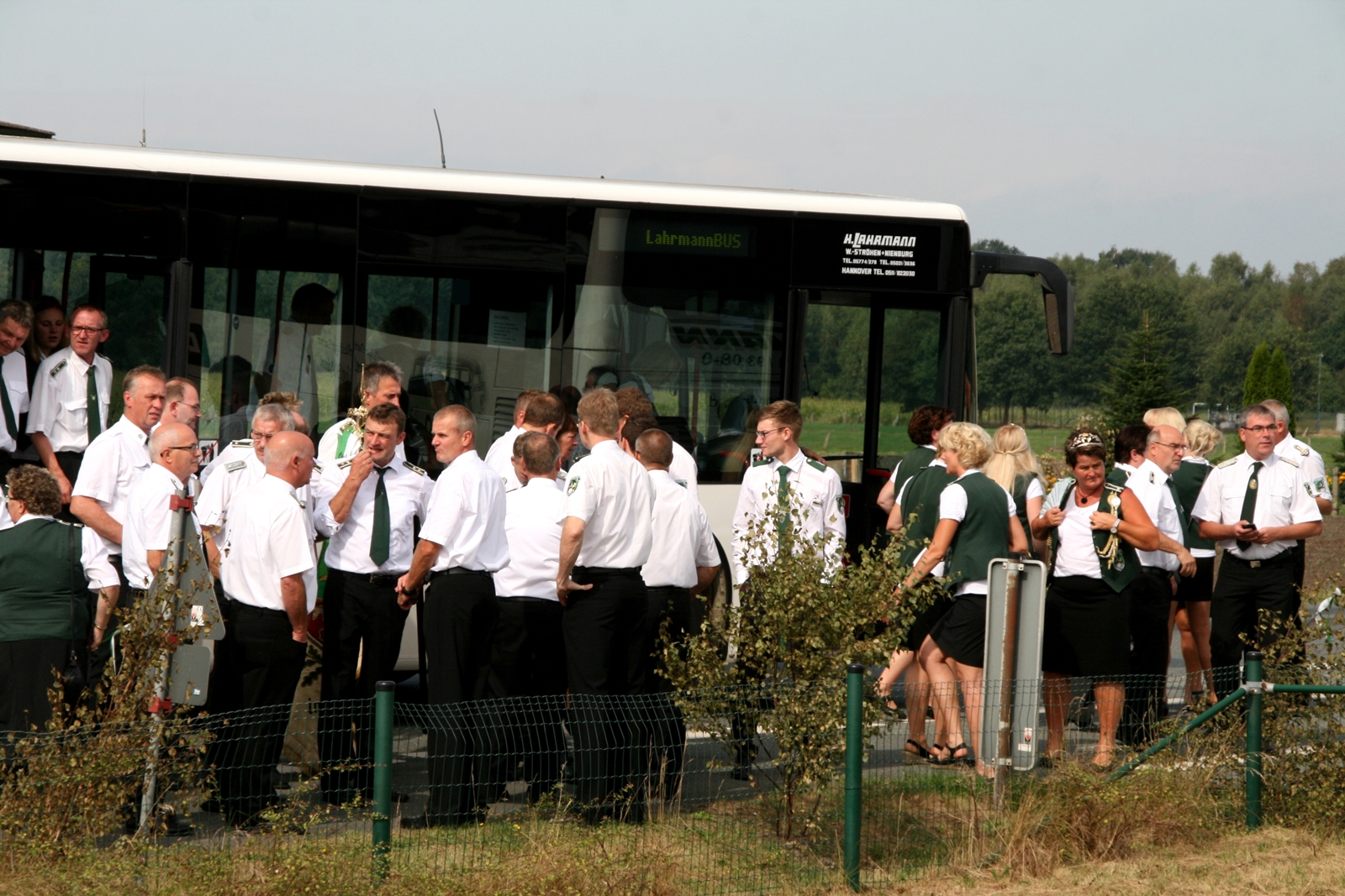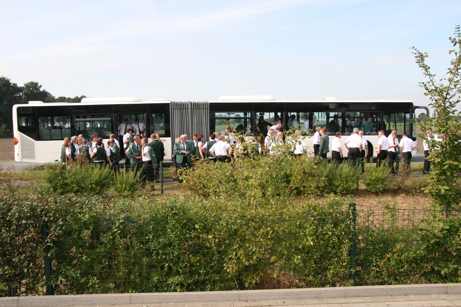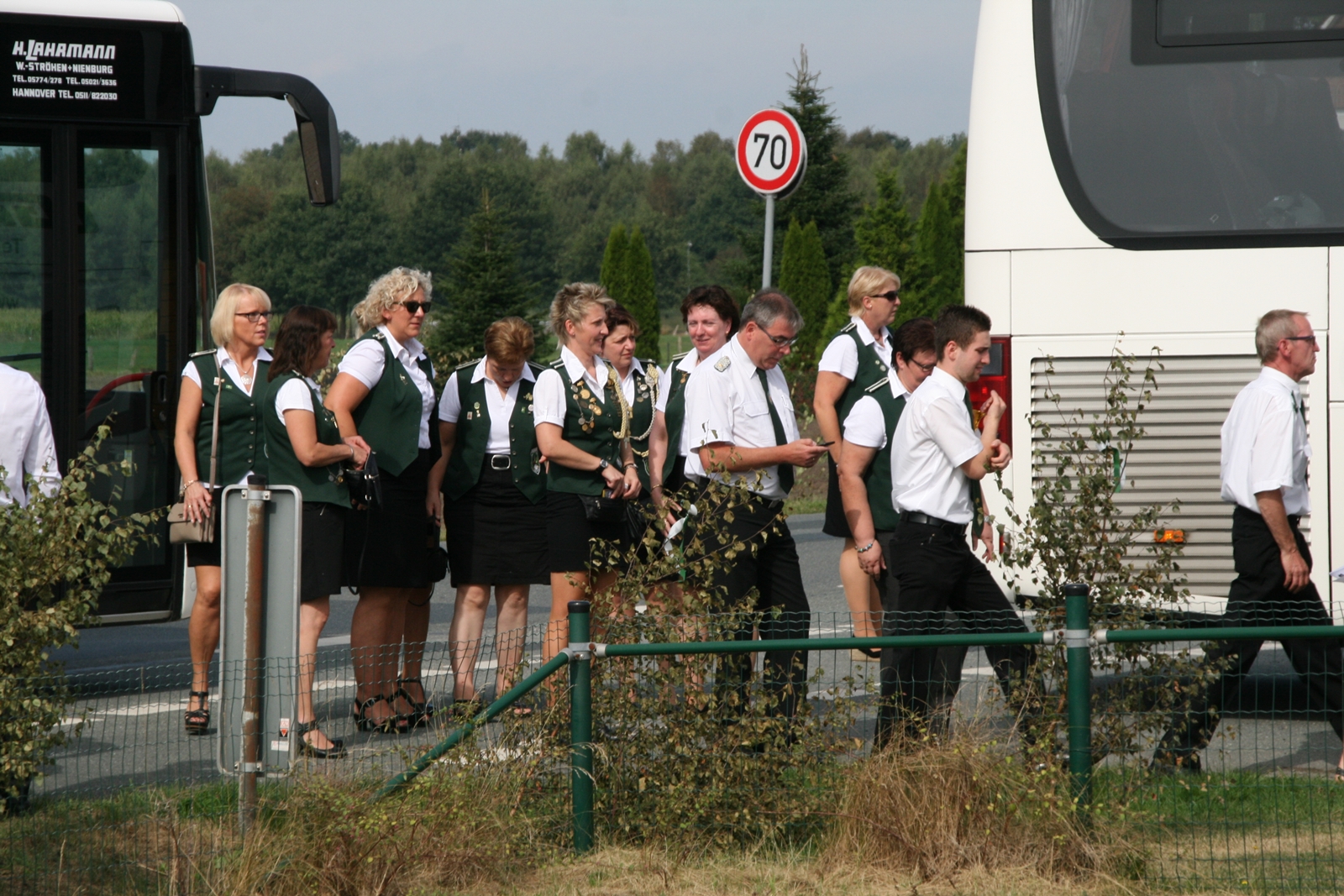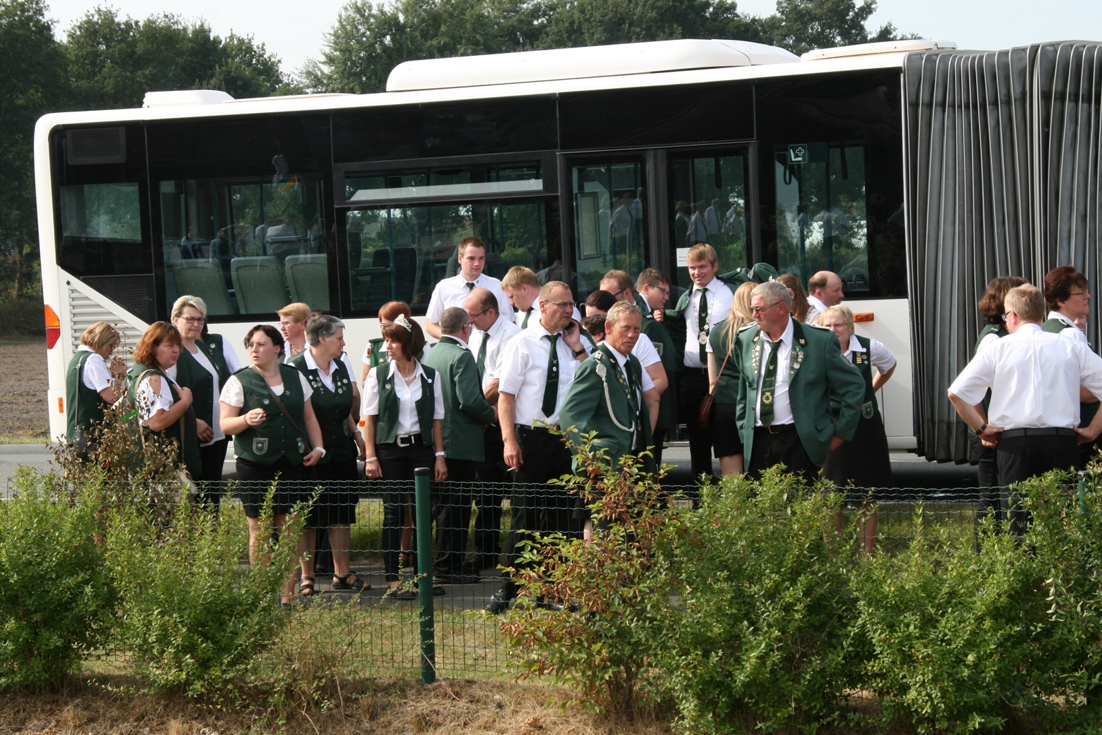 Die Anreise in Bussen verlief zügig zu den verschiedenen Meldestellen, von dort wurden die Schützen musikalisch von Spielmannszügen zum Antreteplatz begleitet.