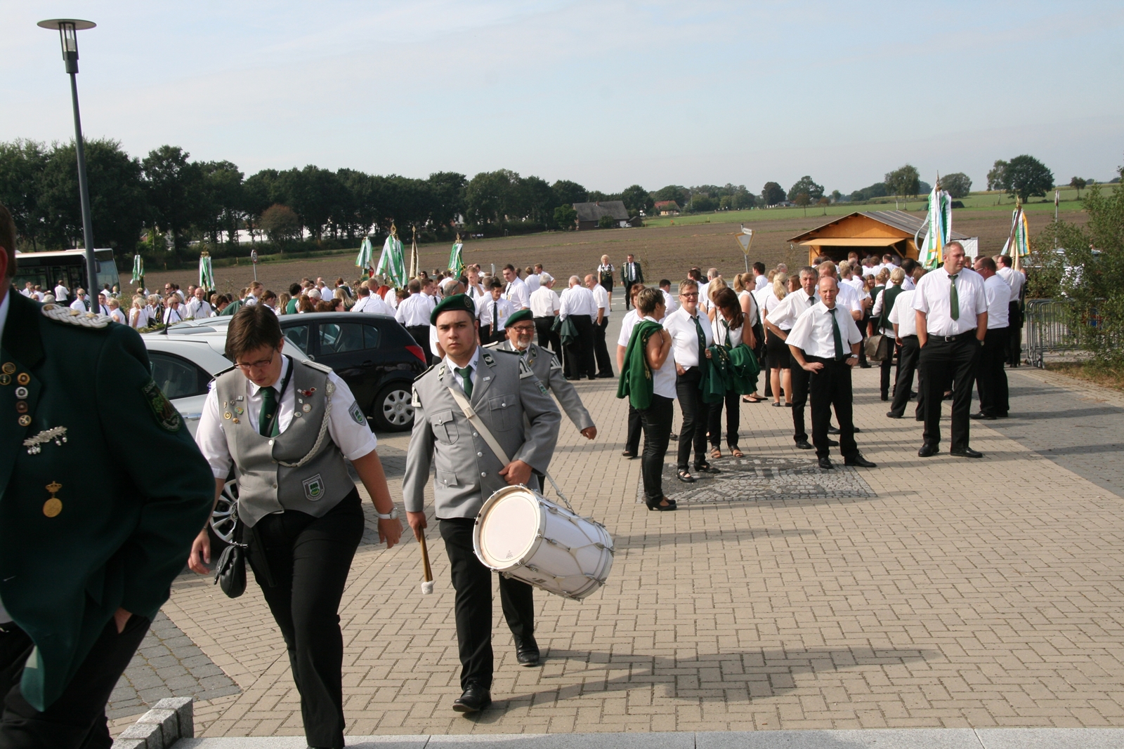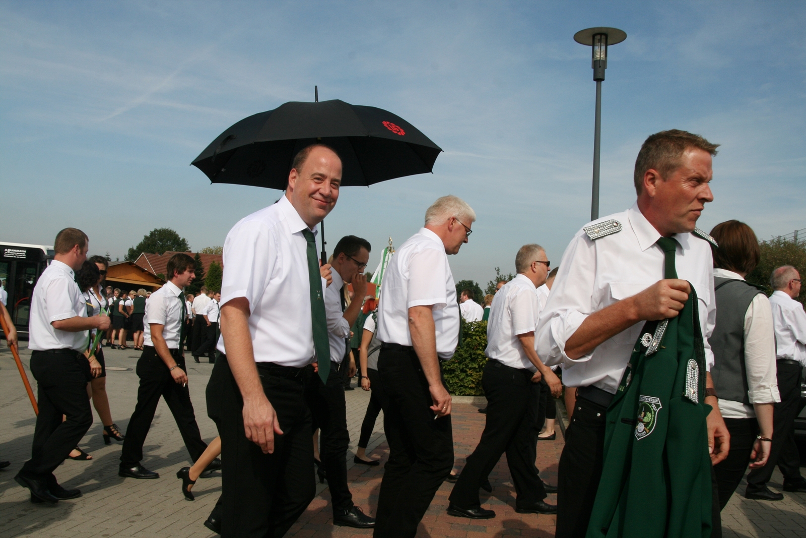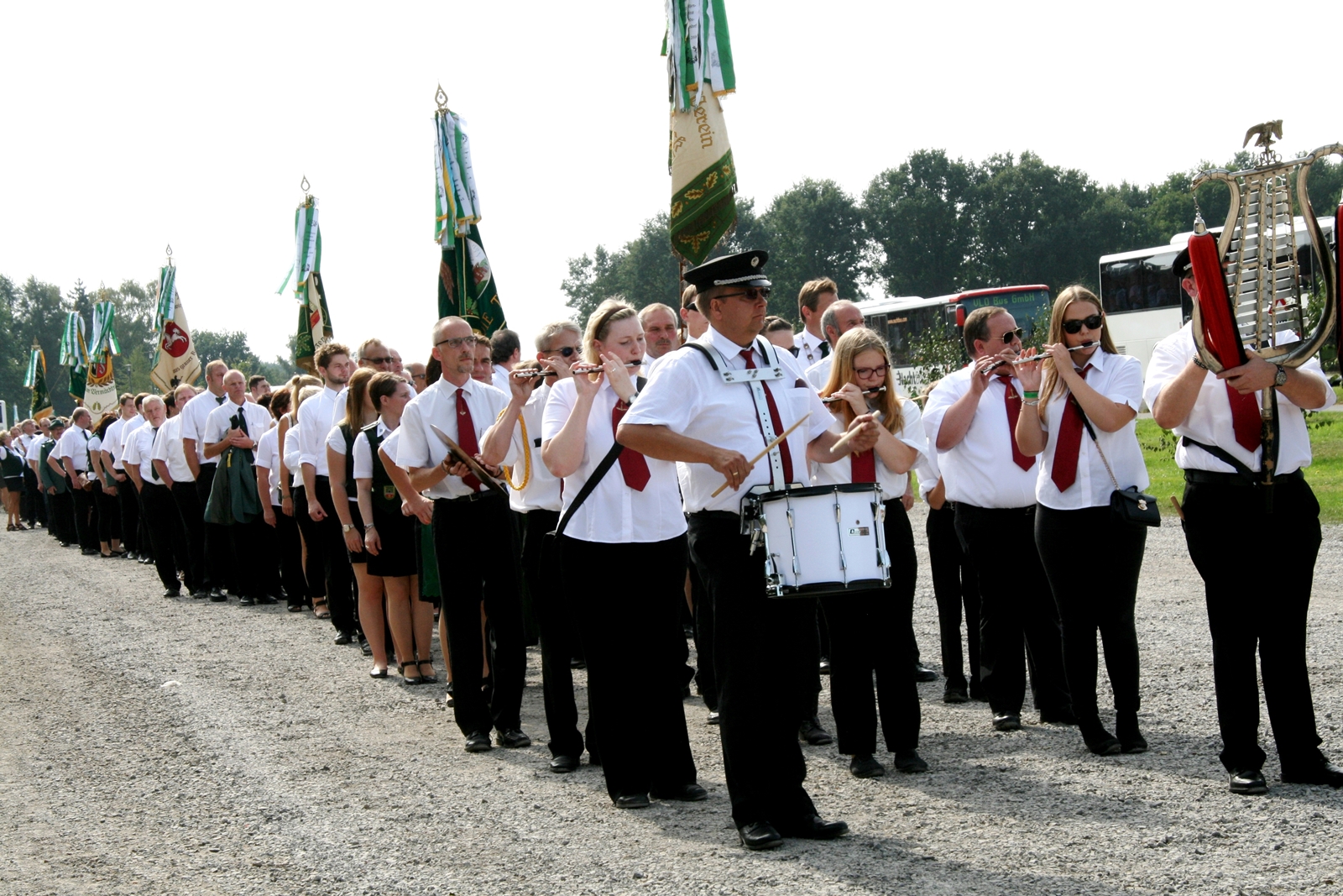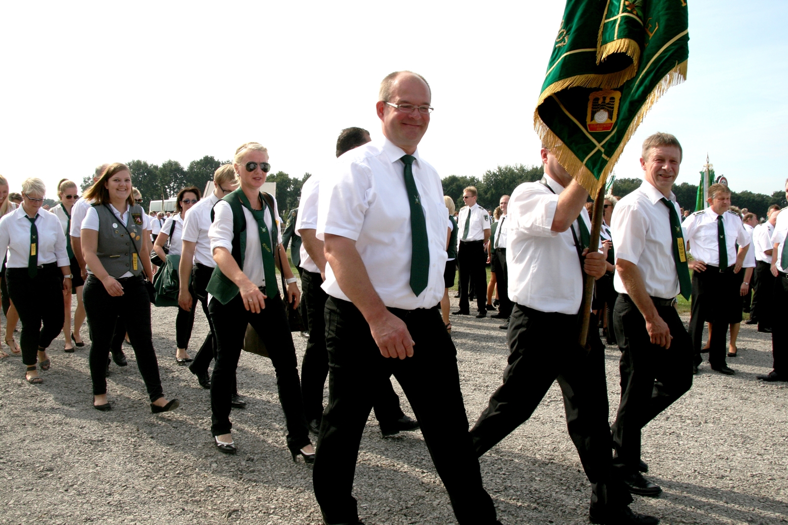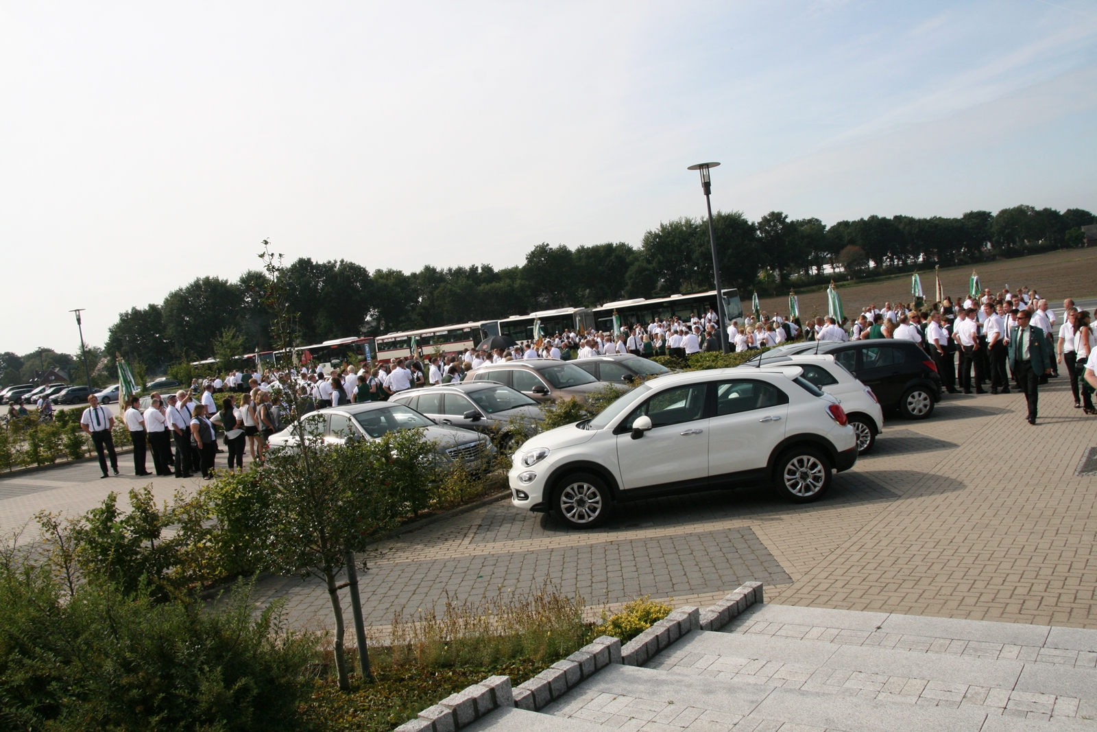 Die Anreise in Bussen verlief zügig zu den verschiedenen Meldestellen, von dort wurden die Schützen musikalisch von Spielmannszügen zum Antreteplatz begleitet.