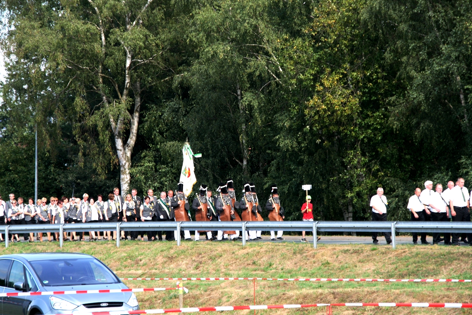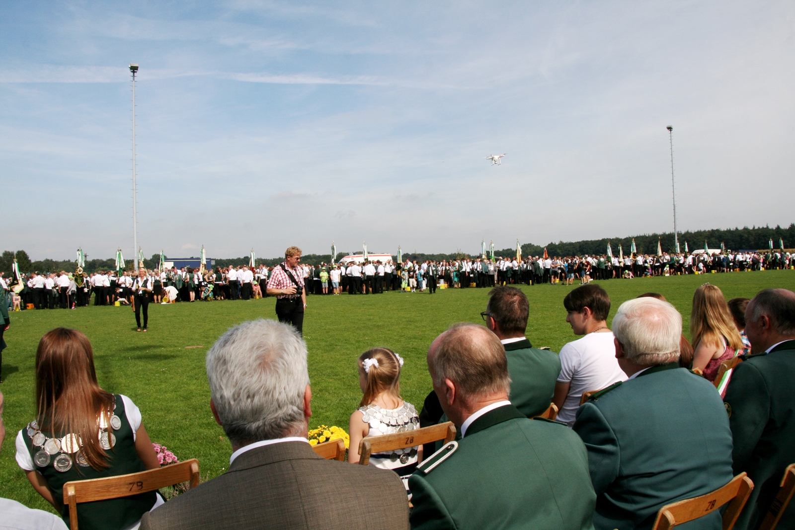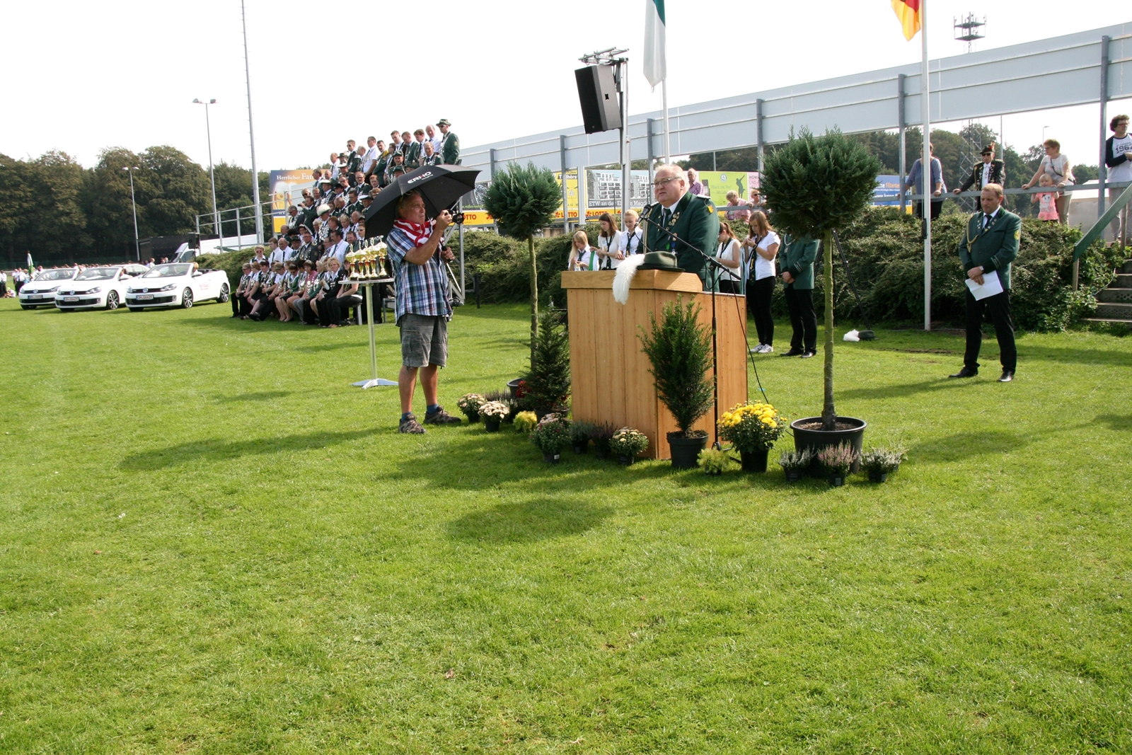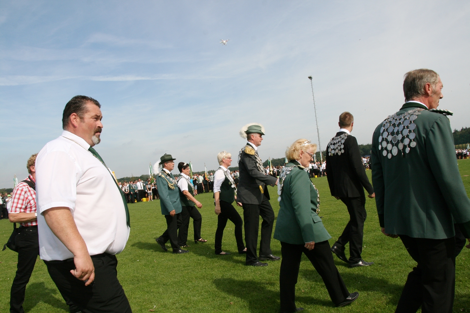 Die Anreise in Bussen verlief zügig zu den verschiedenen Meldestellen, von dort wurden die Schützen musikalisch von Spielmannszügen zum Antreteplatz begleitet.