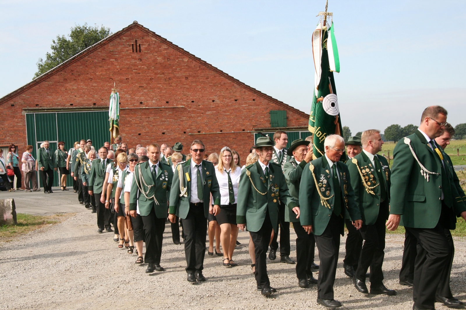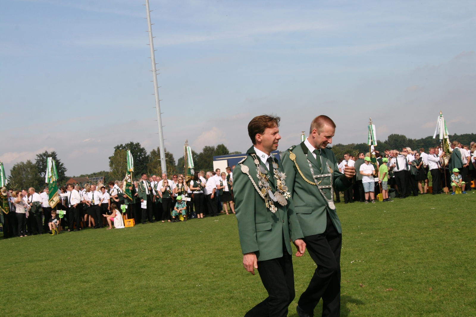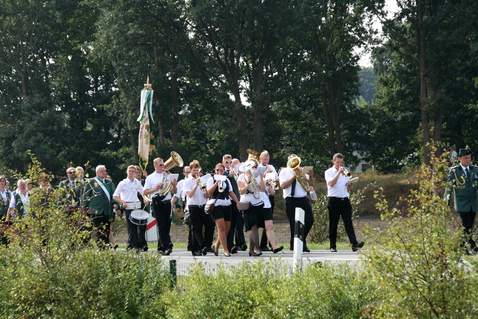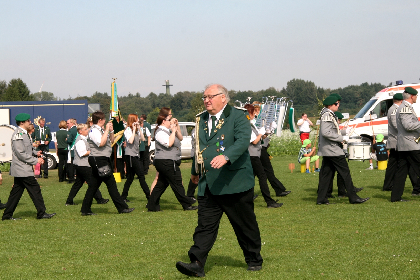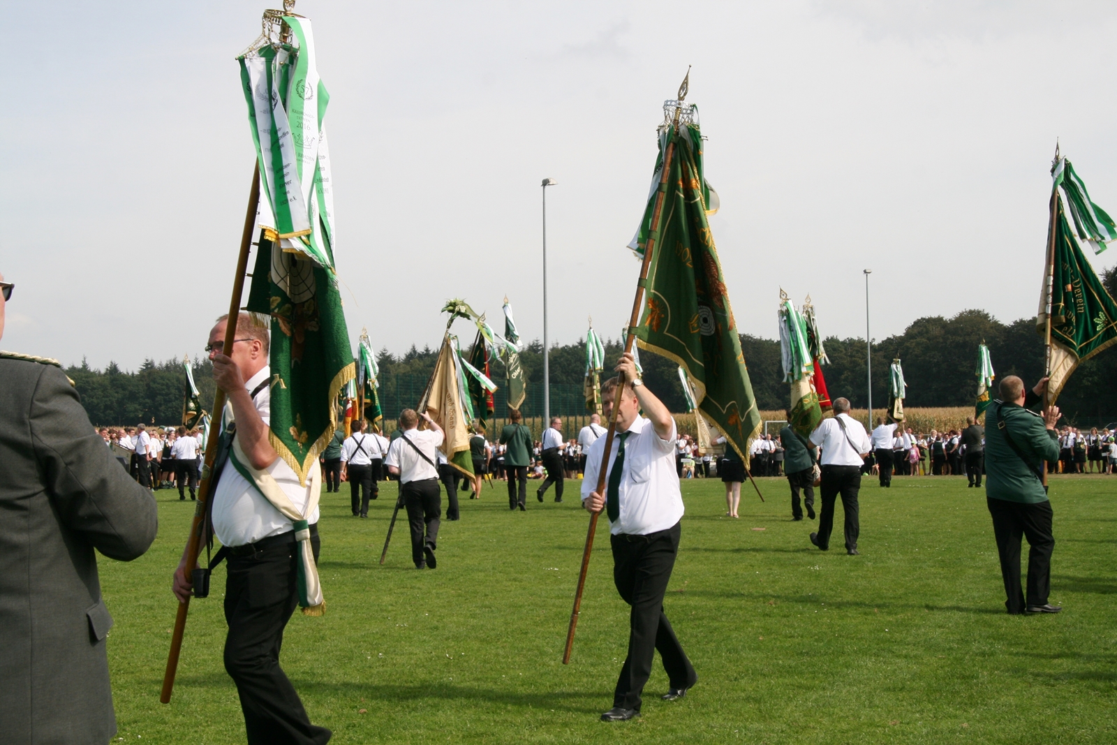 Die Anreise in Bussen verlief zügig zu den verschiedenen Meldestellen, von dort wurden die Schützen musikalisch von Spielmannszügen zum Antreteplatz begleitet.