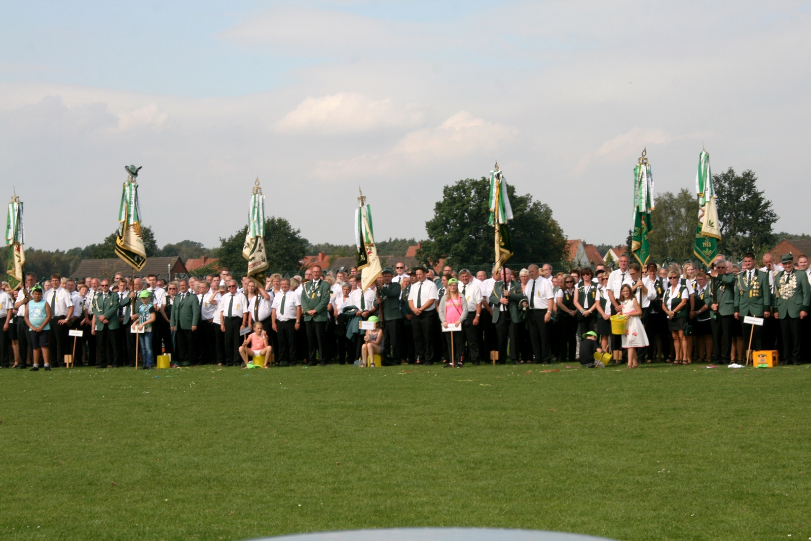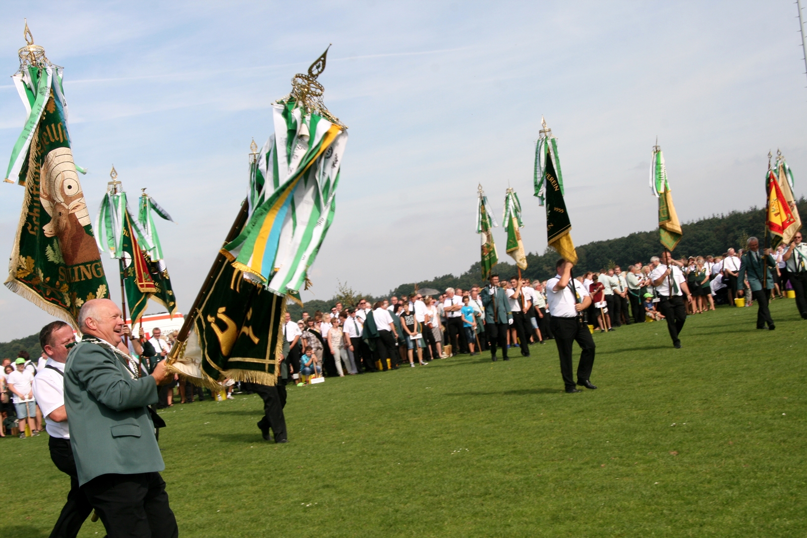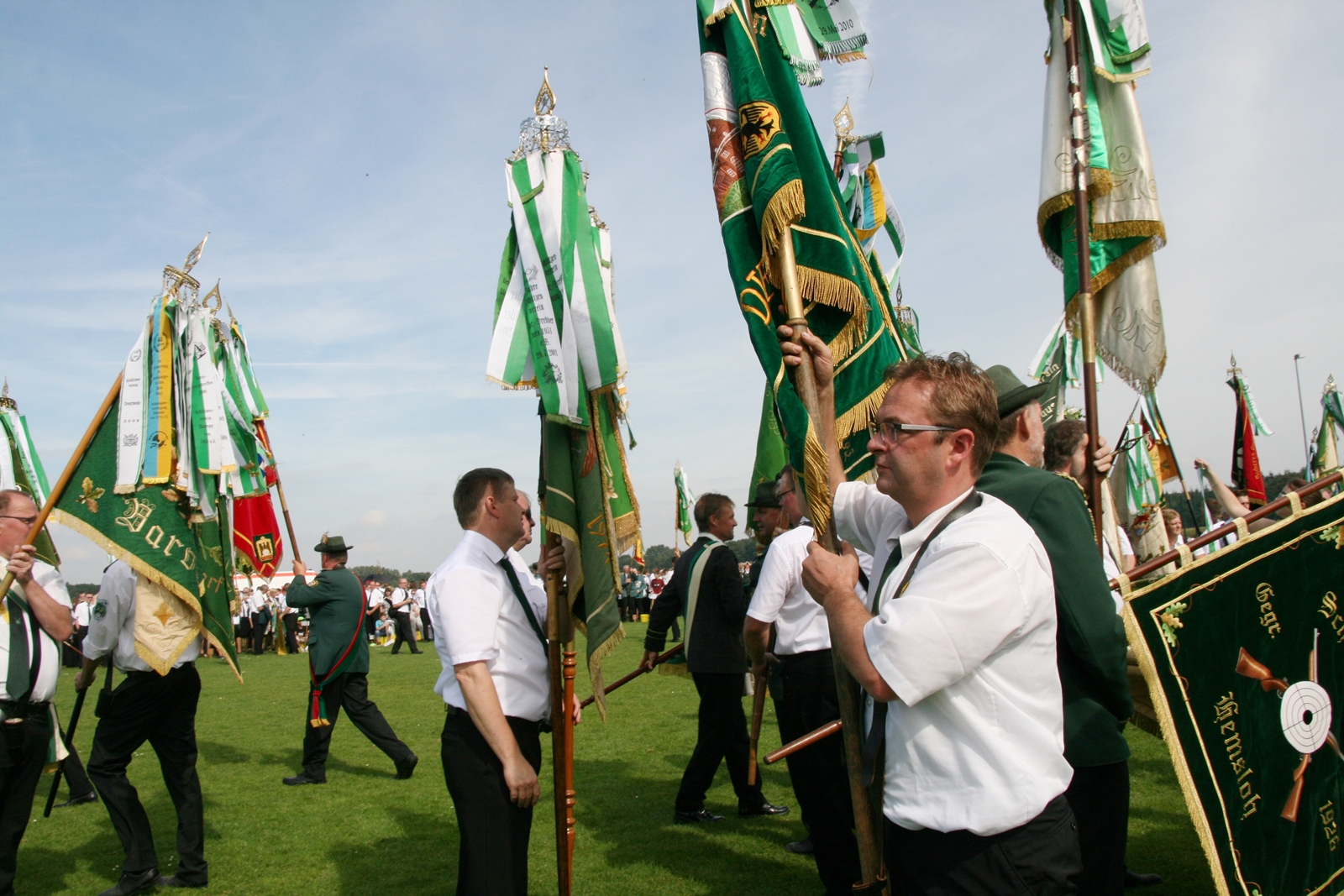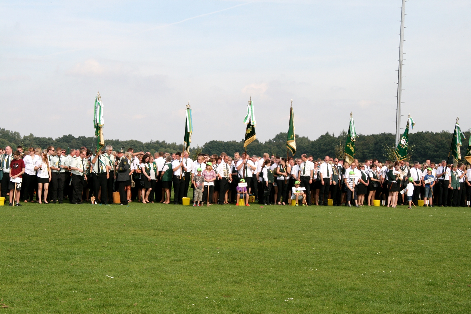 Das Treffen der Schützenvereine auf dem Antreteplatz bei den Waldsportstätten.