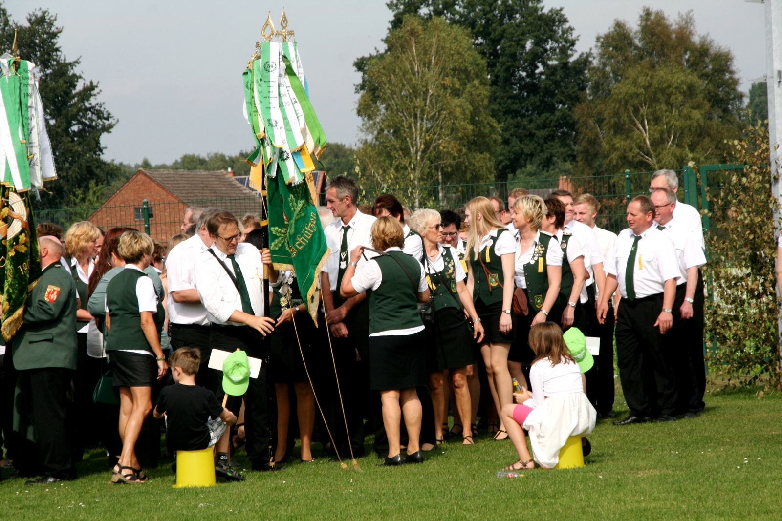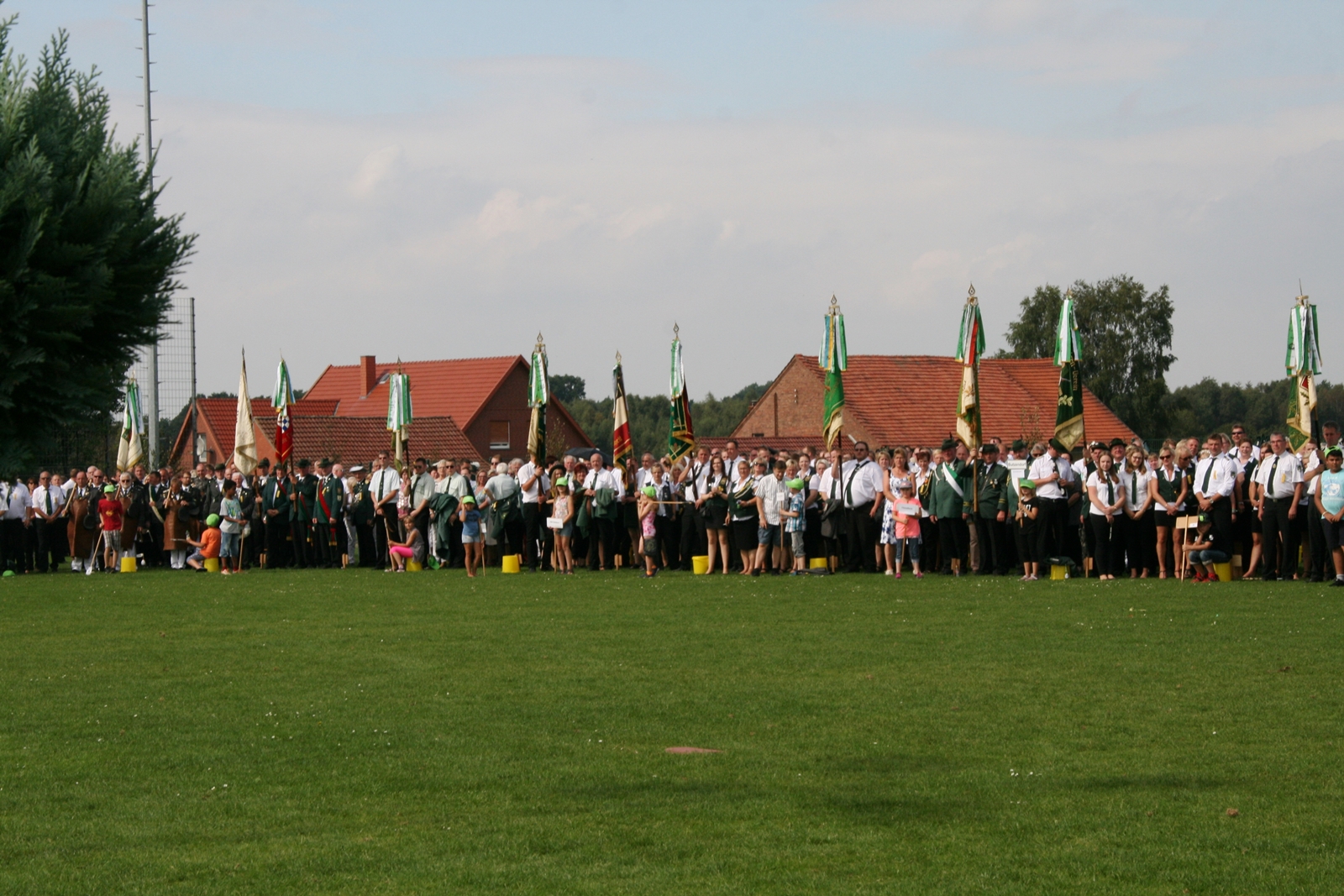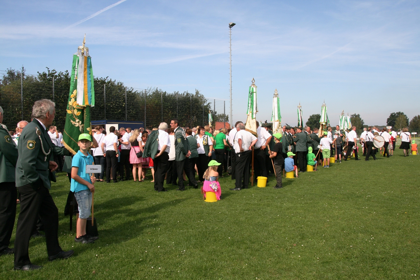 Das Treffen der Schützenvereine auf dem Antreteplatz bei den Waldsportstätten.