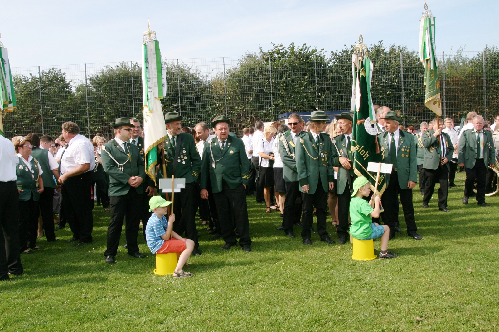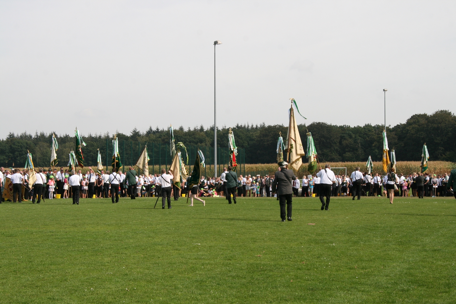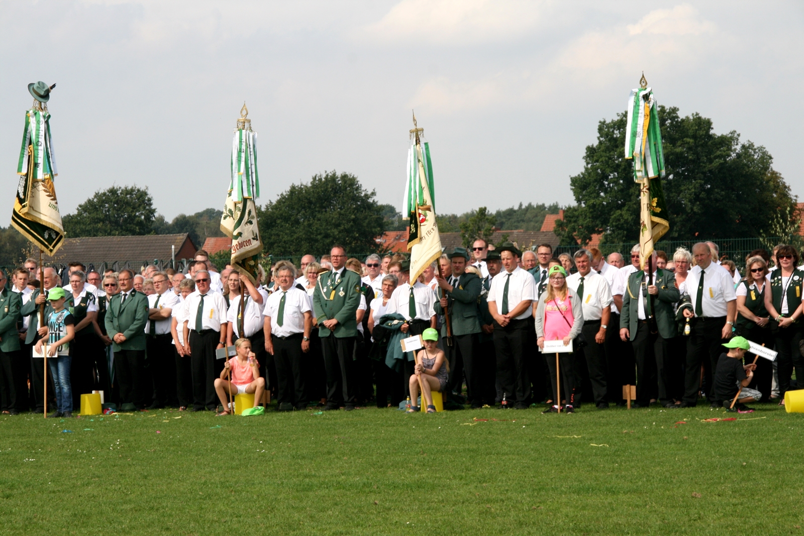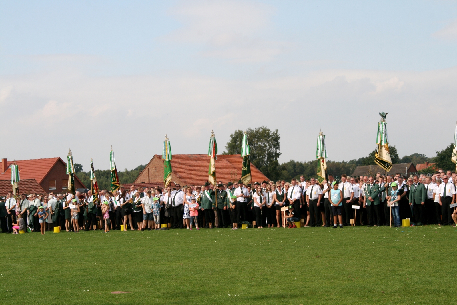 Das Treffen der Schützenvereine auf dem Antreteplatz bei den Waldsportstätten.