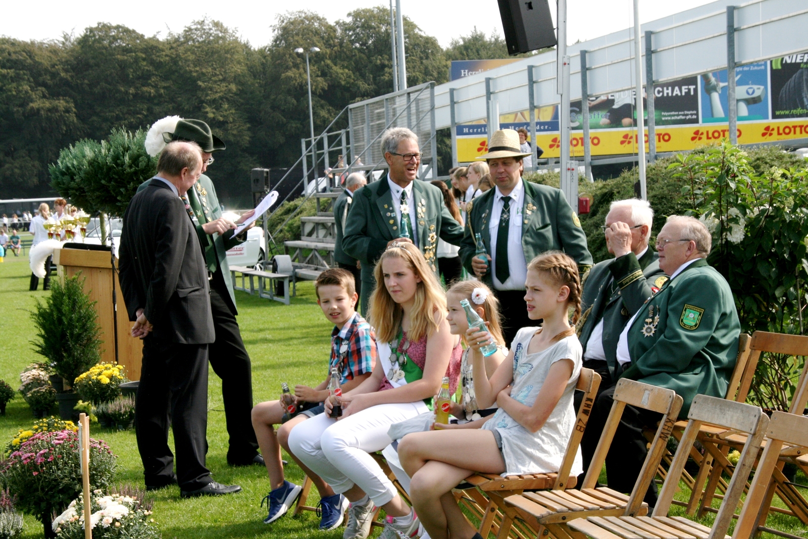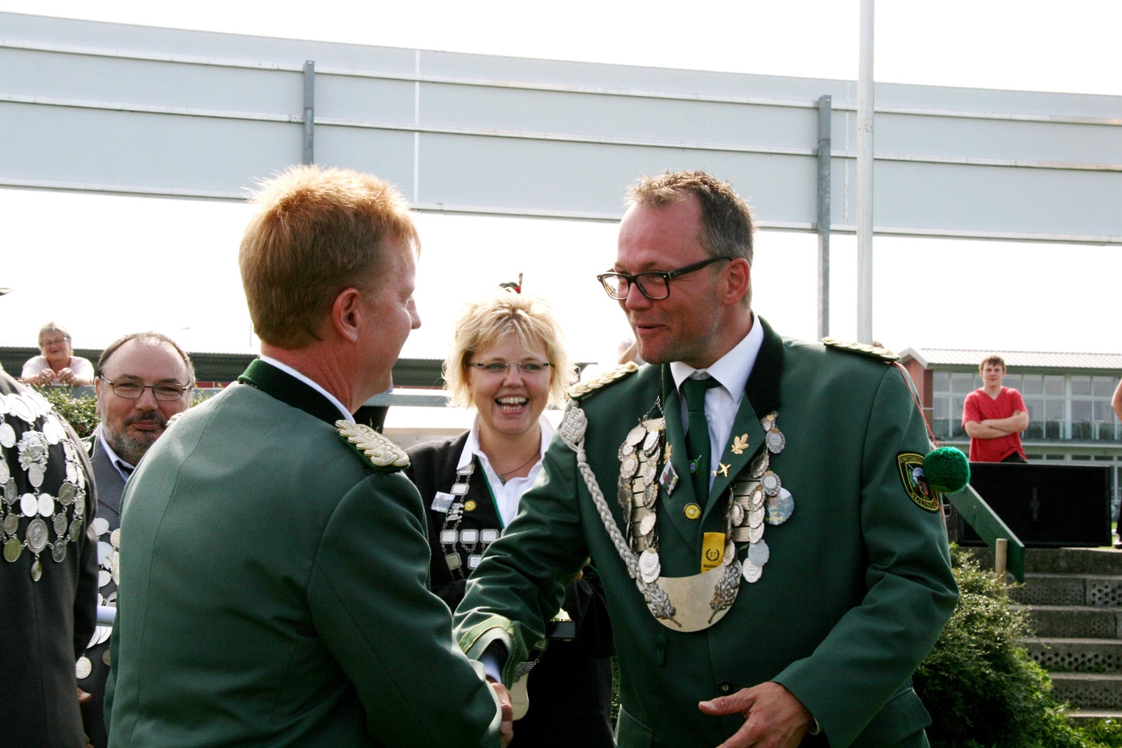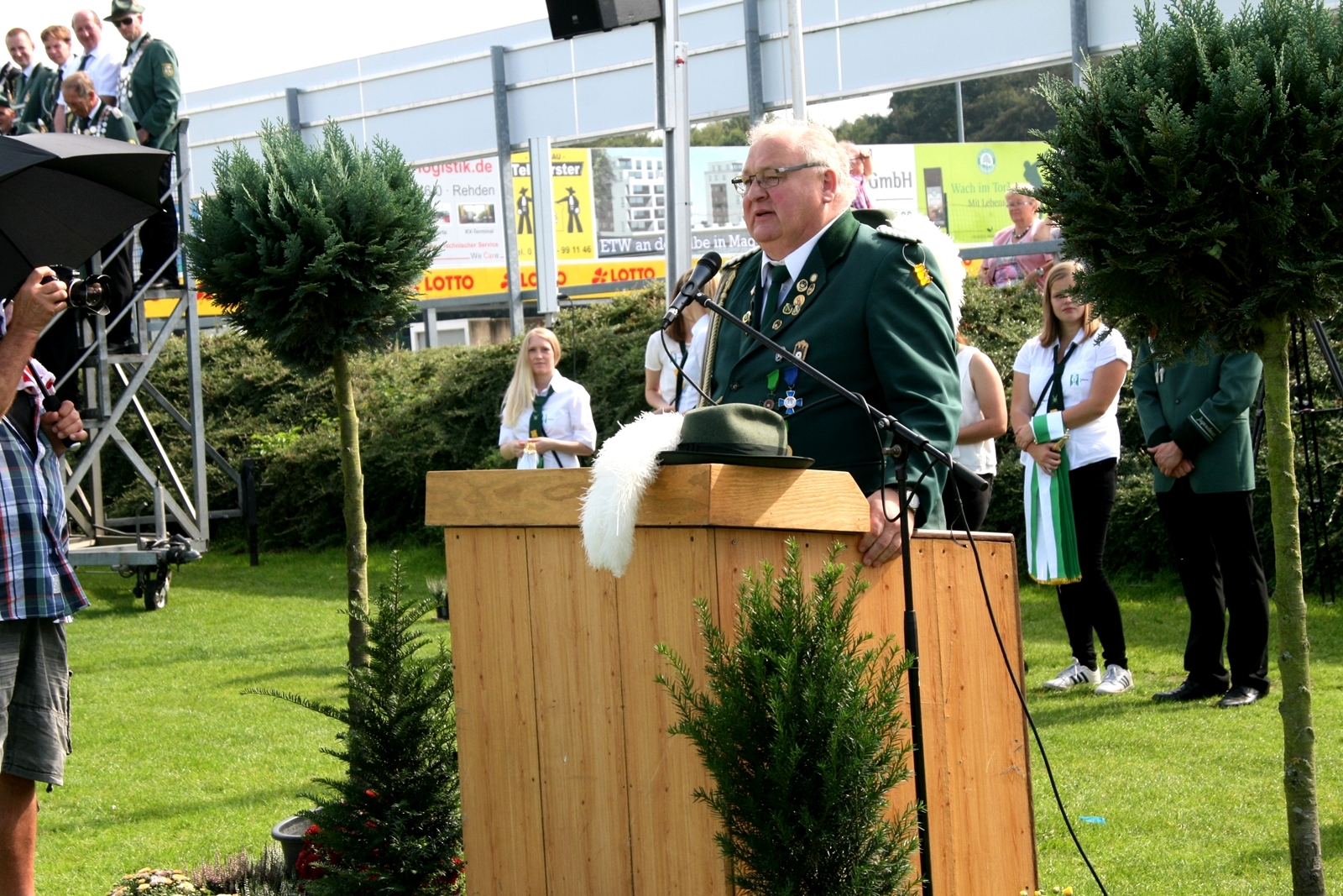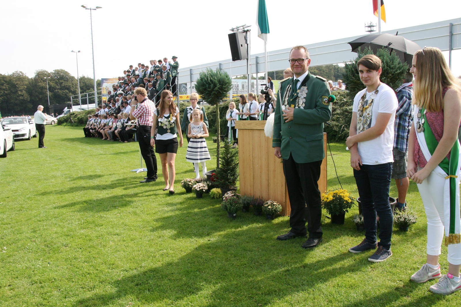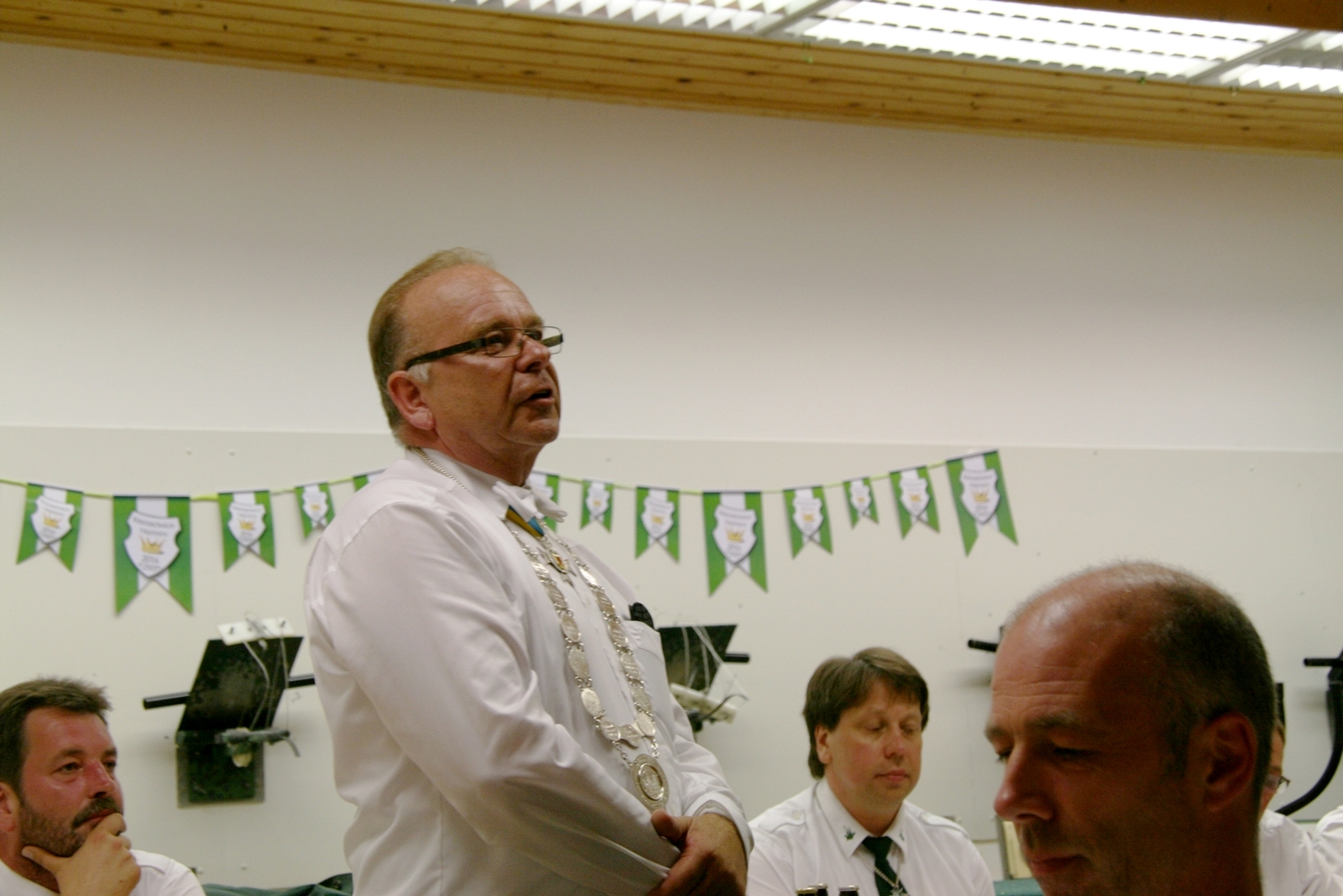 Präsident Thomas Nowak begrüßte alle recht herzlich und gab dann das Wort an 2. Kommandeur Wilhelm Kenneweg weiter, dieser rief dann alle Könige auf sich zur "Fototribüne" zu begeben...
