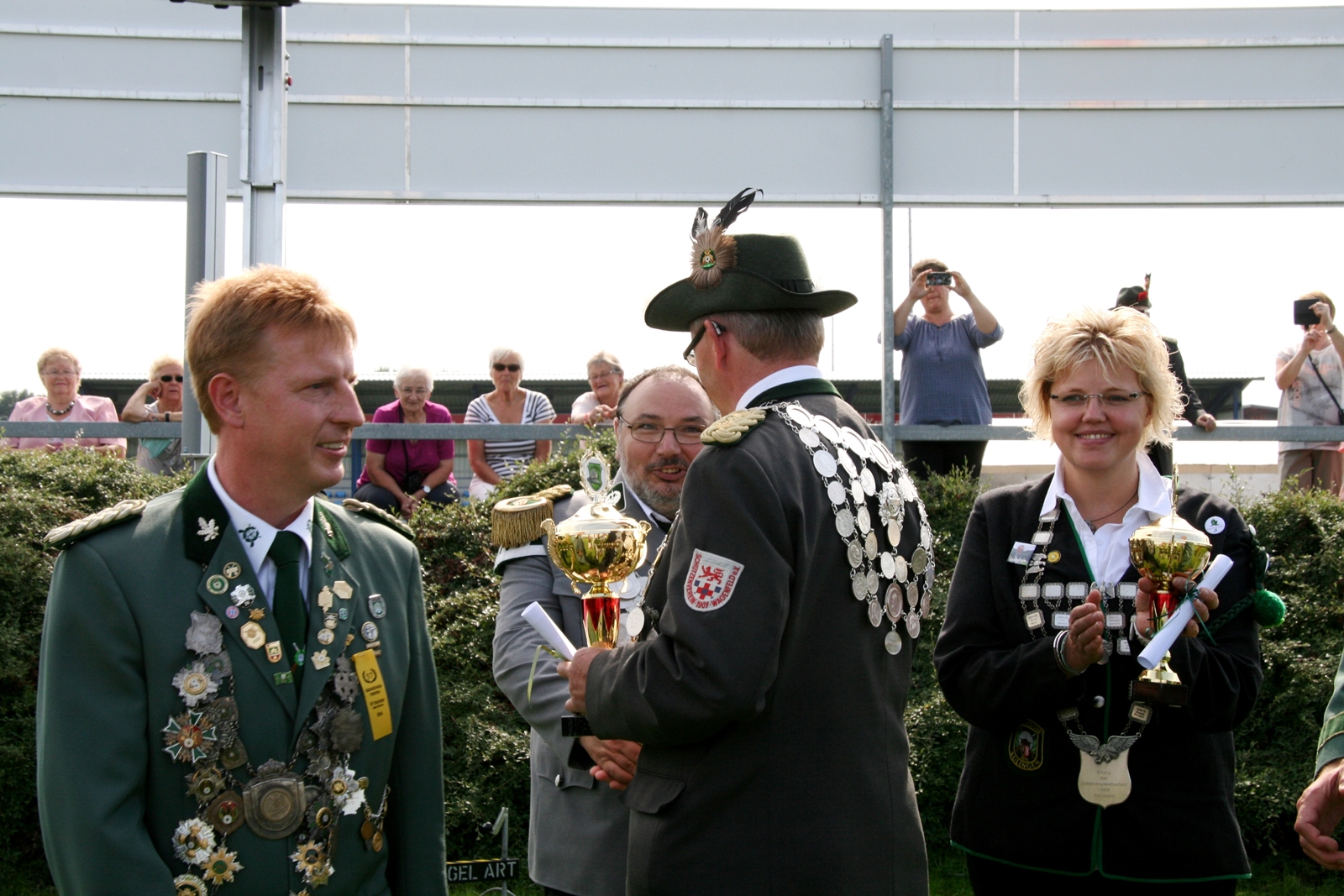 1. Schießwart Thomas Landhorst und 3. Schießwartin Doris Hülsmann des Vereins führten die Siegerehrung durch.