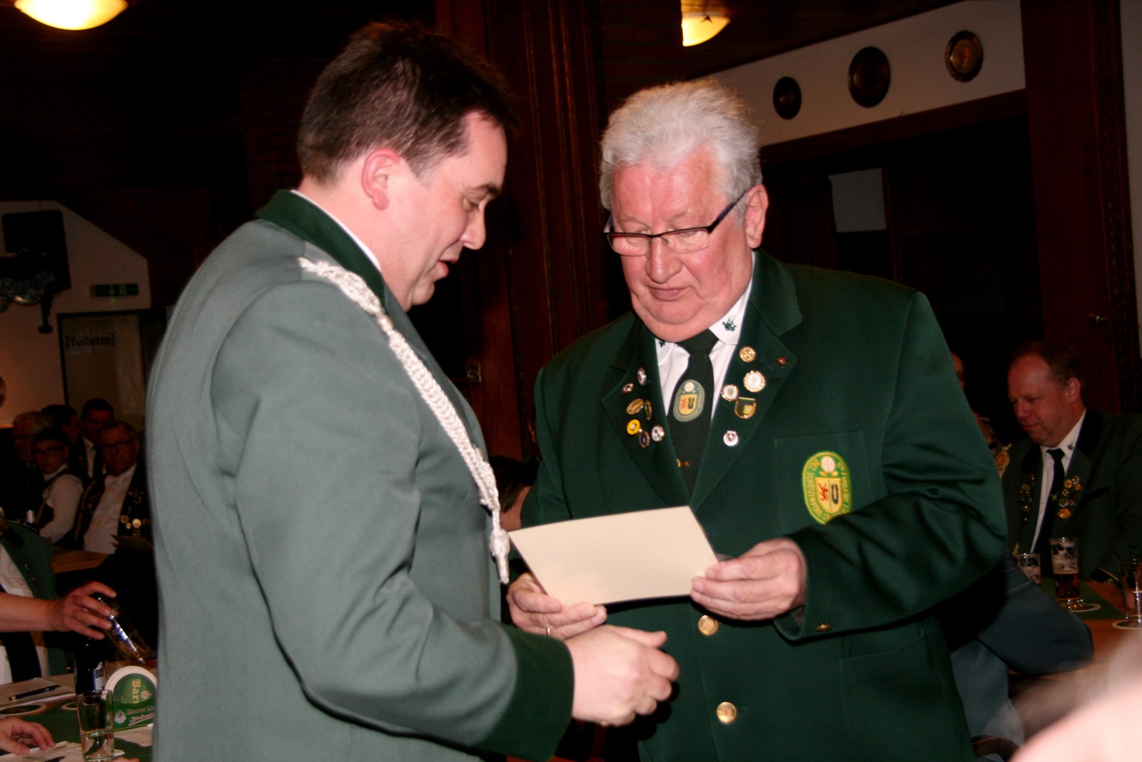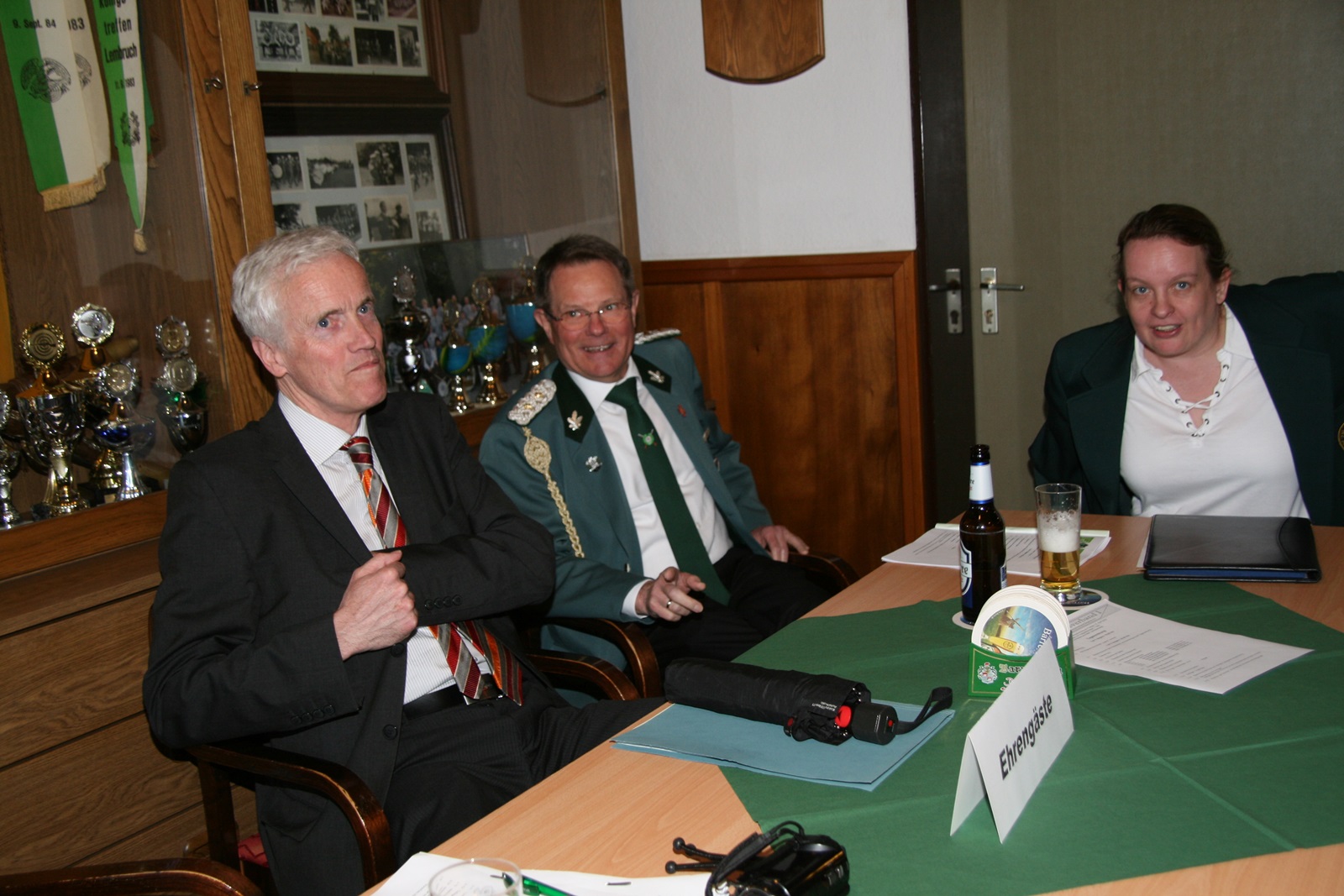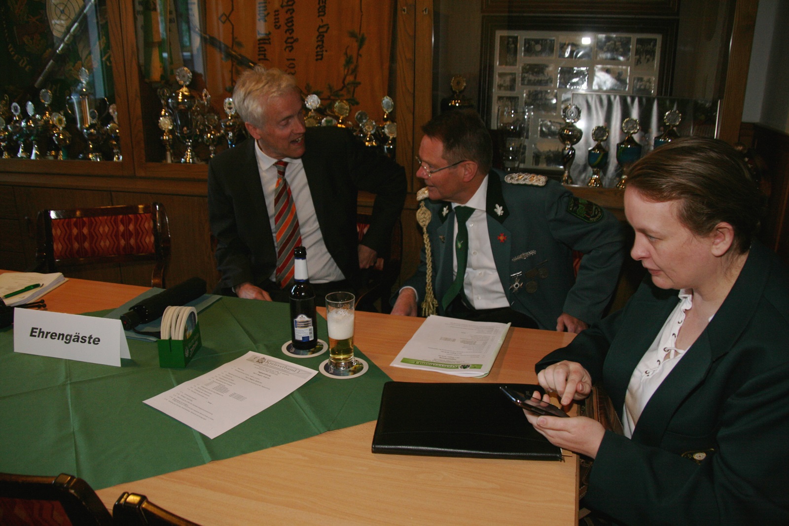 Friedrich Kelkenberg als Vizepräsident des Bezirks, übermittelte die herzlichsten Grüße des Bezirksvorstandes. Von den NWDSB-Schützentagen konnte er positiv berichten, dass es keine Beitragserhöhungen geben wird, dass dann wohl in Kürze auch mit der Fertigstellung der Kleinkaliberanlagen begonnen werden wird. Geklärt wird vorher noch, ob es nicht noch wieder neue Auflagen geben wird. Der Versammlung wünschte er einen guten Verlauf.