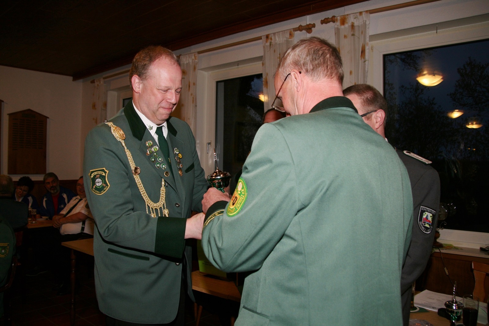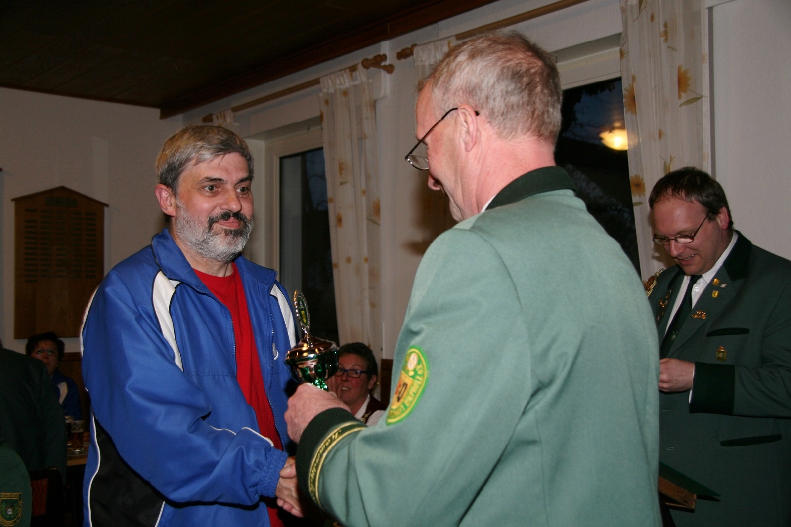 Das nach Winnenden und Erfurt verschärfte Waffengesetz war auch noch ein Thema. Die Sportschützen unserer Vereine müssten regelmäßig nachweisen wieviel sie üben, an welchen Wettkämpfen sie nach Sportordnung teilnehmen und damit begründen, ob sie ihre Sportwaffe noch benötigen. Er hoffe, dass diese Überprüfungen auch bei allen nichtorganisierten Schützenvereinen mit der gleichen Sorgfalt durchgeführt werden.