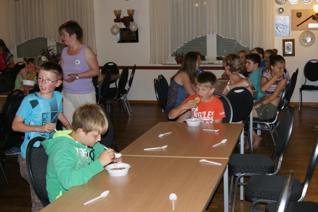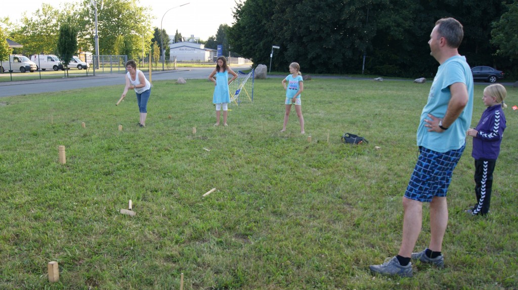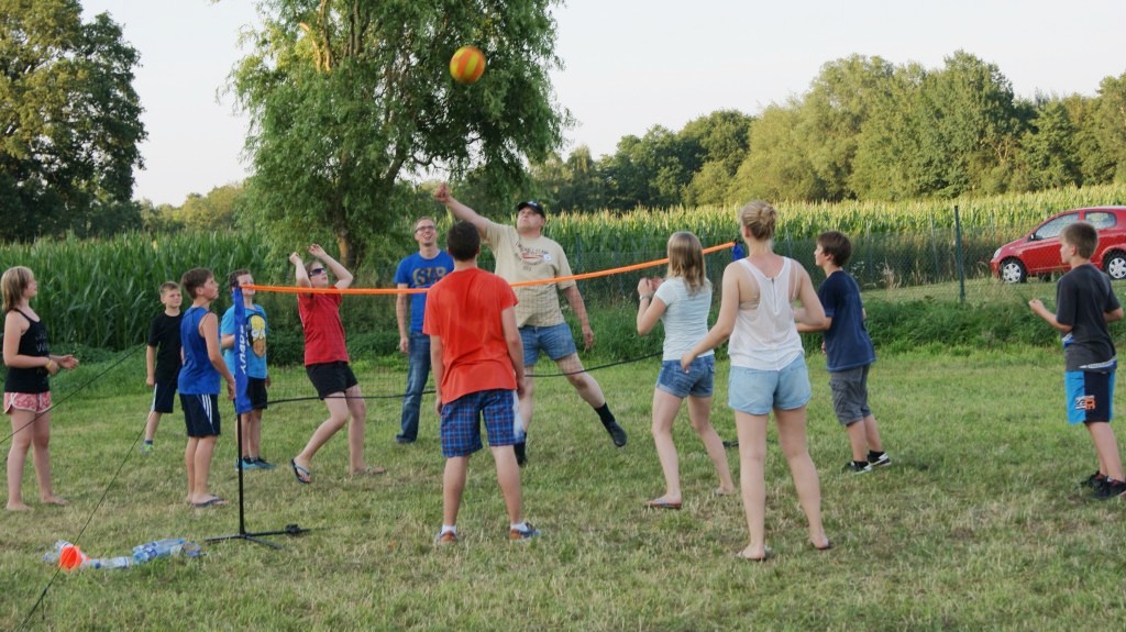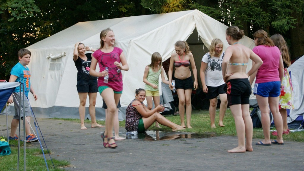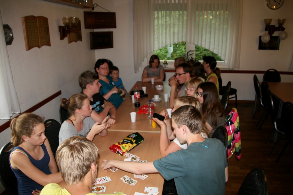 Der Nachtorientierungsmarsch stand um 21:30 Uhr auf dem Programm. 6 Gruppen, je 8 Kinder, ausgerüstet mit Karten und Taschenlampen, machten sich auf den Weg in Richtung Moorstraße und Baggersee. Unterwegs mussten Fragen beantwortet werden, unter anderen Spielen, fand auch ein "Flaschenkegeln" statt. Weit nach Mitternacht hatten alle 6 Gruppen ihre Aufgaben erfüllt. Die "Nachtruhe" trat zum Teil doch eher ein, als es sich die Kinder gedacht hatten, der heisse Tag mit fast 30° machte es möglich. Am Samstagmorgen um 7:30 Uhr war Wecken, und bis 9:00 Uhr hatten alle ausgiebig gefrühstückt. Der Staffellauf für alle, dauerte bis Mittag. Mittagessen und Mittagspause war dann bis 14.00 Uhr angesagt.Das Freibad war dann das "Highlight" des Tages, einige Kinder waren "Minigolfen". Nach dem Abendesssen (Grillen) von 18:00 bis 20:00 Uhr fand die Siegerehrung des Staffellaufes und der Nachtwanderung statt.