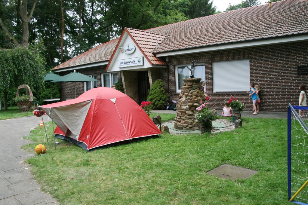 Am Freitag, den 18. Juli ab 15:00 Uhr war Anreise und Aufbau der Zelte. Vor der Schützenhalle des SV Diepholz von 1953 war der ideale Platz. 45 Kinder mit ihren Betreuern (Gesamt 70) suchten sich, wenn möglich, ein "schattiges" Plätzchen für ihr Zelt. Im vergangenem Jahr hatten sich 36 Kinder am Zeltlager und Jugendtag eingefunden, also eine deutliche Steigerung! Das hat wohl auch die "Mundpropaganda" der Kinder gemacht. Ca. 28 Zelte wurden in diesem Jahr aufgestellt, große und kleine Zelte, bunt durcheinander. Das größte Zelt hatte der SV Hemsloh, sozusagen ein "Großraumzelt". Das DRK hatte für diese Tage ihre Duschen zur Verfügung gestellt, in kleinen Gruppen wurde das Duschen in Anspruch genommen, Betreuer und Betreuerinnen begleiteten die Kinder. Ab 17:00 Uhr war die Eröffnung und die Mannschaften wurden eingeteilt. Bis zum Abendessen gegen 19:00 Uhr, gab es Sport und Spiel im " Angebot".