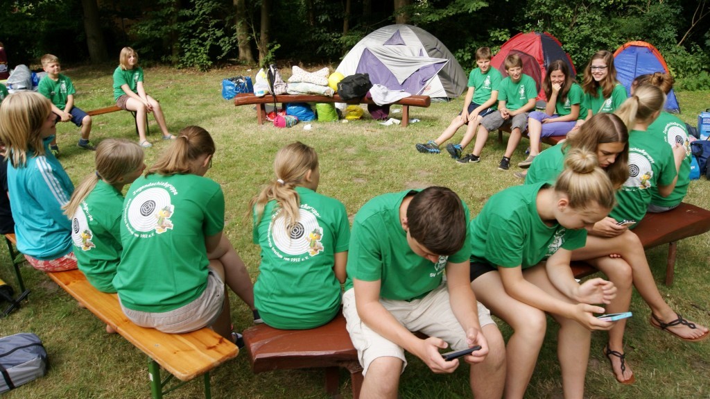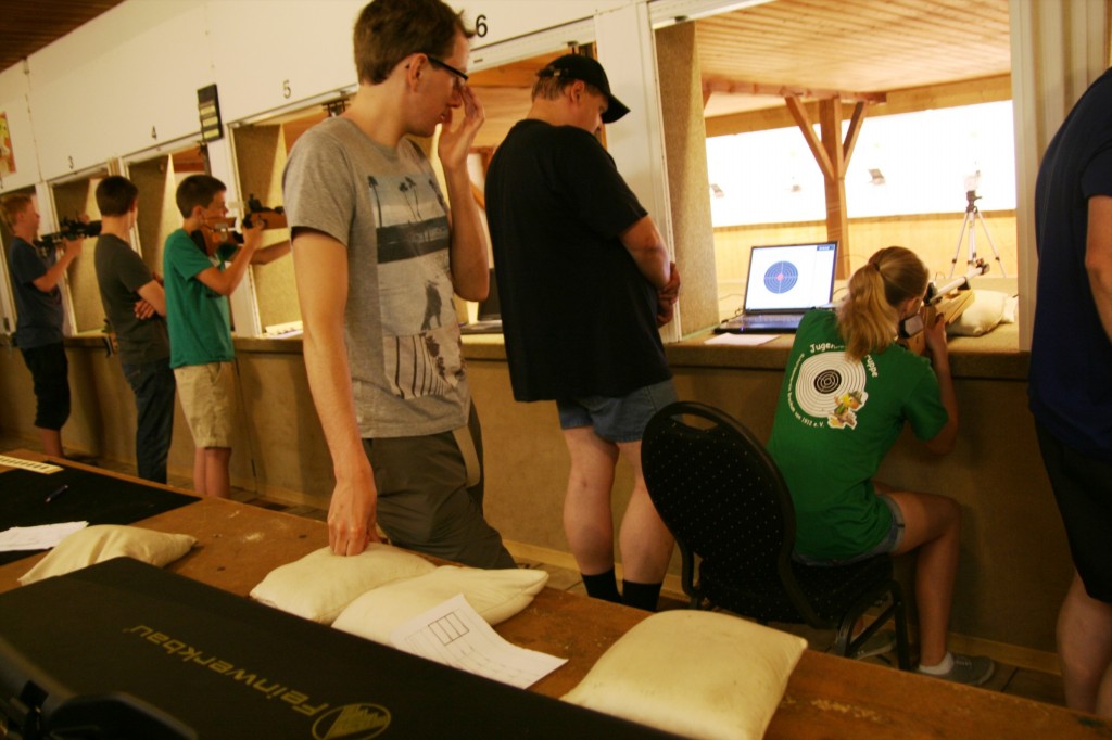Am Sonntagmorgen durften die Kinder eine halbe Stunde länger schlafen. Das Frühstück war bis 9:30 Uhr eingenommen. Dann begann der Tag der Jugend des Kreisverbandes. Nach dem vielfältigen Programm des Zeltlagers, wurde nun mit Lichtpunkt- und Luftgewehr aufgelegt um Pokale geschossen. Für die Mannschaft mit den meisten Jugendlichen Schützinnen und Schützen wurde eine Wander-Pokal mit Geldprämie für die Jugendarbeit ausgelobt. Der Wanderpokal für die Jugendbetreuer wurde wieder neu vergeben. Zum Pokalschießen am KV-Jugendtag kamen am Sonntagmorgen auch die Jugendlichen des SV Maifeier, sie wurden von der Sportleitung ebenfalls herzlich begrüsst. 50 Jugendliche kämpften insgesamt um die Pokale des Kreisverbandes.