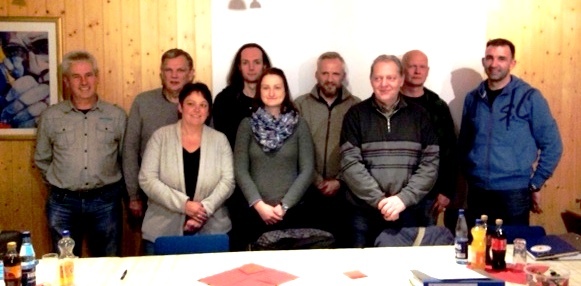 von links: Jörg Abeling-Schriftführer, Axel Heemann-2. Vorsitzender, Patrizia Abeling-Vorsitzende, Michael Tietze-stellv. Kassenwart, Nicole Franke-Kassenwart, Harald Rohe-Sport/Übungsleiter, Alfons Riesenbeck-Platz u. Gerätewart, Ingo Jüdes-stellv. Sport/Übungsleiter, David Molitor-Pressewart.