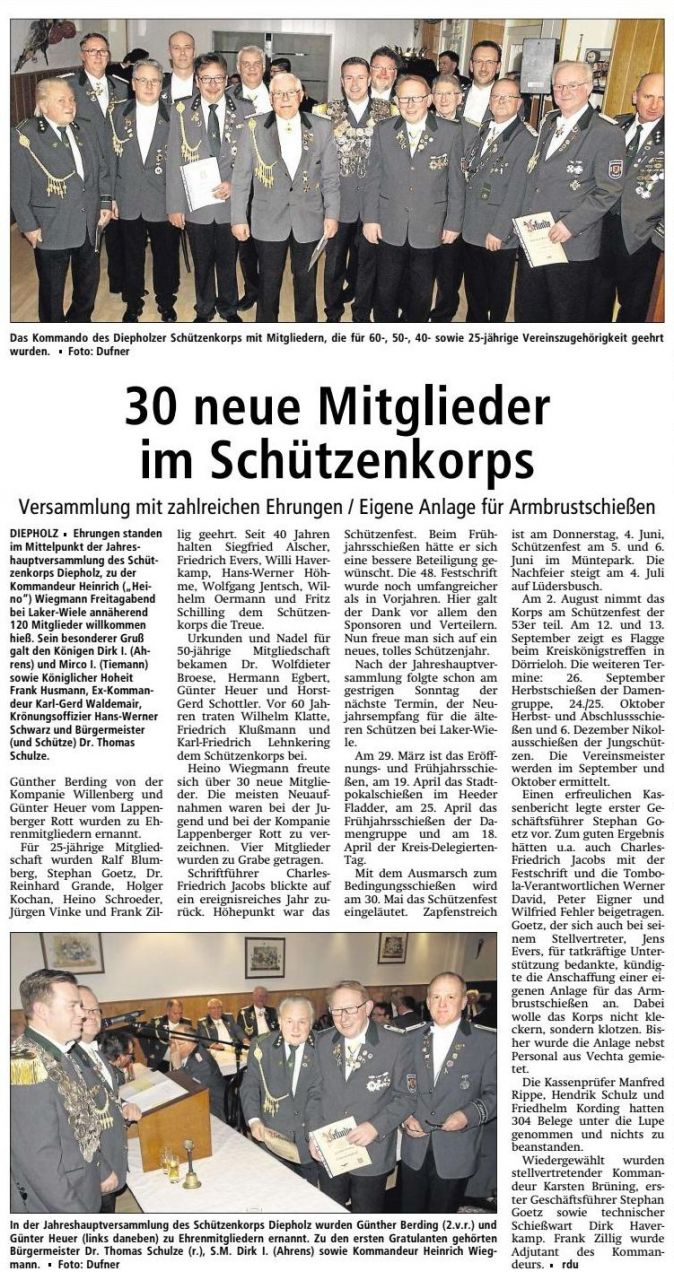 Bericht der KREISZEITUNG vom 19. Januar 2015