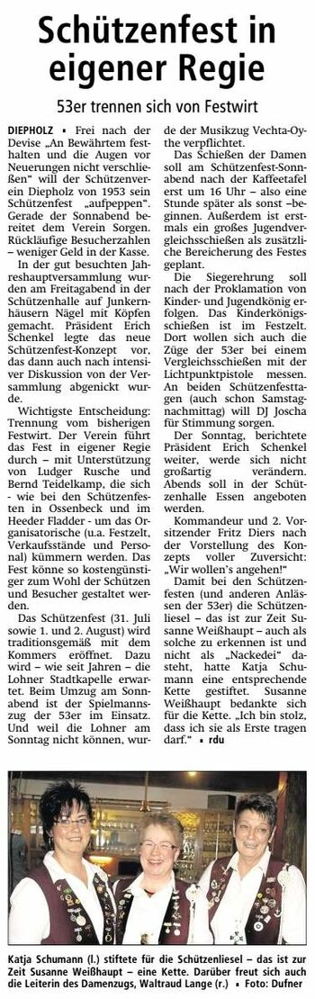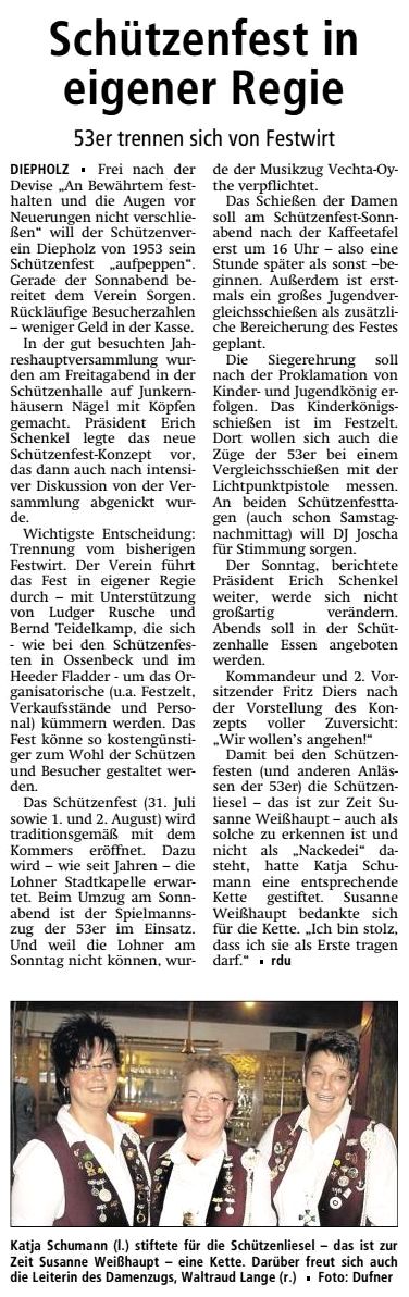 Bericht der KREISZEITUNG vom 09. Februar 2015