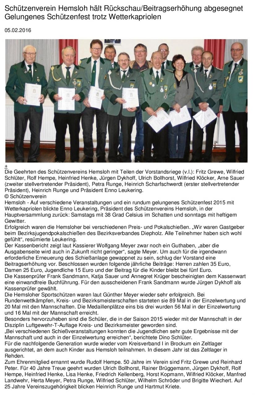 Bericht der KREISZEITUNG vom 05. Februar 2016