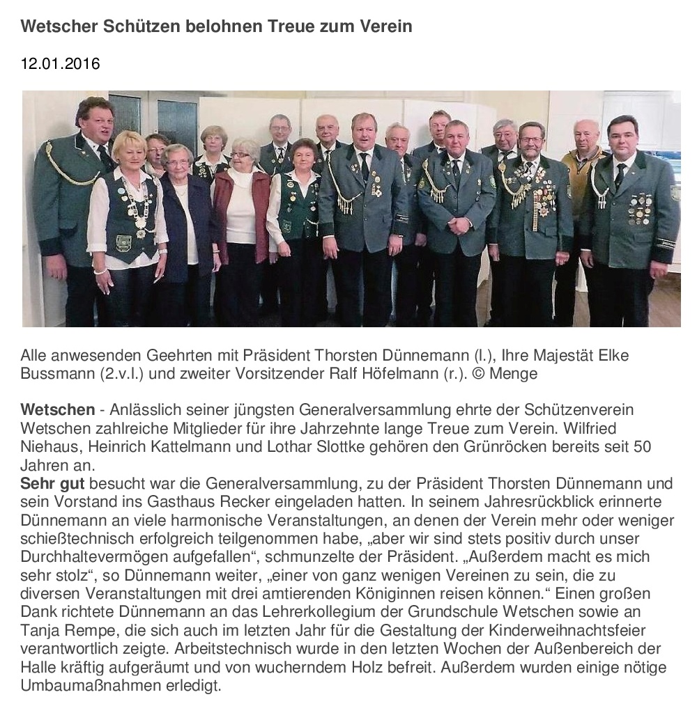 Bericht der KREISZEITUNG vom 12. Januar 2016