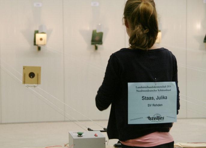 Ihre Familie und die mitgereisten „restlichen“ Fans aus den Vereinen Kirchdorf und Barenburg drückten ebenfalls kräftig die Daumen. Julika wurde von Tobias und Sascha unterstützt. Nach der Vorbereitungszeit mit Probeschüssen, begann der Wettkampf, in dieser Zeit mussten die 20 Wertungsschüsse abgegeben werden. Julika steigerte sich von der ersten Serie von 74 auf beachtliche 81, das war schon Spitze!