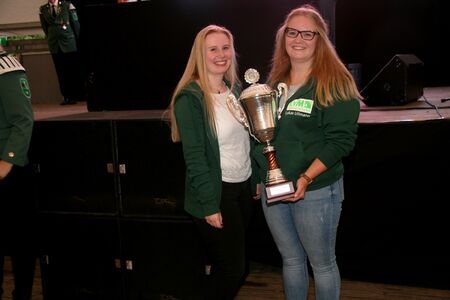 Der Sparkassenwanderpokal "geht" für ein Jahr zum SV Gaue: Sabrina u. Marisa Siemers nahmen ihn gemeinsam entgegen.