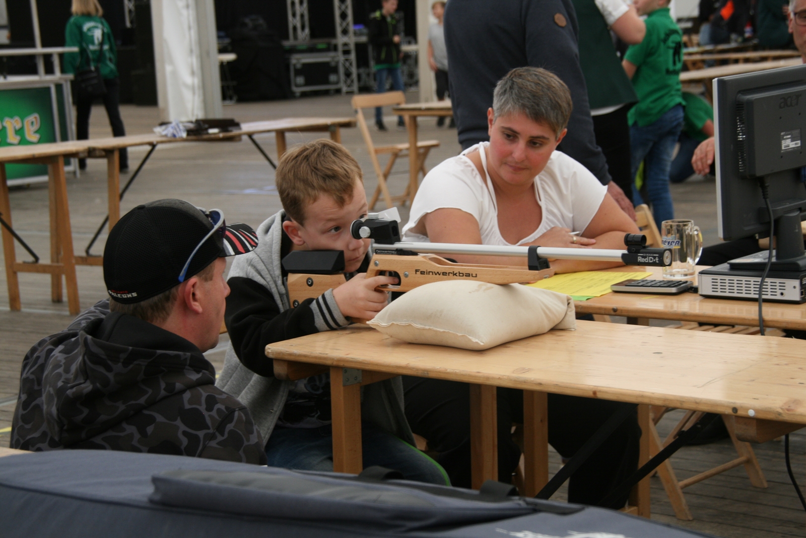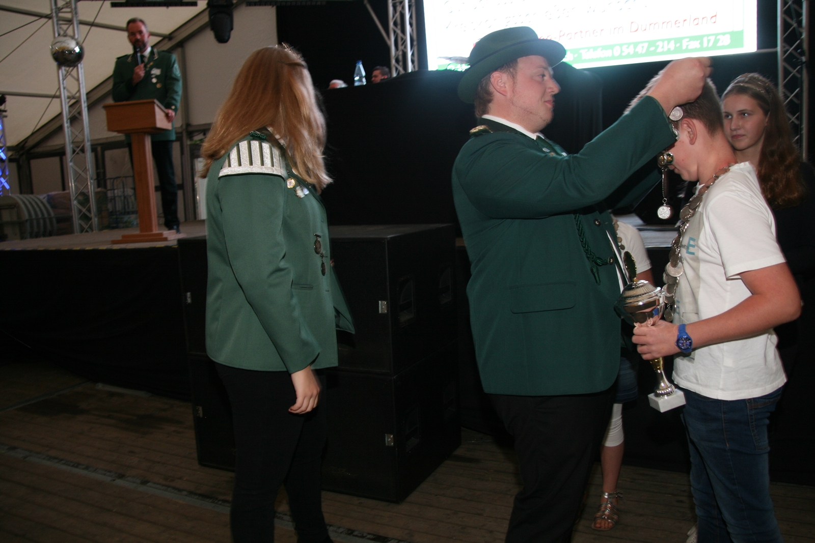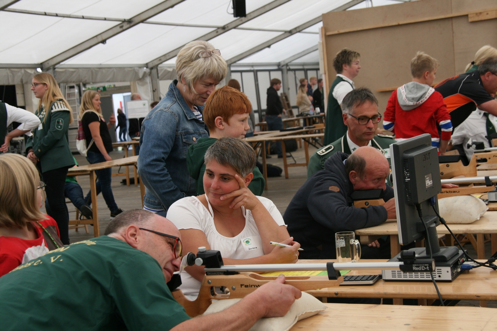 Um Kreiskinderkönig 2018 zu werden, gaben 30 Kindermajestäten mit dem Lichtpunktgewehr ihr Bestes. Nach einem spannenden Stechen zwischen Luisa-Marie Stamme vom Schützenverein (SV) Siedenburg und Jan-Malte Stein vom SV Brockum, errang Jan-Malte mit 40 Ring und einem Teiler von 12 den Kreiskinderkönigstitel. Bei der Jugend errang Kim-Tia Meyer vom SV Borstel den Kreisjugendkönigstitel mit voller Ringzahl 40 und einem Teiler 24, sie erhielt die Jugendkönigskette vom Vorjahressieger Philipp Bottenbruch vom SV Brake. 29 Jugendmajestäten hatten um den Titel gekämpft.