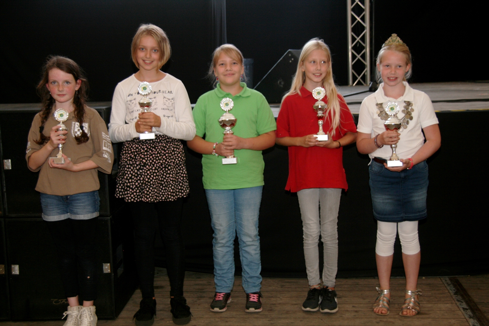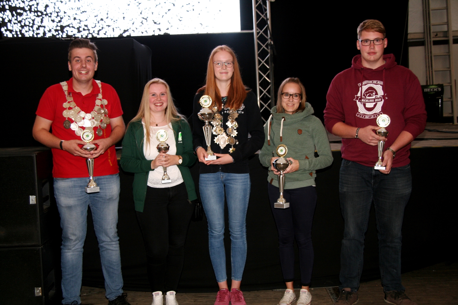 Kreisjugendkönigin Kim-Tia Meyer SV Borstel (in der Mitte), 2. Nadine Wortmann SV Groß Lessen, 3. Tobias Bollhorst SV Rehden, 4. Sabrina Siemers SV Gaue, 5. Hauke Sundmacher SV Anstedt.