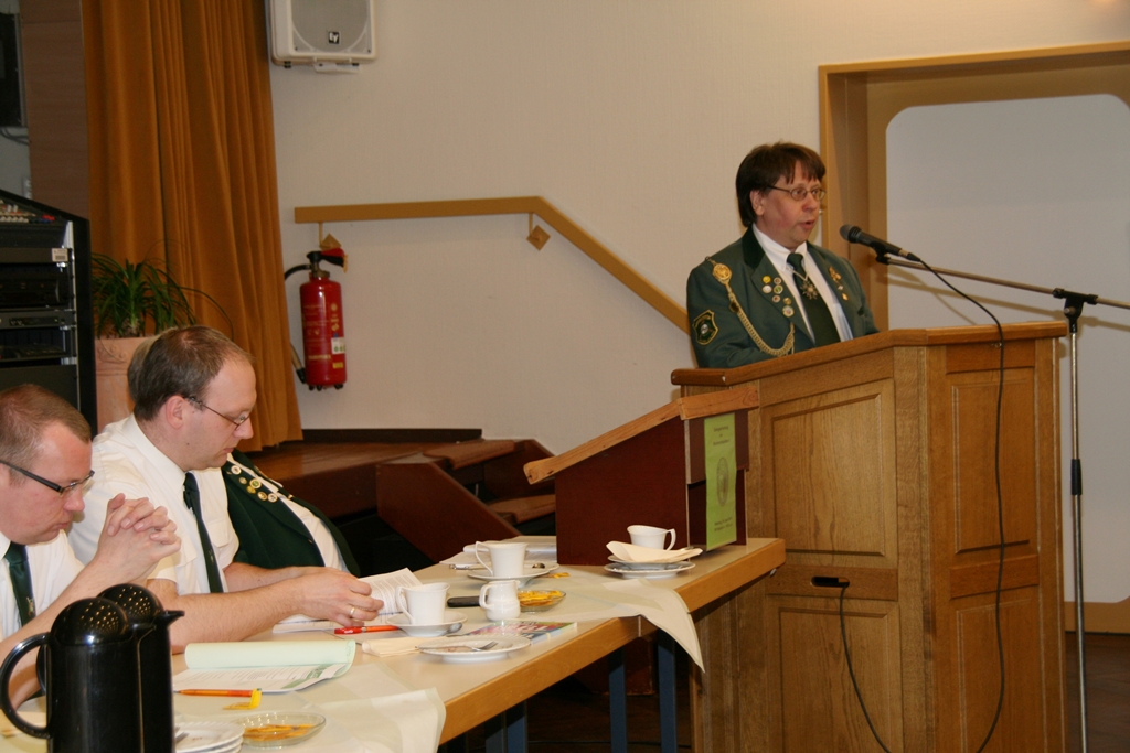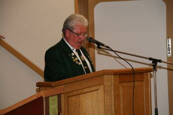 Besonders begrüßte er alle Schützenschwestern und Schützenbrüder sowie anwesenden Majestäten. Ein weiterer Willkommensgruß galt den Gästen, unter ihnen Hans-Werner Schwarz, Stellvertretender Bürgermeister der Stadt Diepholz, vom gastgebenden Schützenverein Diepholz von 1953, Erich Schenkel, Bezirksgeschäftsführer Thomas Nowak in Vertretung von Präsident Karl-Friedrich Scharrelmann sowie Bezirksschatzmeister Detlef Imsande, Reinhold Dufner vom Diepholzer Kreisblatt und Marianne Vallan als Bezirks-Pressewartin.