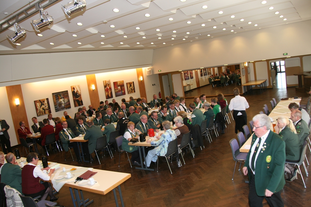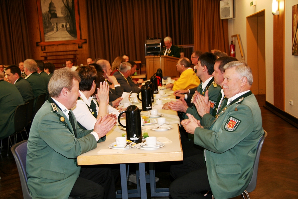 Zur Totenehrung erhoben sich alle von ihren Plätzen, Friedel Kelkenberg erinnerte: „Wir gedenken in Stille und Ehrfurcht der im letzten Jahr verstorbenen Schützenschwestern und Schützenbrüder aus den Vereinen des KV I. Alle von uns Gegangenen haben schmerzliche Lücken hinterlassen, wir werden aller Verstorbenen immer ehrenvoll Gedenken".