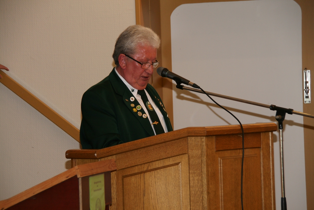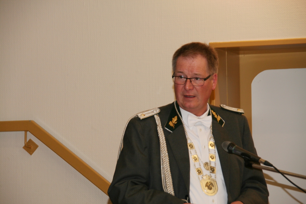 Präsident Erich Schenkel hielt sein Grußwort kurz und knapp: „Liebe Majestäten, liebes Präsidium, Bürgermeister, liebe Schützenschwestern und Schützenbrüder, im Namen des SV Diepholz von 1953 heiße ich euch hier herzlich willkommen und wünsche der Versammlung einen guten Verlauf“.