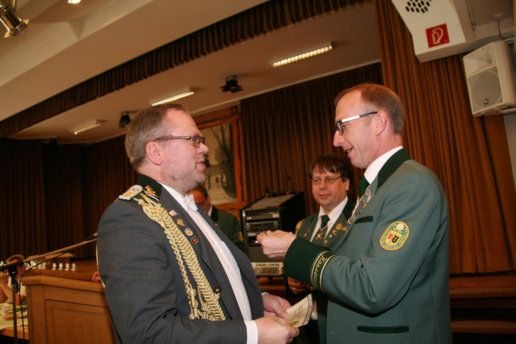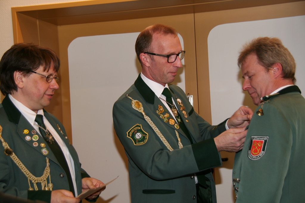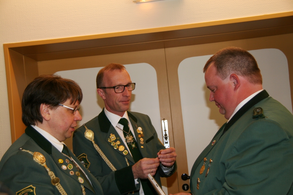 Thomas Nowak und Detlef Imsande nahmen als Bezirksvertreter die Ehrung der beim Bezirksdelegiertentag nicht anwesenden Schützinnen und Schützen vor.