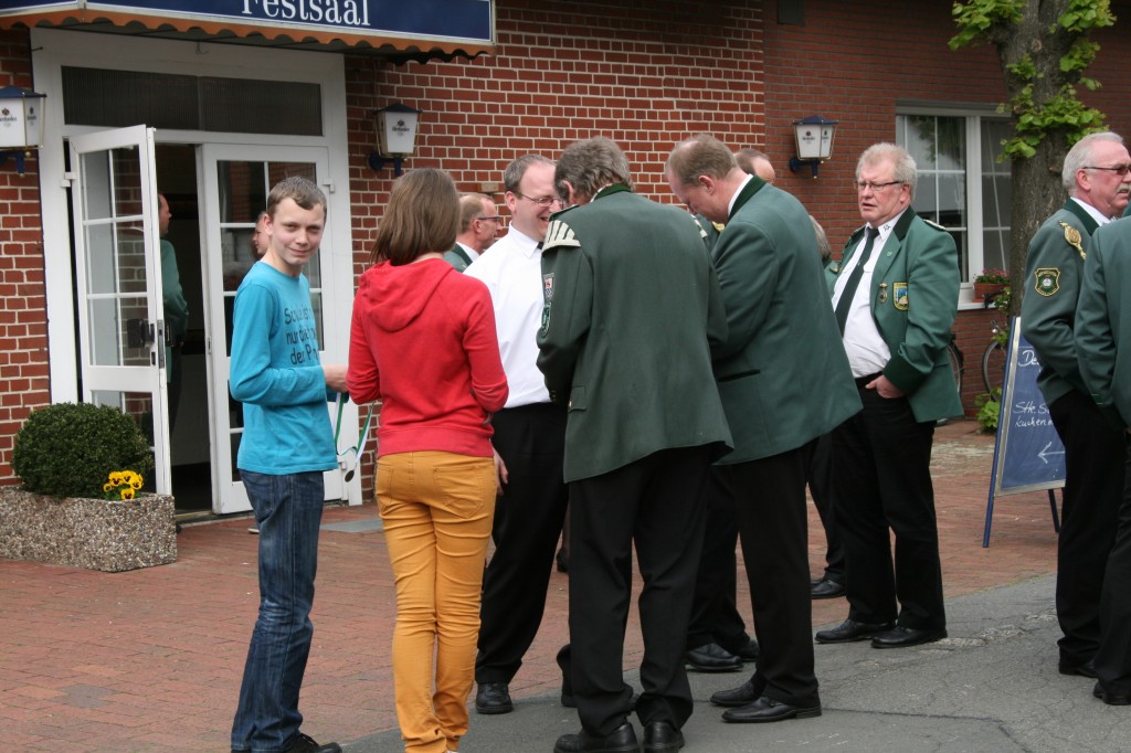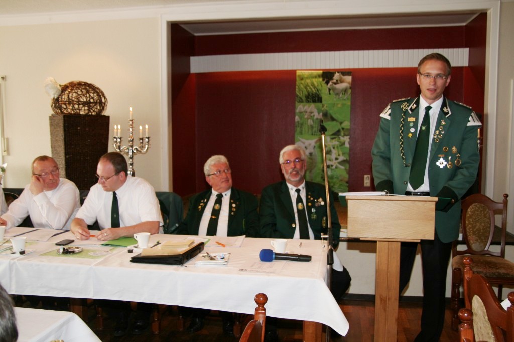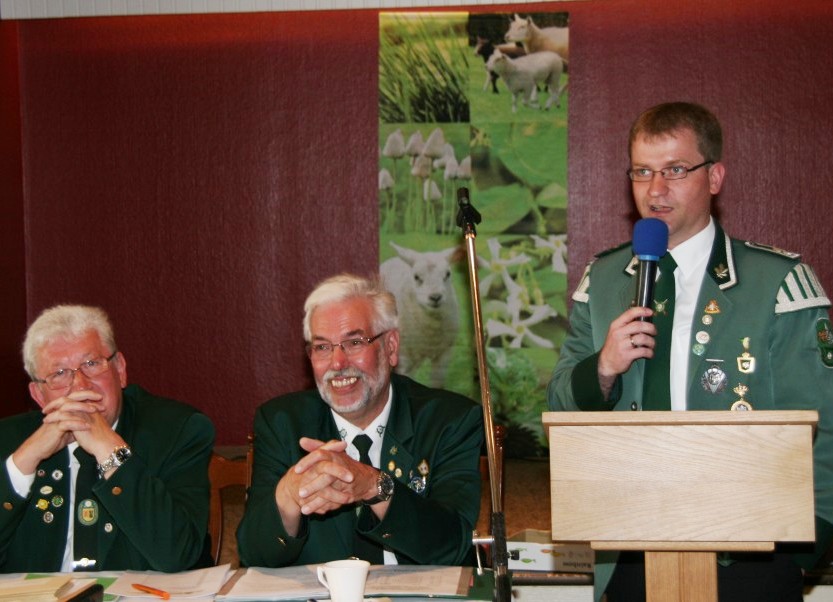 Bürgermeister Marco Lampe hob hervor, das die gelebte Tradition des Schützenwesens auch hier ein wichtiger Bestandteil der Dorfgemeinschaft ist, und ein wichtiger Baustein für die Zukunft in der Gemeinde Brockum. Sein Wunsch an die Versammlung: Einen guten Verlauf, weise Beschlüsse und noch ein paar schöne Stunden hier in Brockum.
