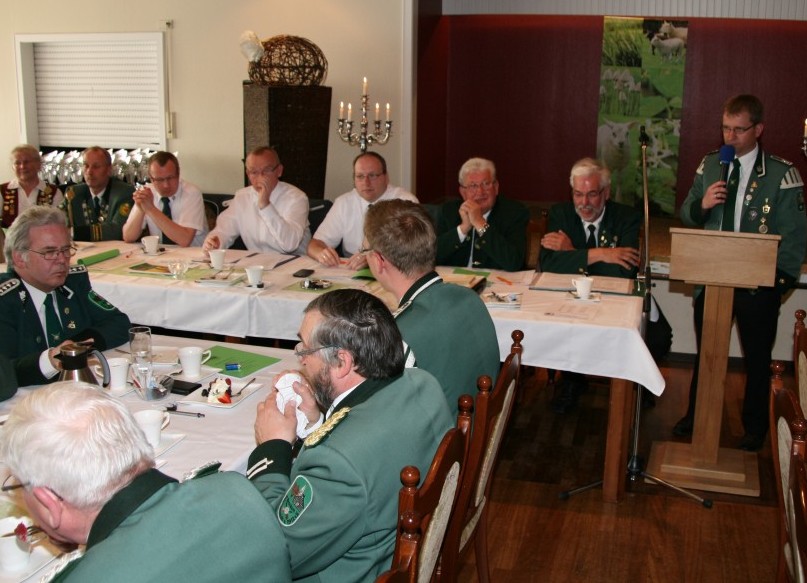 Sebastian Lampe, Präsident vom gastgebenden Verein Brockum, hielt sich an den Spruch: "In der Kürze liegt die Würze". Er freute sich, dass sich die Schützinnen und Schützen des Kreisverbandes I sich hier in Brockum zur Delegiertentagung eingefunden haben. Er wünschte der Versammlung einen harmonischen Verlauf und noch ein paar schöne interessante Stunden hier in Brockum.