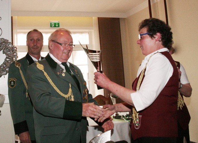 In seinem Rechenschaftsbericht ging Präsident Manfred Rüffer auf die 16 Termine ein, an denen er und seine Vorstandsmitglieder teilgenommen hatten. Unter anderen waren es die Planungen für das Zeltlager im August und das Jugendpokalschießen, an dem auch die Vereine Brockum und Maifeier St. Hülfe-Heede teilnahmen. Da war die außerordentliche NWDSB-Delegiertentagung in Neubruchhausen, welche den Beschluss zum für 3 Jahre vorgezogenen Zusatzbeitrag von 1,50 € brachte. Die Vergleichsschießen der Damen und Kreisvorstände, mit dem „erringen“ der „Roten Laterne“. Die Sportlerehrungen in Aurich für Marcel Trachsel vom Bogensport Diepholz, Andra Seliger, Jacqueline Schnoor und Jana Peper vom SV Wetschen, für die hervorragenden Ergebnisse mit der Sportpistole bei den Deutschen Meisterschaften. Er bedankte sich dafür bei den Trainern und Betreuern in den Vereinen für die gute Jugendarbeit. Herzlichen Glückwunsch allen Sportlern! Sein Dank galt auch den vielen anderen aktiven Sportschützen für die Teilnahme an Kreis-, Bezirksmeisterschaften, sowie den Rundenwettkämpfen. Zusammenhalt, Fröhlichkeit und Humor sind aber auch für ein attraktives Vereinsleben notwendig, hierfür sind mit die vielen Traditionsschützen zuständig, auch bei ihnen bedankte er sich für die Unterstützung.