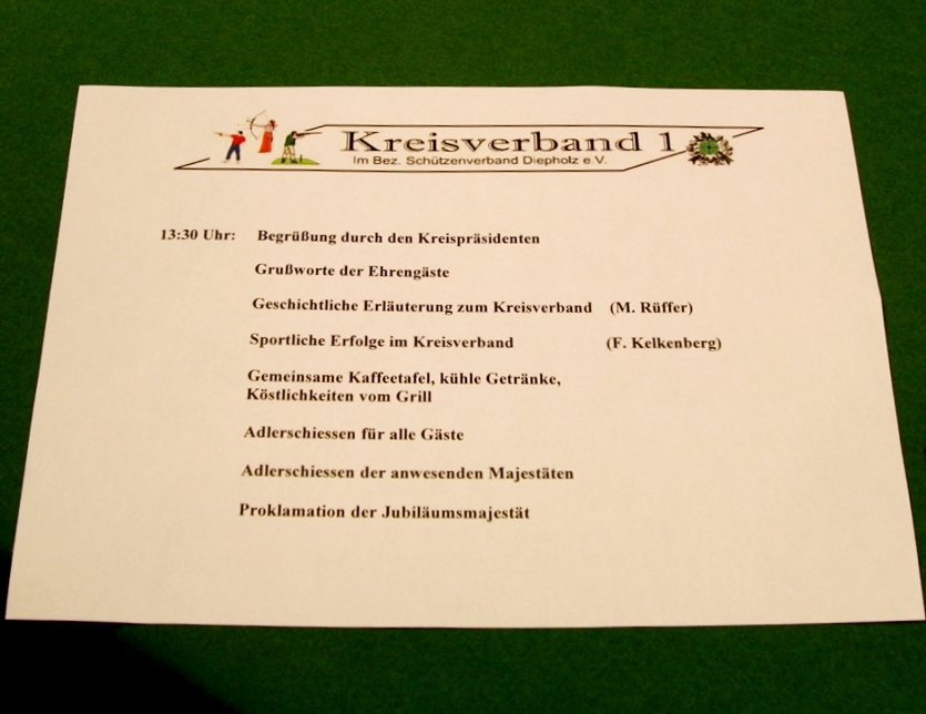 Dieser 50. Geburtstag des Kreisverband I im Bezirks-Schützenverband Diepholz wurde nun mit Abordnungen der Schützenvereine Brockum, Diepholz von 1953, Hagewede-Marl, Hemsloh, Lemförde, Ossenbeck, Wetschen und Rehden beim Schützenkorps Diepholz auf Lüdersbusch gebührend gefeiert.