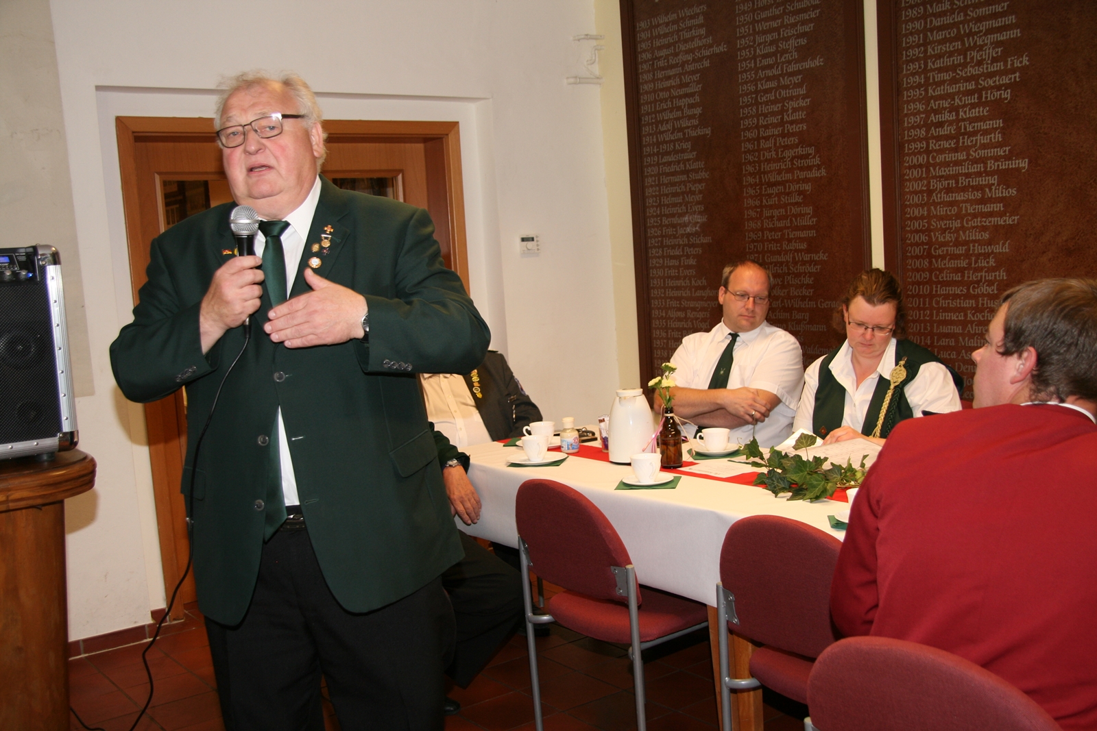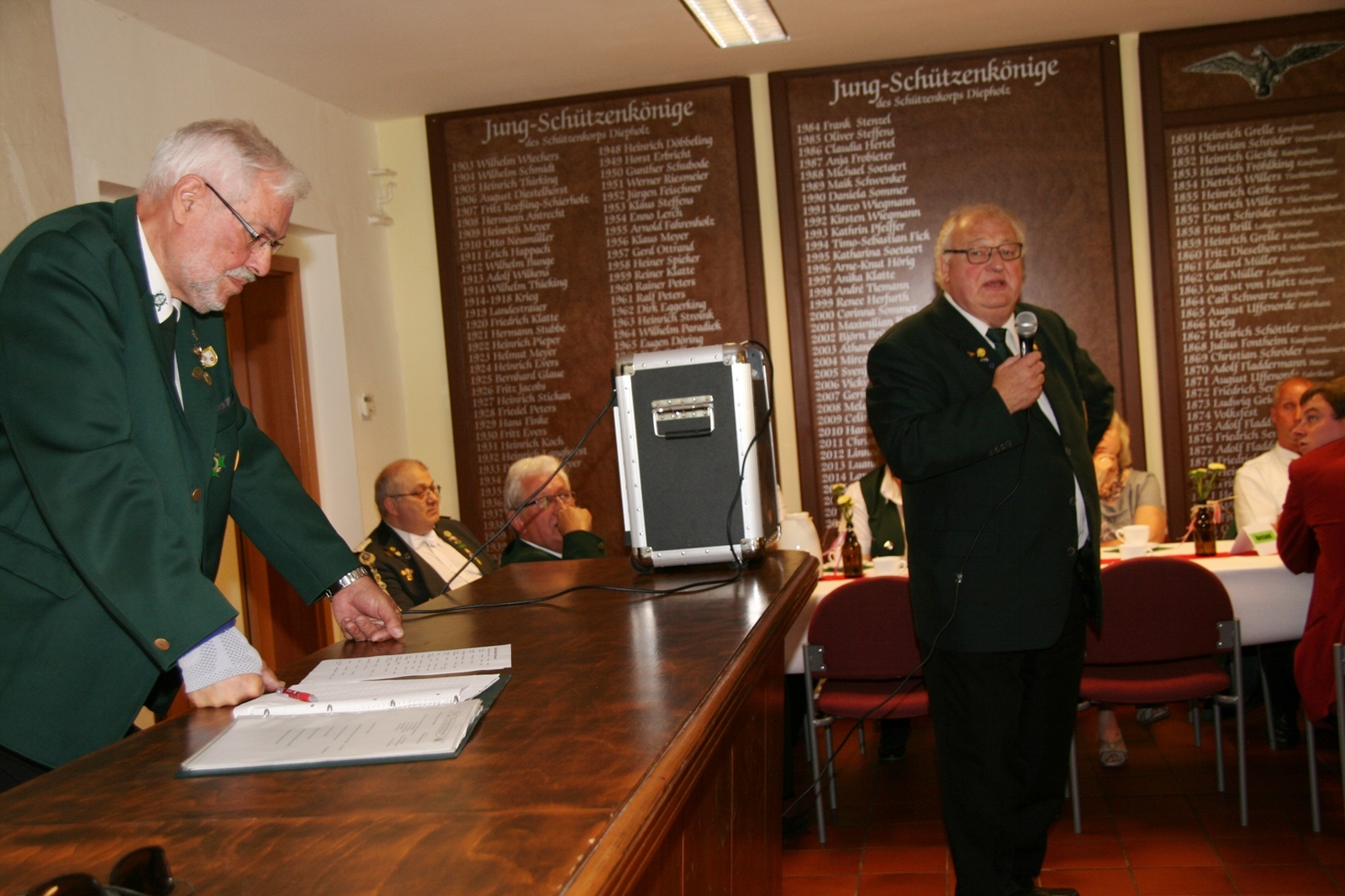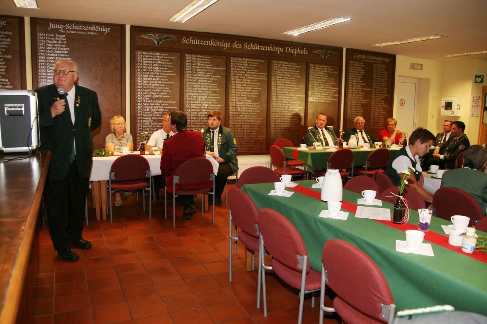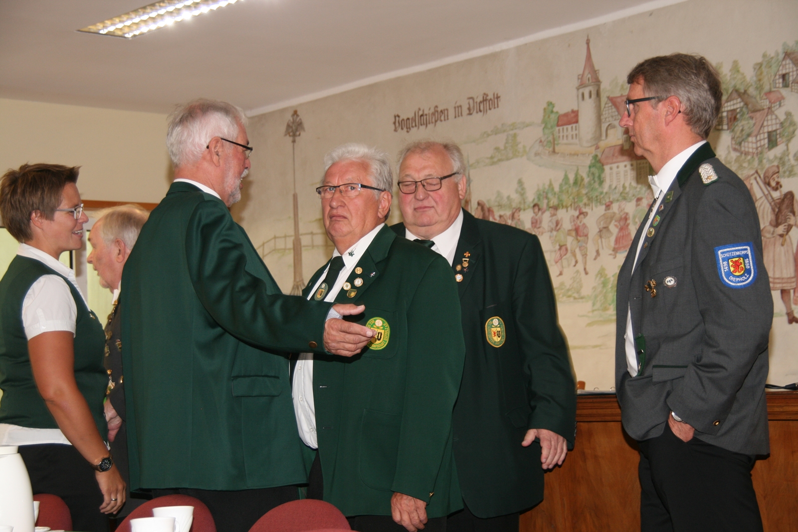 Nach einer kurzen Begrüßung der Ehrengäste Karsten Brüning SK Diepholz, Bürgermeister Florian Marre‘, Landtagsabgeordneter Marcel Scharrelmann, Bezirkspräsident Karl-Friedrich Scharrelman, Bezirksvizepräsident Günter Herzig und KV III-Vizepräsident Hartmut Osterloh durch Kreisverbandspräsident Manfred Rüffer, überbrachten Karsten Brüning Kommandeur des SK Diepholz, der Bürgermeister der Stadt Diepholz Florian Marre`, Landtagsabgeordneter Marcel Scharrelmann und Bezirkspräsident Karl-Friedrich Scharrelmann ihre Grußworte mit den besten Wünschen für die Zukunft.