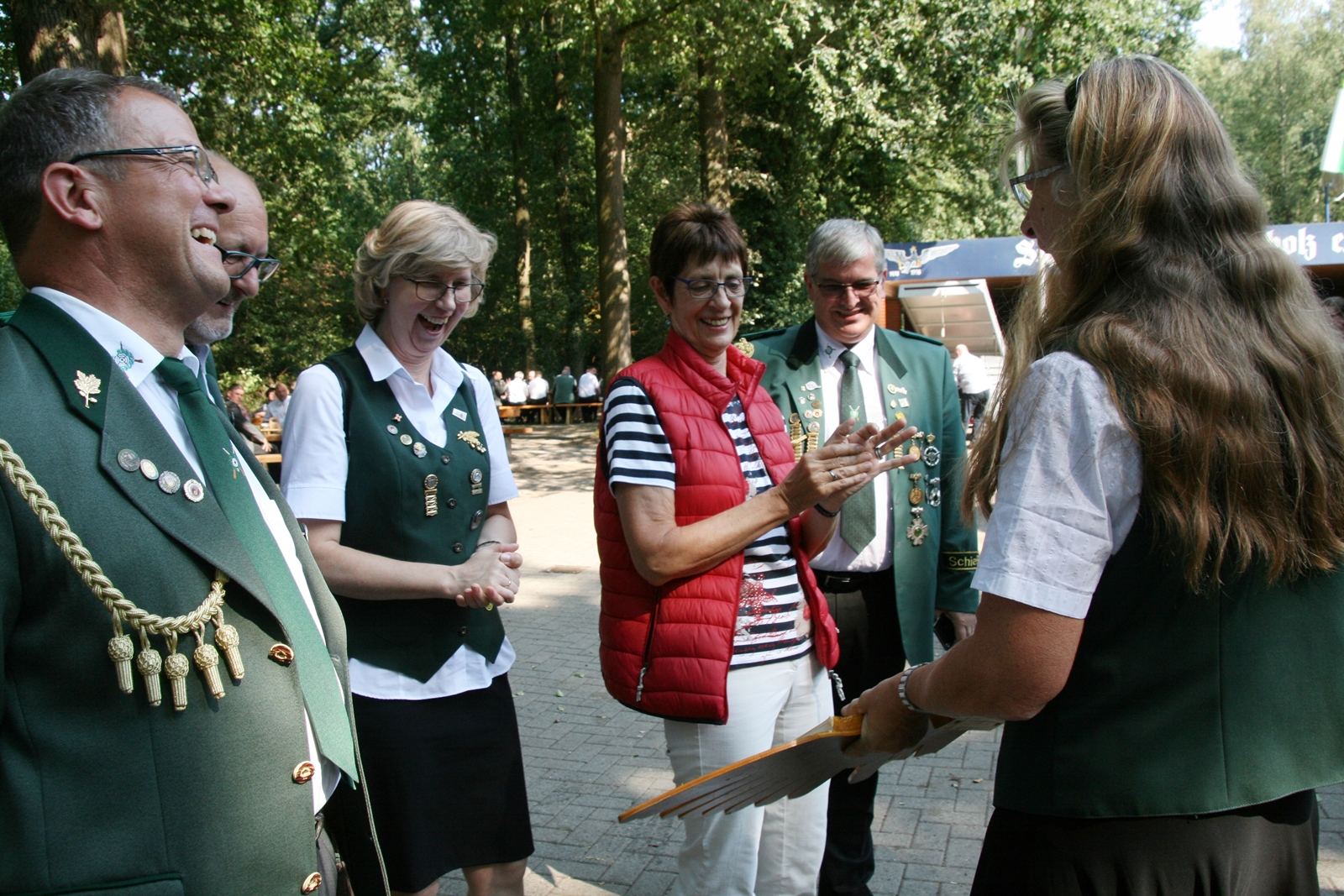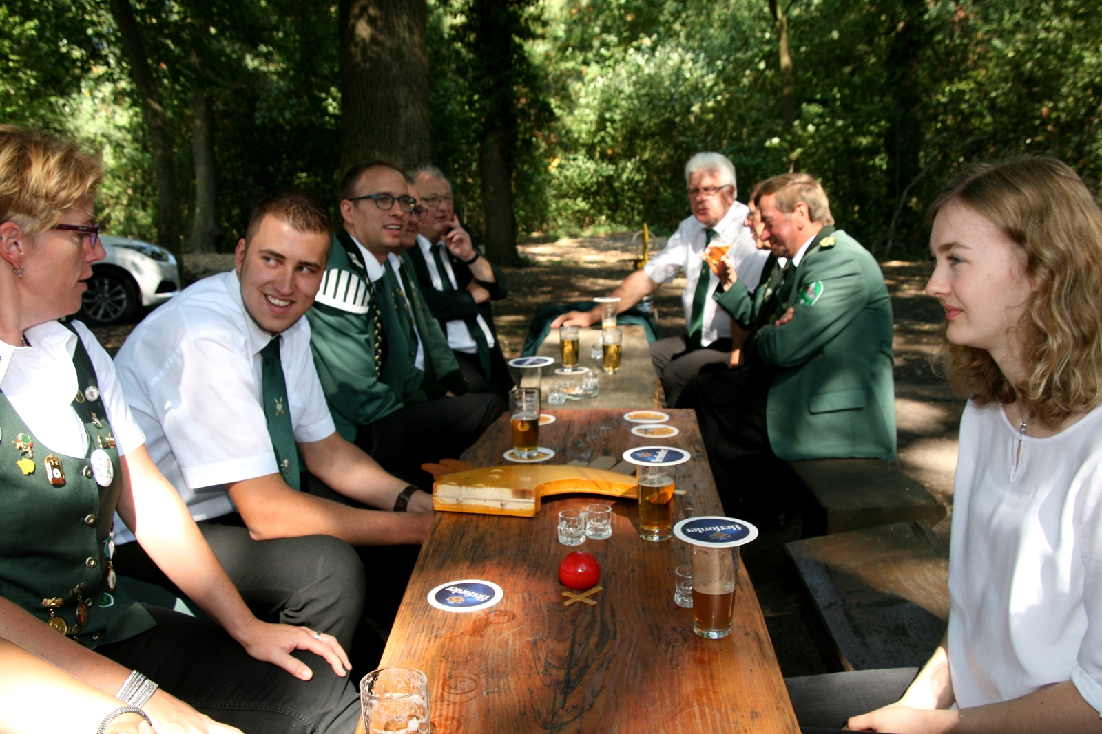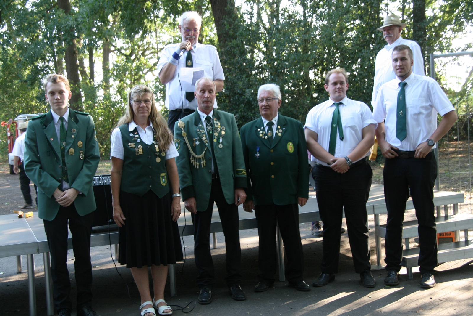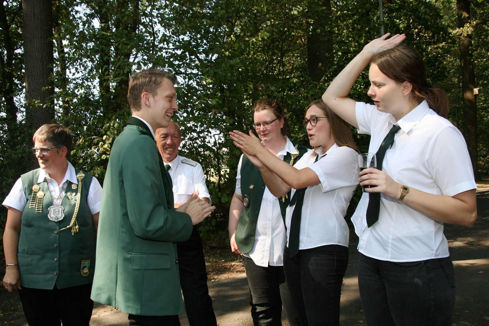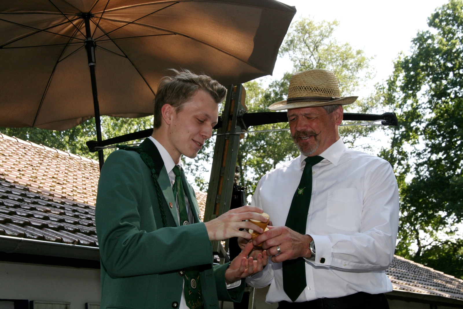 Nach der Kaffeetafel begann das "Adlerschießen". Mit viel Spaß auch bei den Zuschauern und auch "etwas" Ergeiz bei den jeweiligen Schützen, denn erst mal war das "Fussvolk" dabei - ging es ja vorweg für sie um "Zepter" (Friedel Kelkenberg), "Stoß" (Klaus Bollhorst), "Apfel" (Sven Mohrmann), "Flügel rechts (Iris Evers) und links" (Jonas Sudmann) und "Krone" (Tom Tatgenhorst).