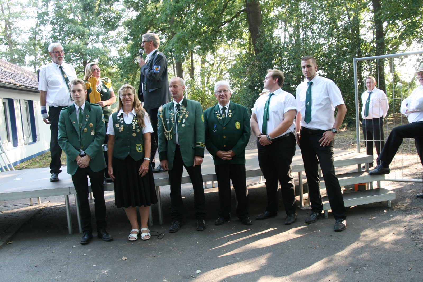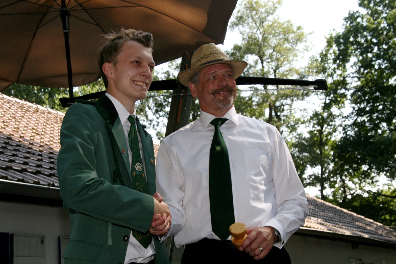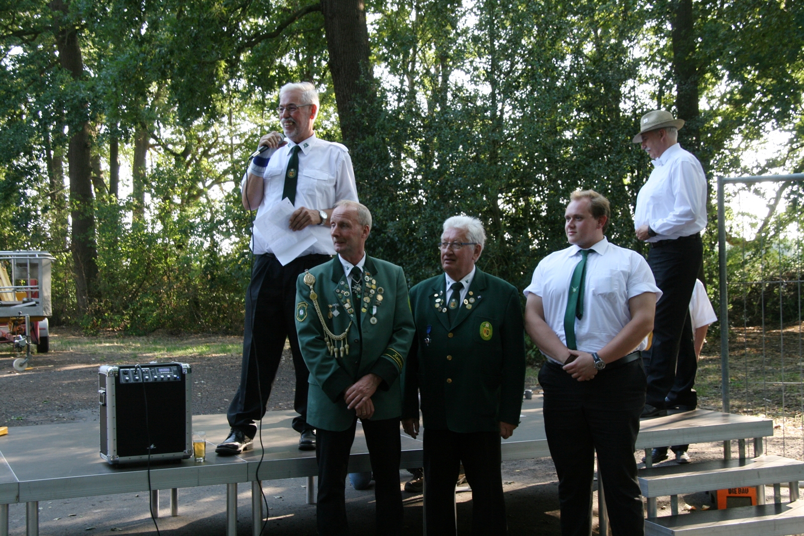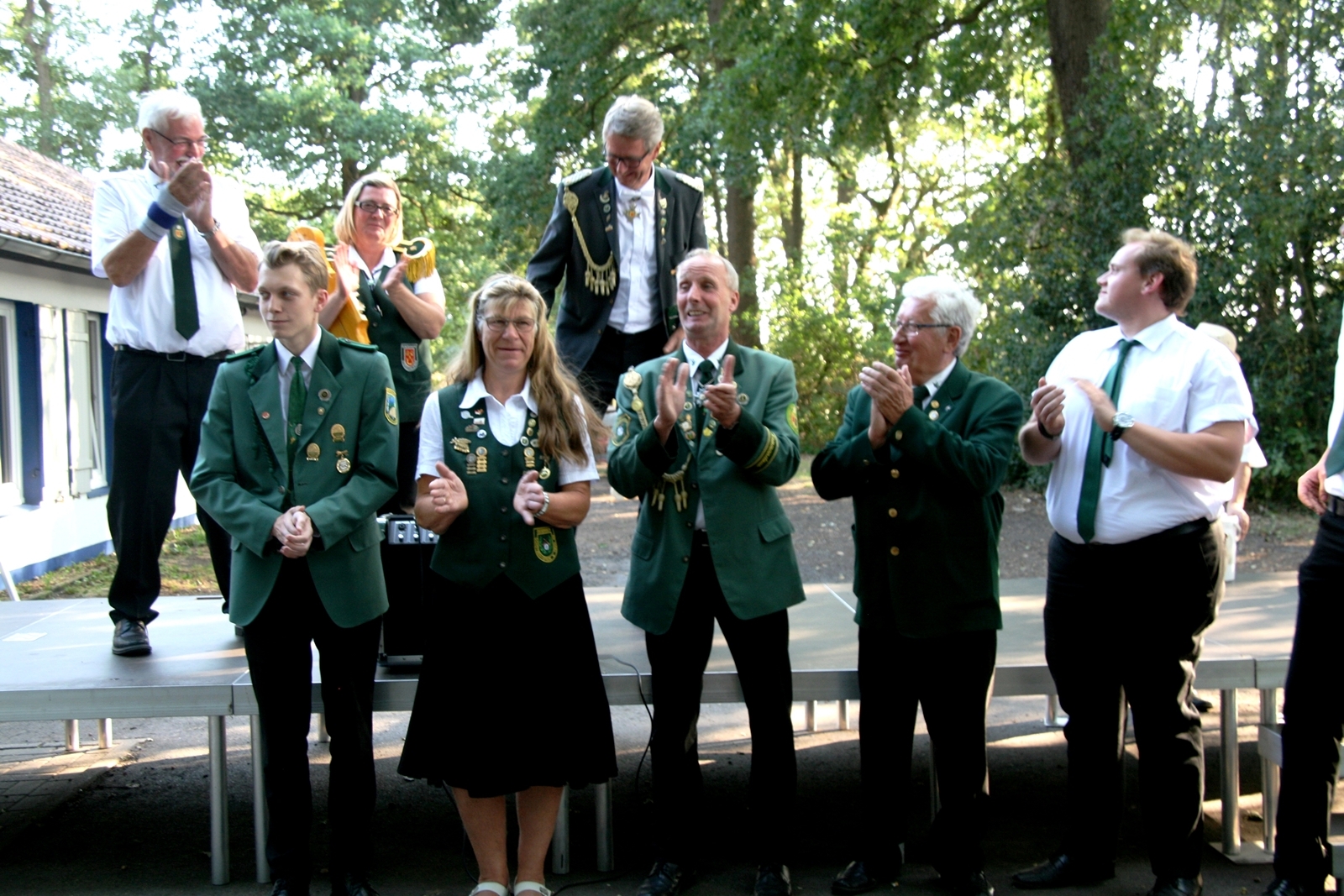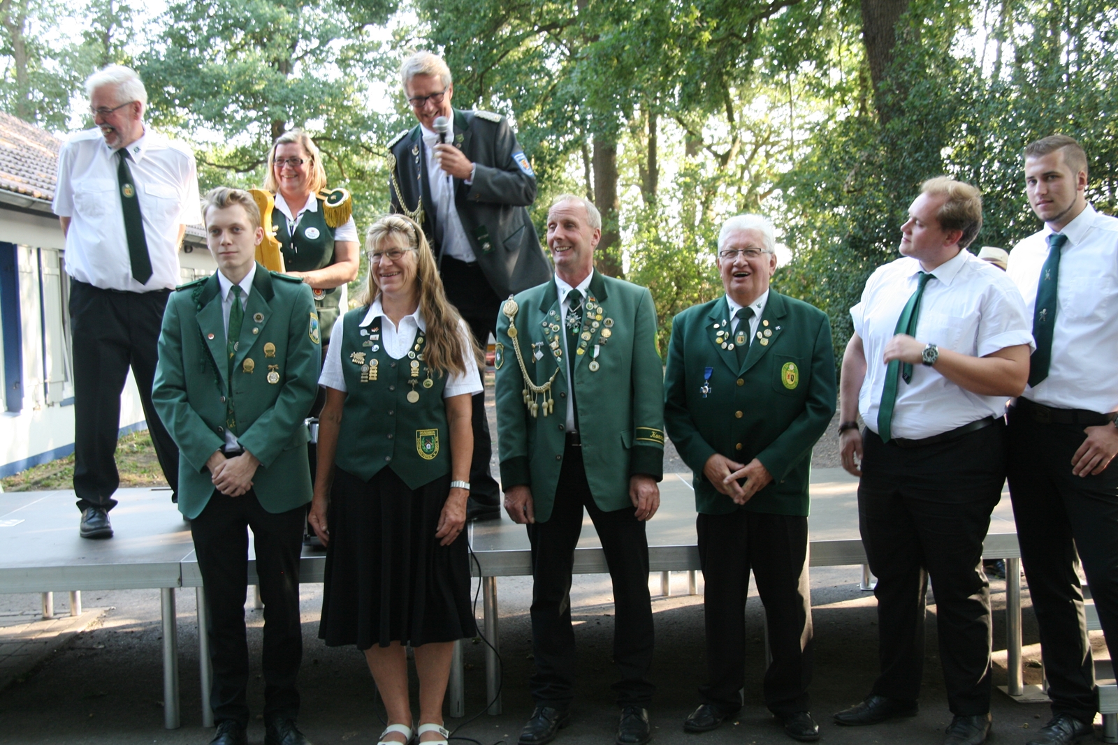 Nach der Kaffeetafel begann das "Adlerschießen". Mit viel Spaß auch bei den Zuschauern und auch "etwas" Ergeiz bei den jeweiligen Schützen, denn erst mal war das "Fussvolk" dabei - ging es ja vorweg für sie um "Zepter" (Friedel Kelkenberg), "Stoß" (Klaus Bollhorst), "Apfel" (Sven Mohrmann), "Flügel rechts (Iris Evers) und links" (Jonas Sudmann) und "Krone" (Tom Tatgenhorst).