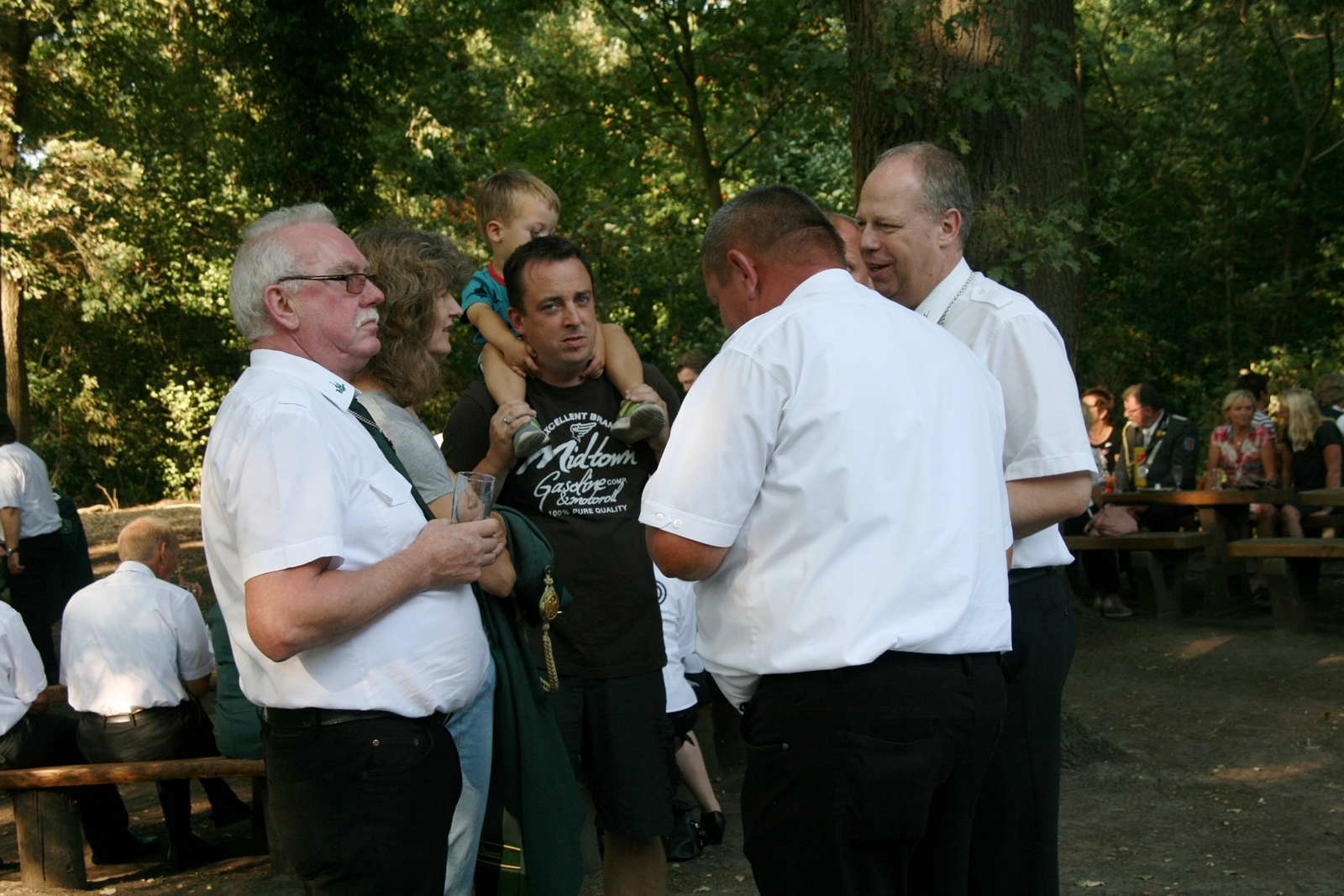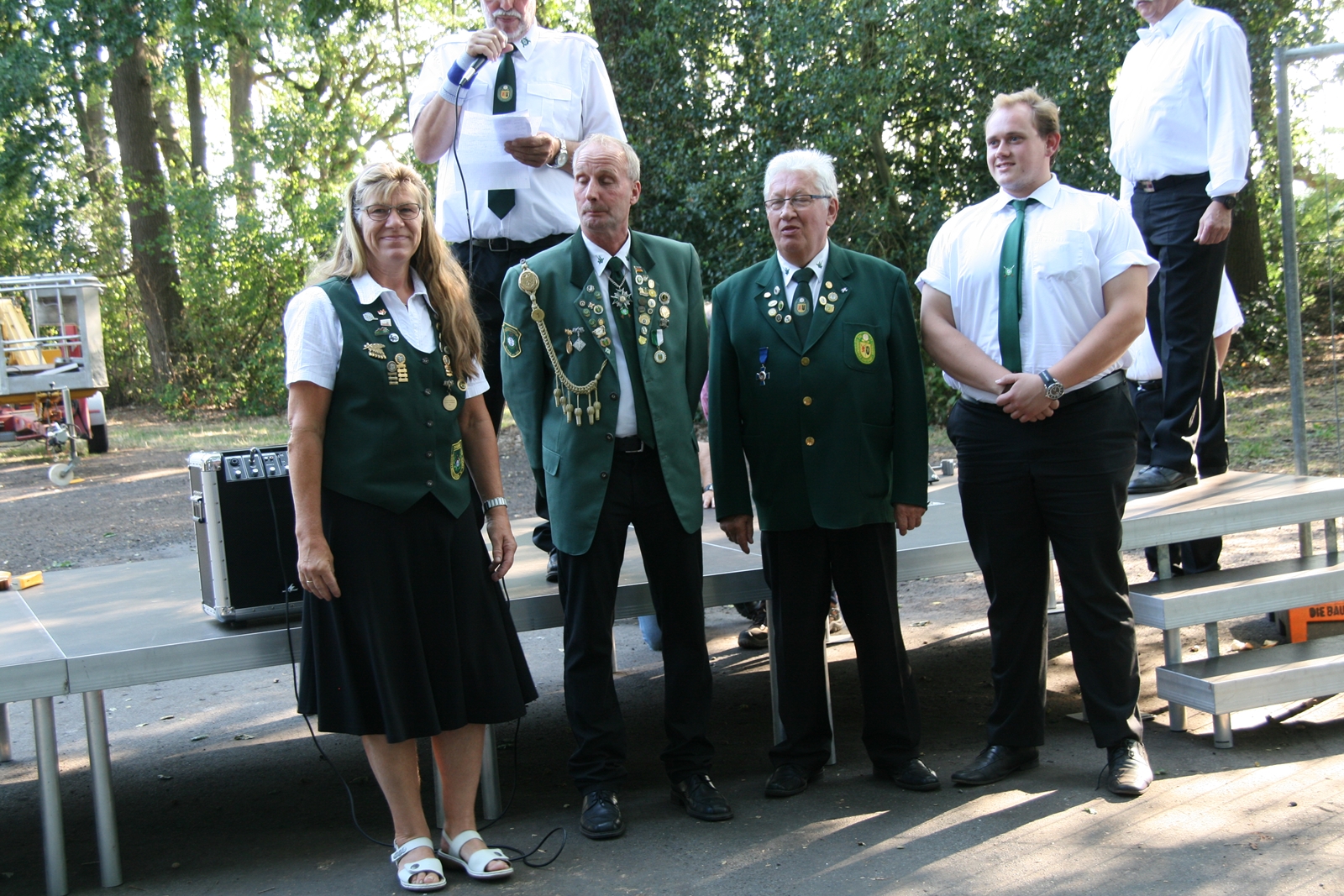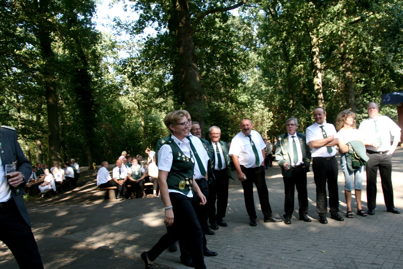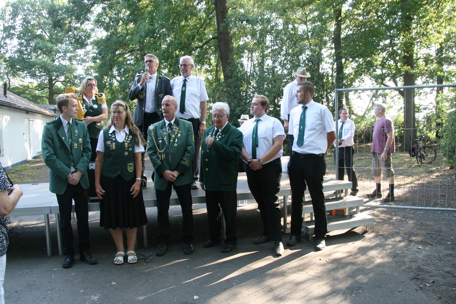 Nach der Kaffeetafel begann das "Adlerschießen". Mit viel Spaß auch bei den Zuschauern und auch "etwas" Ergeiz bei den jeweiligen Schützen, denn erst mal war das "Fussvolk" dabei - ging es ja vorweg für sie um "Zepter" (Friedel Kelkenberg), "Stoß" (Klaus Bollhorst), "Apfel" (Sven Mohrmann), "Flügel rechts (Iris Evers) und links" (Jonas Sudmann) und "Krone" (Tom Tatgenhorst).