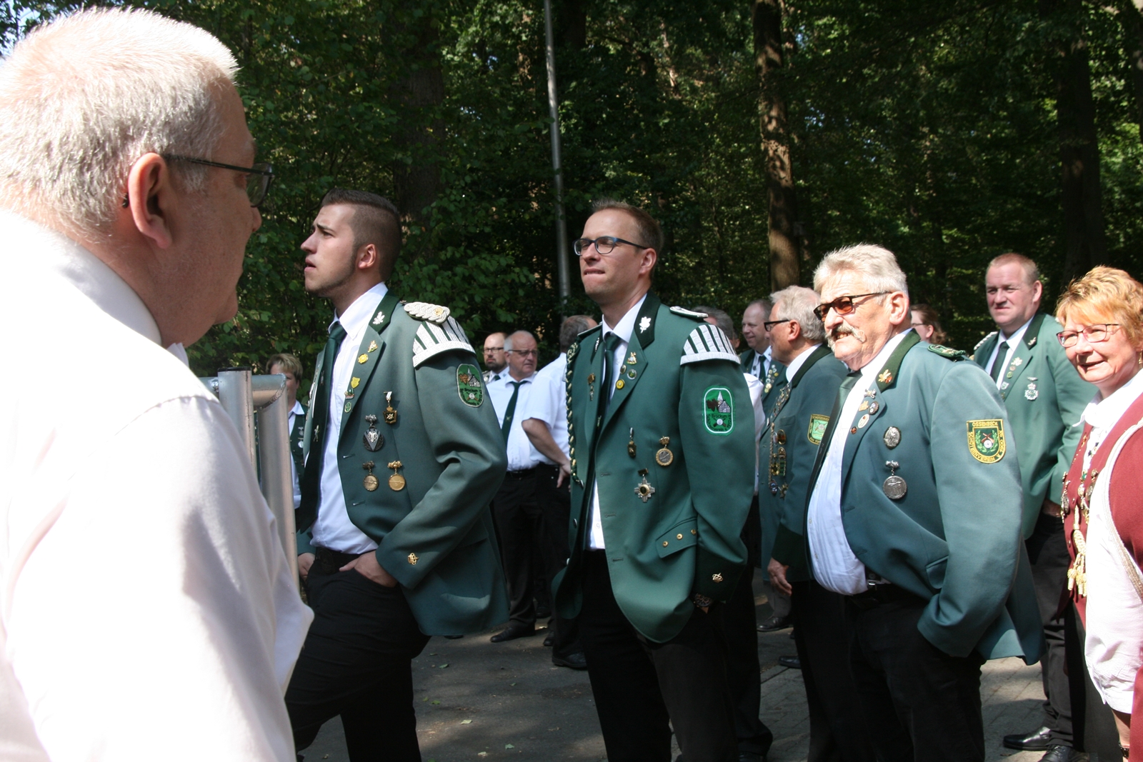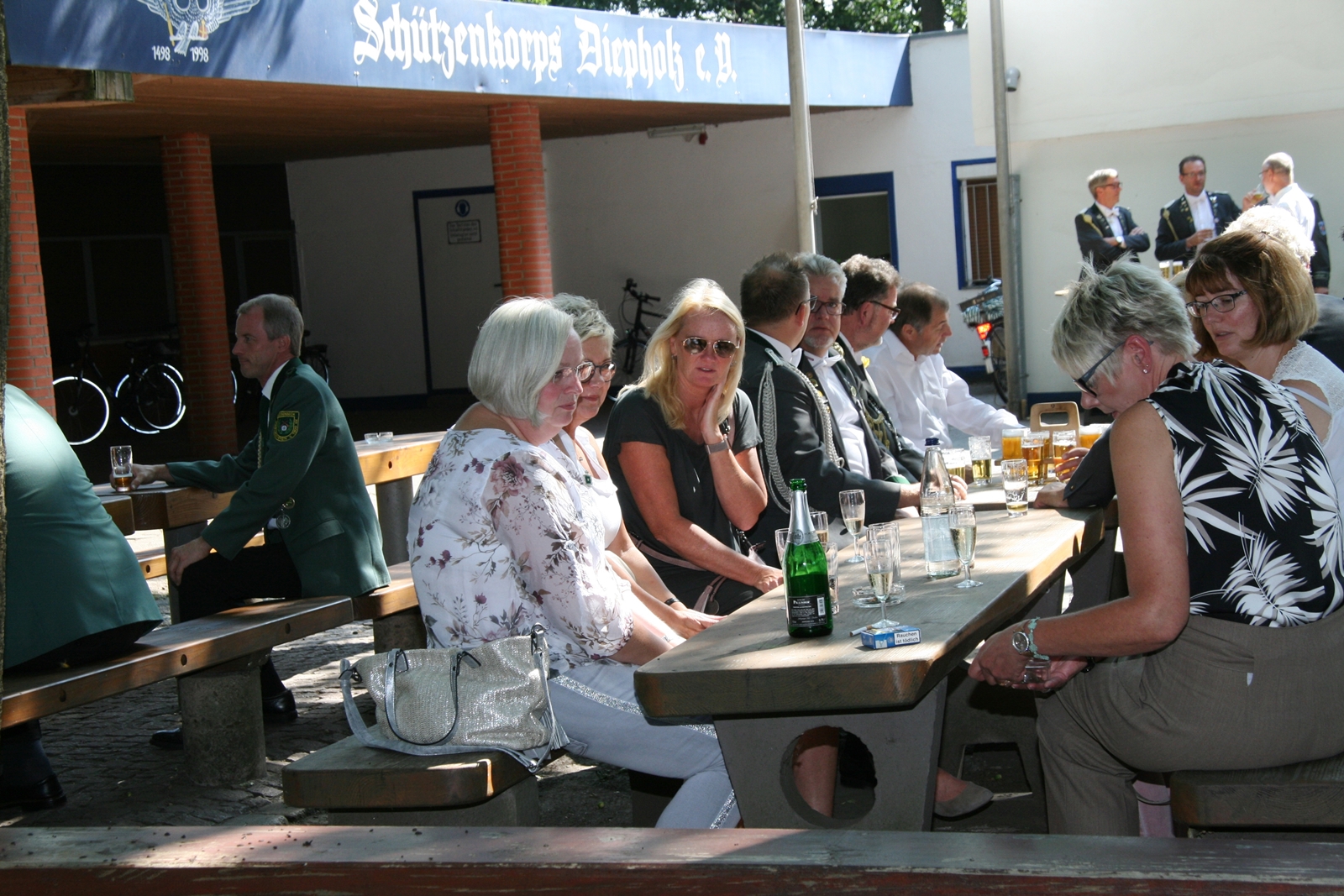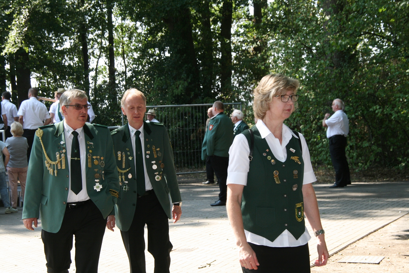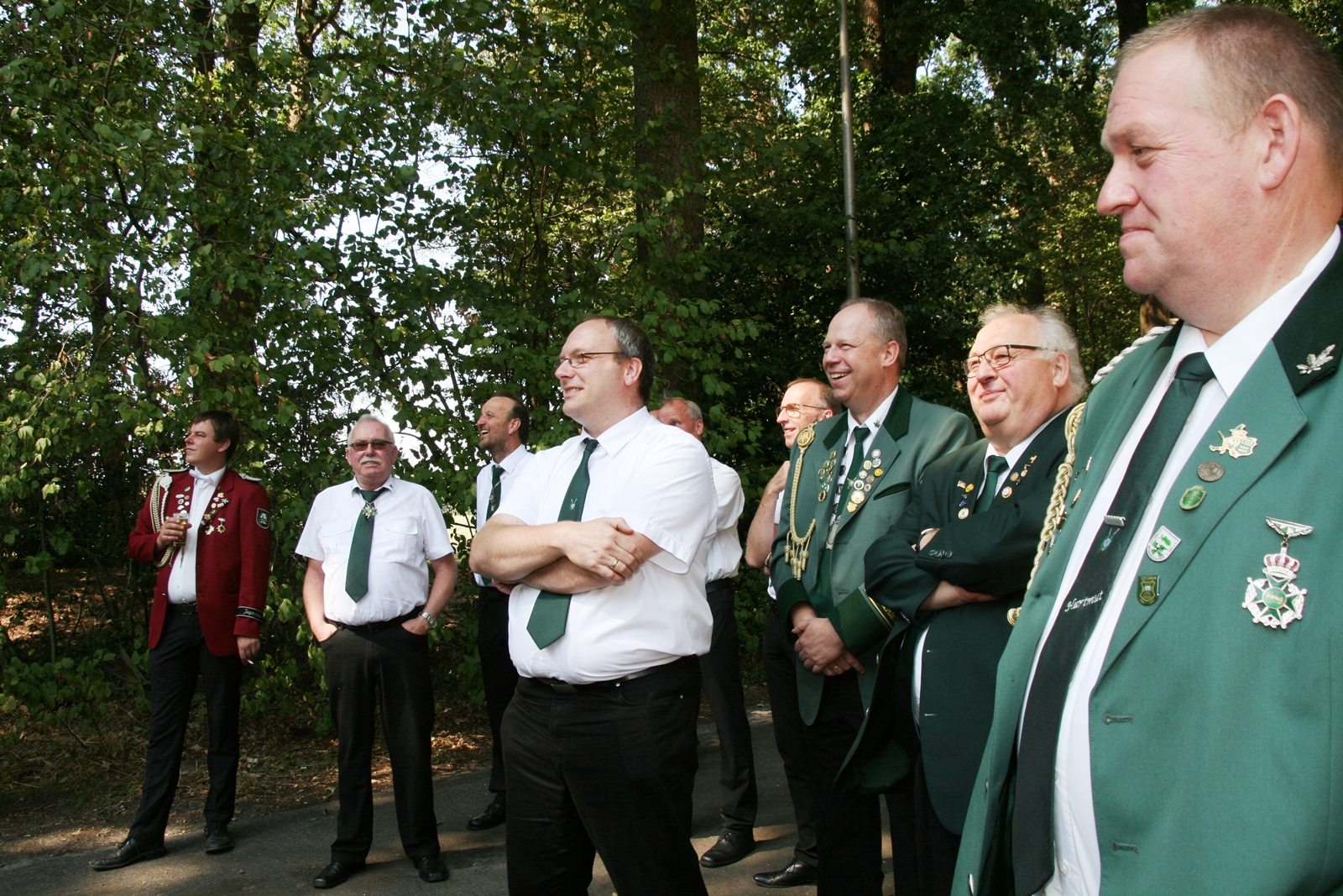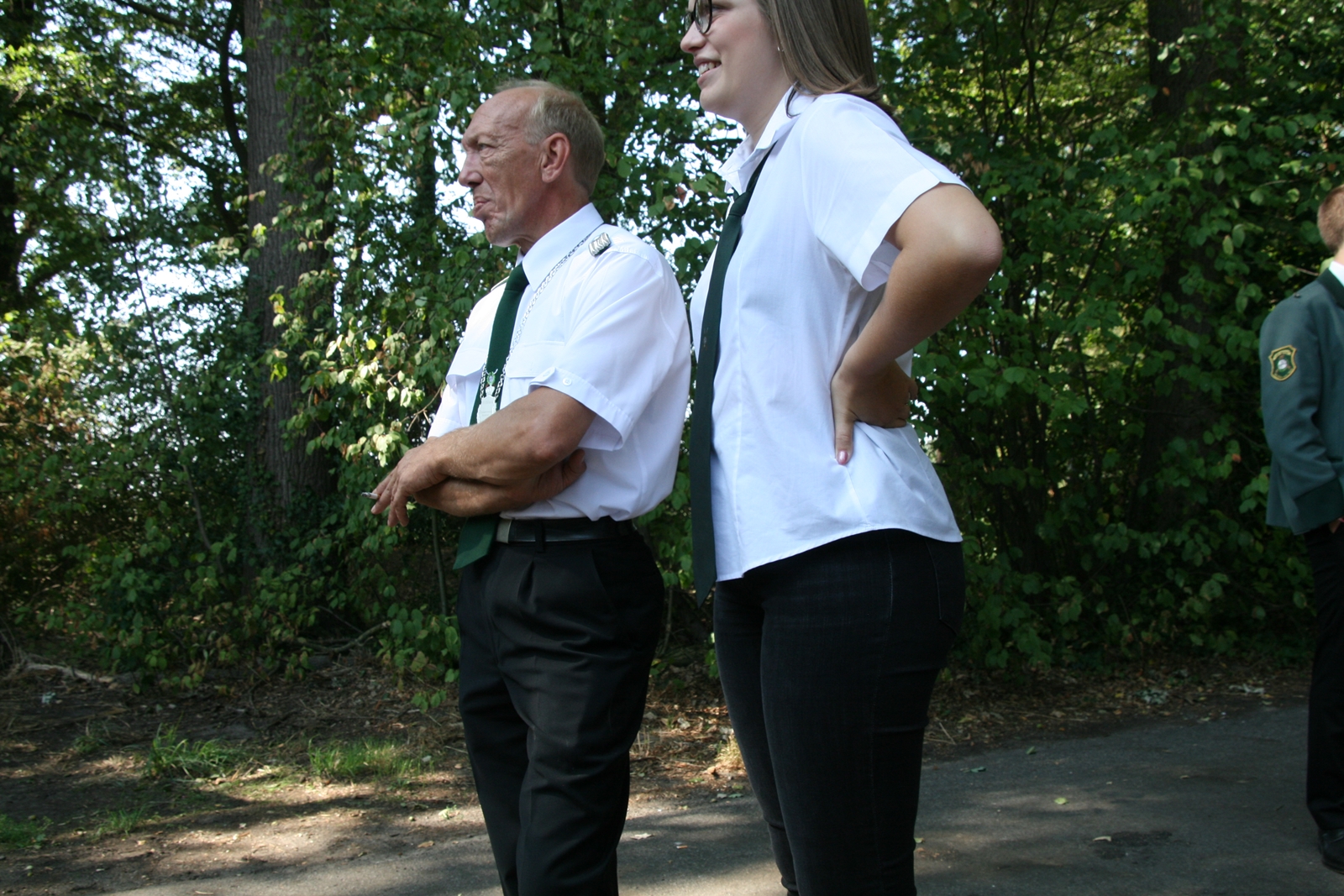 Nach der Kaffeetafel begann das "Adlerschießen". Mit viel Spaß auch bei den Zuschauern und auch "etwas" Ergeiz bei den jeweiligen Schützen, denn erst mal war das "Fussvolk" dabei - ging es ja vorweg für sie um "Zepter" (Friedel Kelkenberg), "Stoß" (Klaus Bollhorst), "Apfel" (Sven Mohrmann), "Flügel rechts (Iris Evers) und links" (Jonas Sudmann) und "Krone" (Tom Tatgenhorst).
