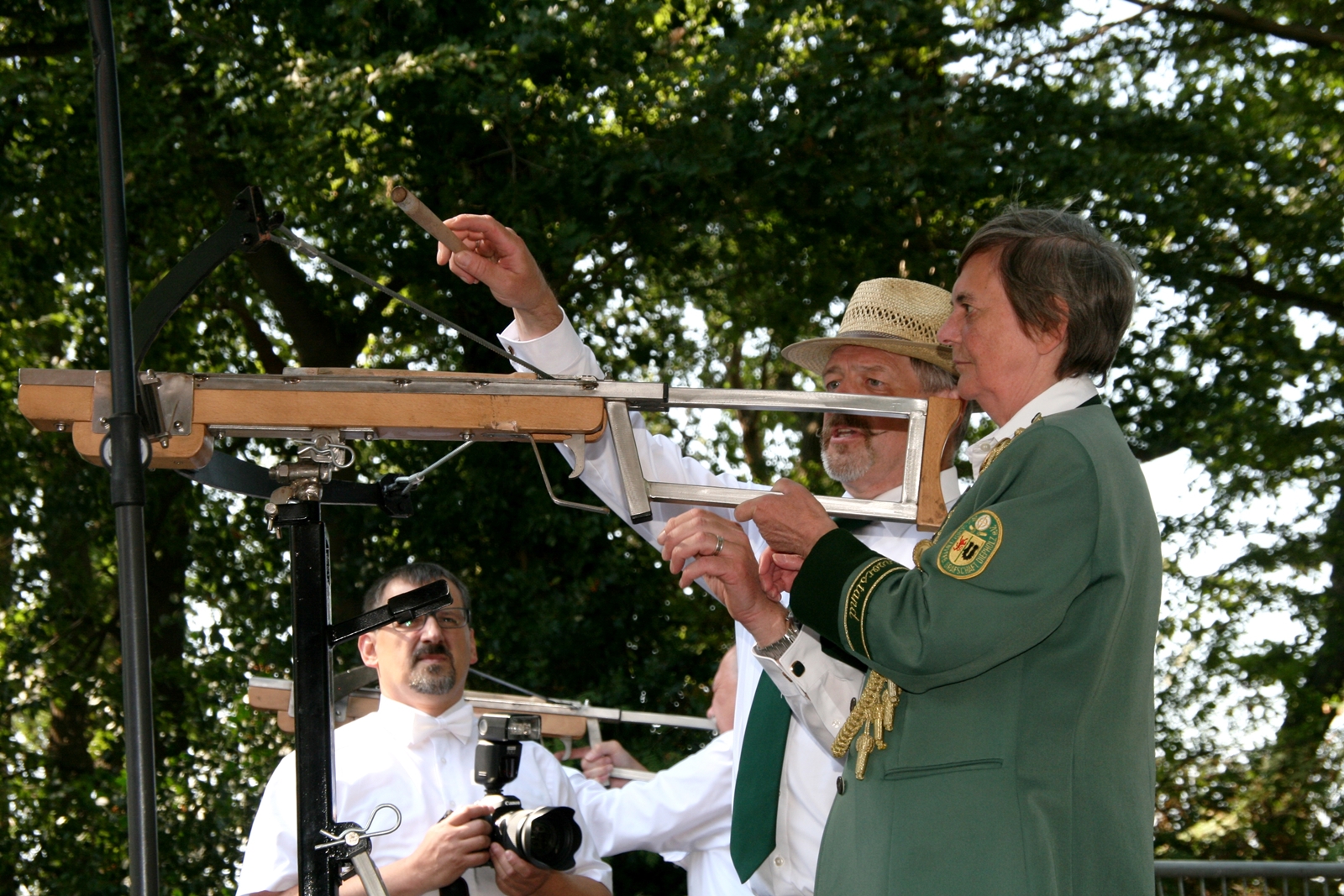 Dann duften nur die anwesenden Könige und Schützenliesel auf den "Rumpf" schießen.