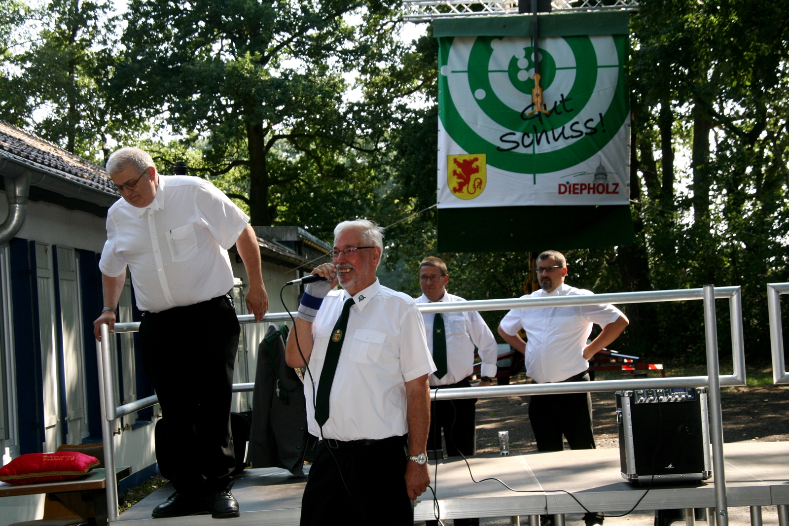 Zur Gründungsveranstaltung hatte damals Bezirksschützenpräsident Otto Heuer die Vereine Aschen, Brockum, Schützenkorps Diepholz, Diepholz von 1953, Hemsloh-Düversbruch, Hoopen-Felstehausen, Ossenbeck und Maifeier Sankt Hülfe-Heede begrüßen können.
