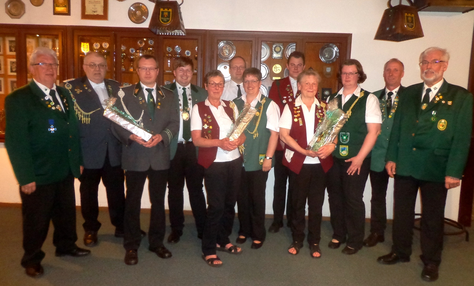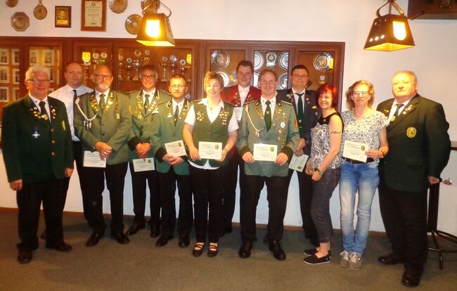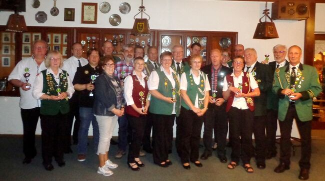 Für den Bezirks-Schützenverband holte Präsident Karl-Friedrich Scharrelmann zusammen mit seinem Vize Friedrich Kelkenberg einige Ehrungen vom Bezirksdelegiertentag nach. Anschließend händigten die Sportleiter Andreas Pohl und Klaus Bollhorst sowie Damensportleiterin Karin Unruh an die Sieger der Kreismeisterschaften Pokale aus. Diese wurden umso größer, je mehr Disziplinen und Plätze von 1 bis 3 belegt wurden, was Uwe Luzniak bei sieben Starts gelang. Bevor KV I-Präsident Manfred Rüffer mit einem Dank an seine Vorstandskollegen und den Schützenverein Ossenbeck die Delegiertenversammlung beendete, wurde noch bekanntgegeben, dass vom 15. bis 17. Juni 2018 das Jugendzeltlager mit Jugendtag beim Schützenkorps Diepholz im Lüdersbusch vorgesehen ist und der nächstjährige KV I-Delegiertentag beim Schützenverein Rehden stattfindet.